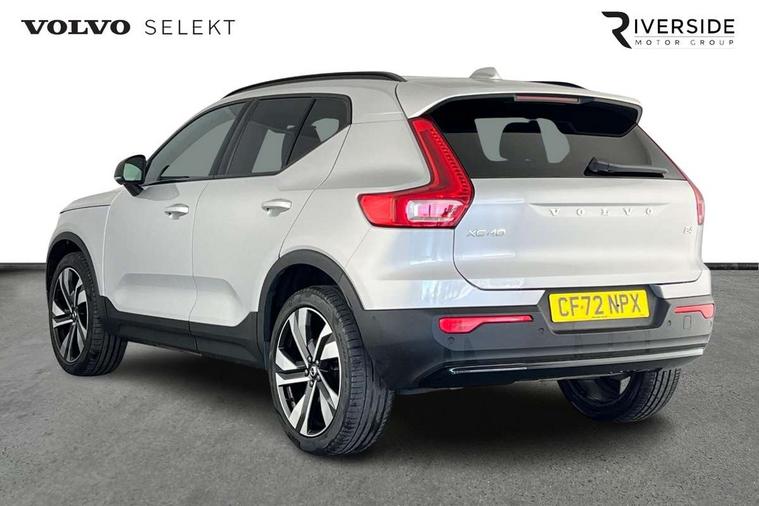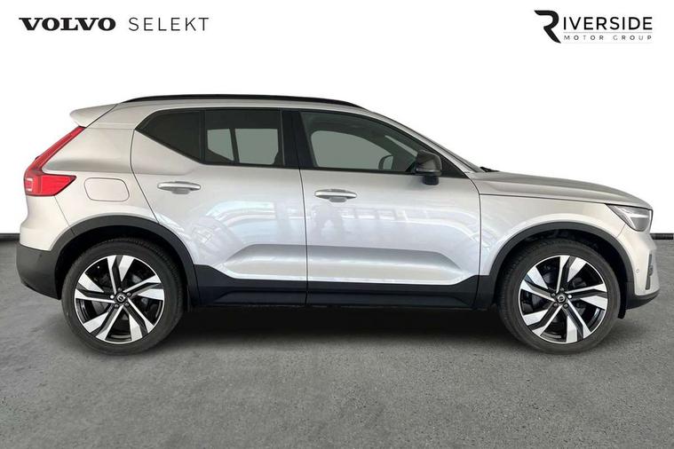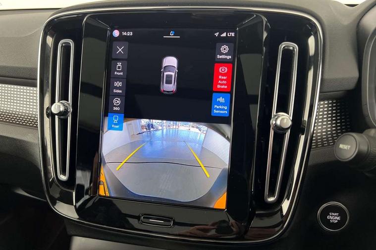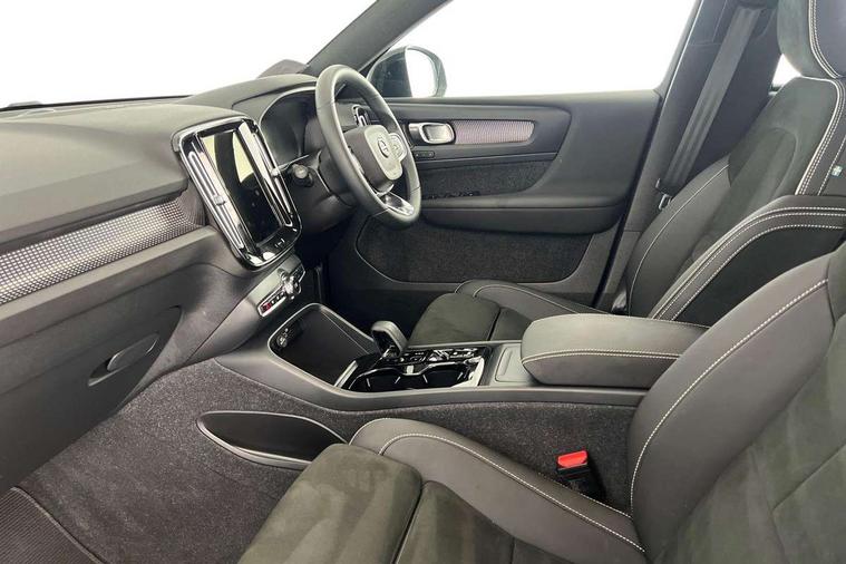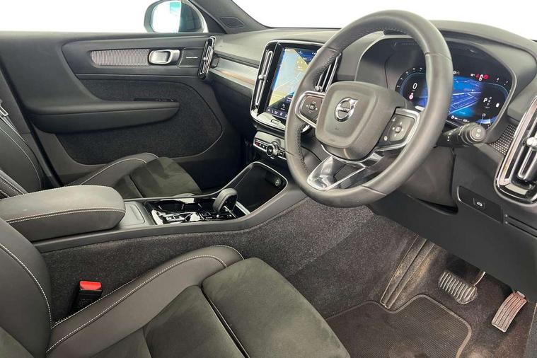12.3" Progressive Driver Display, 360 degree surround view parking camera with side proximity sensors, 9" centre console portrait touch screen, Adjustable steering wheel force, Bluetooth hands free telephone kit, E-call, Front park assist, Google automatic services - Nav with google maps, apple carplay/android auto, voice recognition with google assistant, Hands free power tailgate, Lane keep assist with driver alert control, Oncoming Lane Mitigation, Rear park assist, Speed limiter, Speed sensitive steering, Wireless/Inductive Mobile Phone Charging, Dynamic chassis, DAB Digital radio, Premium Sound by Harman Kardon, Dolby Pro Logic II Surround Sound, Dirac Unison, 12 speakers/600W and subwoofer, Steering wheel mounted remote controls, Active bending pixel LED headlights with adaptive shadow technology, Active high beam incorporating daytime running lights, Adaptive brake lights with high level LED brake lights, Auto dimming interior mirror, Automatic headlamp levelling, Dark tinted windows for rear door side windows and cargo compartment, Front aluminium tread plates, Front and rear electric windows, Headlight cleaning system, High gloss black front and rear skid plate, High gloss black mesh front grille with high gloss black surround, High gloss black window trim, Home safe and approach lighting, Integrated roof rails in high gloss black, LED front fog lights, Power glass tilt and slide panoramic sunroof with sun curtain, Puddle lights, Rain sensor with automatic windscreen wiper activation, Rear side wing doors, Rear wiper, Roof antenna, Roof spoiler, Visible VIN plate, 12V socket in front tunnel console and luggage compartment, 2-Zone electronic climate control with CleanZone air quality system and pollen filter, 3 seat bench in 2nd row, 3 Spoke tailored steering wheel with chrome trim, 60/40 versatile split folding rear seat, A-pillar parking ticket holder, Ambient front door and instrumental panel lighting, Centre console cupholders and storage, Flexible load floor and grocery bag holder, Floor mats, Front door pocket and front cupholder illumination, Front footwell illumination, Front headrests, Front reading light and theatre lighting, Front seat cushion extensions, Front tunnel pocket, Glovebox bag hook, Heated front seats, Height adjustable passenger seat, Height/reach adjustable steering column, High gloss centre tunnel deco, Illuminated glovebox, Illuminated luggage compartment, Illuminated tailgate, Illuminated vanity mirrors, Integrated waste bin, Isofix attachments on outer rear seats, Load protection net, Multi directional lumbar support, Power driver seat with memory + exterior mirrors memory, Power folding rear headrests, Power passenger seat, Rear armrest / integral cup holders / storage tray, Rear reading and courtesy lights, Single front passenger seat, Underfloor cargo storage, Climate pack without heated front seats - XC40, Driver assist pack - XC40, 3x3 point rear seatbelts, City safety with steering support with Pedestrian + cyclist + front collision warning with full auto brake and rear auto brake, Drivers knee airbag, Dual stage driver/passenger airbags, Electronic parking brake with auto hold, First aid kit, Front and outer rear seatbelt reminder and pretensioners, Front seats SIPS airbags, Hill descent control, Hill start assist, Inflatable curtain, Passenger airbag cut-off device, Power child locks on rear doors, Road sign information display, Run off Road Mitigation, Run off Road Protection, SIPS (Side Impact Protection System), Slippery road and hazard light alert, Stability and Traction Control with Spin control, Engine Drag Control and Corner Traction Control, Tyre pressure monitoring system, Vehicle deceleration control with Anti-lock Brake System, Electronic Brake Distribution and Emergency Brake Assist, Warning triangle, WHIPS whiplash protection system - front, Anti-theft alarm including immobiliser/volume sensor + level sensor, Key integrated remote control central locking + fuel flap with deadlocking system and auto open/close power windows, Keyless drive includes keyless entry and keyless start, Locking wheel nuts,