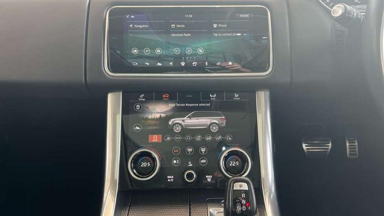 All Terrain Info Centre, Android Auto, Apple car play, Bluetooth connectivity, Electric power assisted steering (EPAS), Incontrol apps in vehicle touchscreen, Interactive Driver display instrument cluster, Mist sensor, Navigation pro system with 10" touch screen, app interface and media storage, Pro services and wifi hotspot, Push button start, Remote premium - Upgraded Incontrol remote app including remote climate control (engine dependent), remote lock + Unlock and remote beep + flash, TFT Virtual Instrument Panel, Touch pro duo system, Trip computer, 7 kW onboard charger, Adaptive dynamics, Electronic active differential with brake torque vectoring, Electronic air suspension, Gradient release control (GRC), Public charging cable, Terrain Response 2 with dynamic program, Twin speed transfer box, Bluetooth audio streaming, DAB Radio (Digital Audio Broadcasting), Incontrol protect - SOS emergency call with automatic collision detection, optimised assistance call and Incontrol remote app essential, USB/aux input socket, Acoustic front and toughened rear side glass, Acoustic laminated front windows, Adaptive brake lights, Auto dimming interior rear view mirror, Automatic headlights, Body coloured side sills and bumpers corners, Centre high mounted stop light, Electric windows with one touch open/close and anti trap, Electrical towing preparation, Engine cover, Follow me home lighting, Front and rear recovery eyes, Front fog lights, Headlight power wash, Heated rear window, Heated windscreen includes heated washer jets, Illuminated metal treadplates with brand name script, LED rear lamps, Rain sensing windscreen wipers, Rear fog lights, Rear side wing doors, Rear wash/wipe, Remote window closing, Side repeater indicators in mirror, Standard bonnet, Trailer stability assist, Twin bright tailpipes, 2 way active front head restraints, 2 way rear head restraints, 3 seat bench in 2nd row, Automatic air recirculation system, Bright metal foot pedals, Centre console with armrest, Climate control memory, Customer configurable single point entry, Driver's footrest, Extended leather upgrade includes door top rolls and leather instrument panel mid section, Front and rear cupholders, Front door storage space, Front map lights, Front seat back map pockets, Front stowage pocket, Front/rear passenger grab handles, Isofix child seat preparation, Leather steering wheel with Atlas inserts, Loadspace light, Loadspace mounting provisions, Lockable glovebox, Multifunction steering wheel, Pollen filter, Power socket, Reach/rake electric adjustable steering column + entry/exit tilt away, Rear centre armrest, Rear ISOFIX, Roller blind loadspace cover, Satin chrome gearshift paddles, Single front passenger seat, Sports pedals, Three 12V accessory power outlets, Smartphone pack - Range Rover Sport, 3 point seatbelts on all seats, Anti-lock braking system (ABS), Brake pre-fill technology, Cornering brake control (CBC), Curtain airbags, Customer configurable autolock, DSC - Dynamic Stability Control, Dual stage driver/passenger airbags, EBD - Electronic brakeforce distribution, Electric parking brake, Electronic traction control, Emergency braking includes city, urban AEB and pedestrian, Front seatbelt pretensioners, Gradient acceleration control, Height adjustable front seatbelts, Hill descent control, Hill launch assist, Low traction launch, Passenger seat occupant detector with front airbags, Power operated child locks, Roll stability control, Seatbelt warning, TPMS (Tyre pressure monitoring system), Immobiliser, Intrusion sensor, Keyless entry, Locking wheel nuts, Perimetric and volumetric anti theft alarm, Remote locking, Tyre repair system,