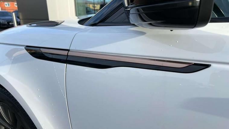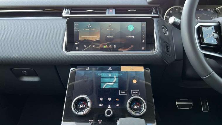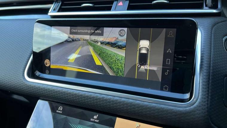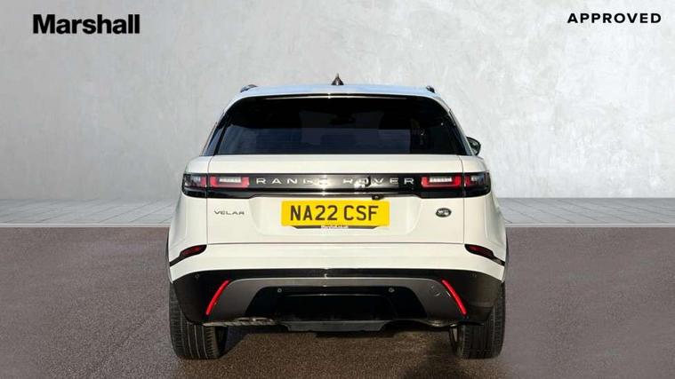 10" deployable touchscreen, Android Auto, Apple car play, Blind spot assist, Bluetooth connectivity, Brake pad wear indicator warning light, Driver condition monitor, eCall emergency call system, InControl remote, Land Rover InControl apps, Lane keep assist, Pivi pro with connected navigation, Push button start, Rear traffic monitor, Service indicator, Speed proportional electronic power assisted steering (EPAS), Traffic sign recognition with adaptive speed limiter, Trip computer, Voice control system, 8 speed automatic transmission, All terrain progress control, Open differential with torque vectoring by braking, Single speed transfer box, Digital Audio Broadcast radio-DAB, Steering wheel mounted controls, Acoustic laminated windscreen, Adaptive front lighting system, Auto dimming interior rear view mirror, Automatic headlamp levelling, Automatic headlights, Body coloured bumpers, Boot protection plate, Electric heated/power fold door mirrors with approach lights and auto dimming driver side, Electric windows with one touch open/close and anti trap, Flush deployable exterior door handles, Follow me home headlights, Heated rear window with timer, Heated washer jets, Heated windscreen, LED 3rd brake light, Metal load space scuff plates, No badge - Removes engine badge, Rain sensor windscreen wipers, Rear animated directional indicators, Rear fog lights, Rear side wing doors, Rear wash/wipe, Tailgate/boot lid spoiler, Trailer stability assist, Velar and R-dynamic badge, 3 seat bench in 2nd row, Ambient lighting, Bright metal pedals, Driver/passenger sunvisors with illuminated vanity mirrors, Isofix system on outer rear seats, Loadspace cover, Overhead lighting console, Overhead stowage for sunglasses, Passive front headrests, Rear air vents, Rear centre headrest, Satin chrome gearshift paddles, Single front passenger seat, Standard interior, Twin front cupholders, Twin sliding front centre armrest, Online pack with data plan - Velar, 355mm front brakes and 325mm rear brakes, 3x3 point rear seatbelts, Anti-lock braking system (ABS), Cornering brake control, Curtain airbags, Customer configurable autolock, Door side intrusion beams, Driver airbag, DSC - Dynamic Stability Control, Electronic brake force distribution, Electronic parking brake, Electronic traction control, Emergency brake assist, Emergency braking, Front and rear seatbelt reminder, Hill descent control, Hill launch assist, Low traction launch, Passenger airbag, Power operated child locks, Rear airbags, Roll stability control, Side airbags, Tyre pressure monitoring system, Unpainted brake calipers, Global lock and unlock switch on driver door, Immobiliser, Intrusion sensor, Keyless entry, Lock only switch on front passenger door, Locking wheel nuts, Perimetric alarm, Remote central locking,