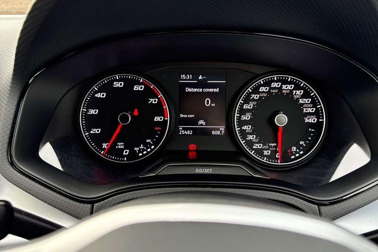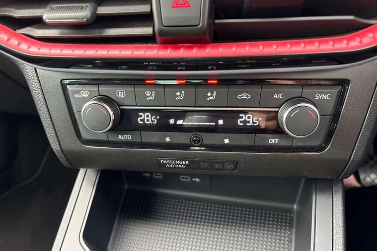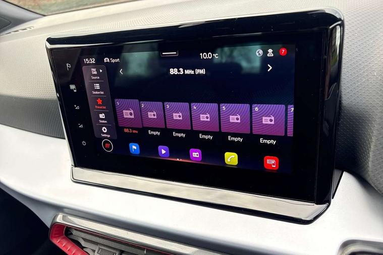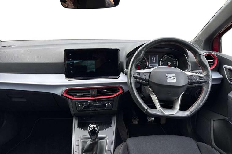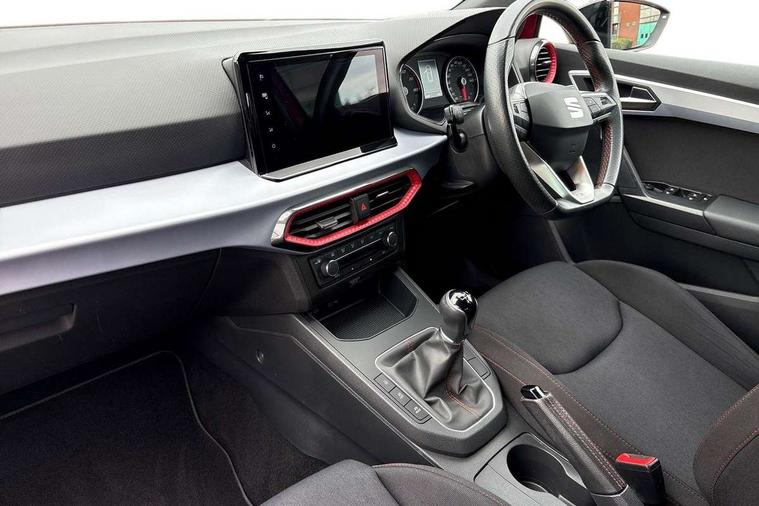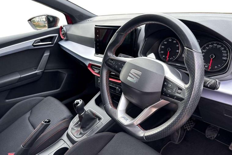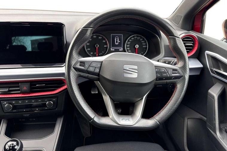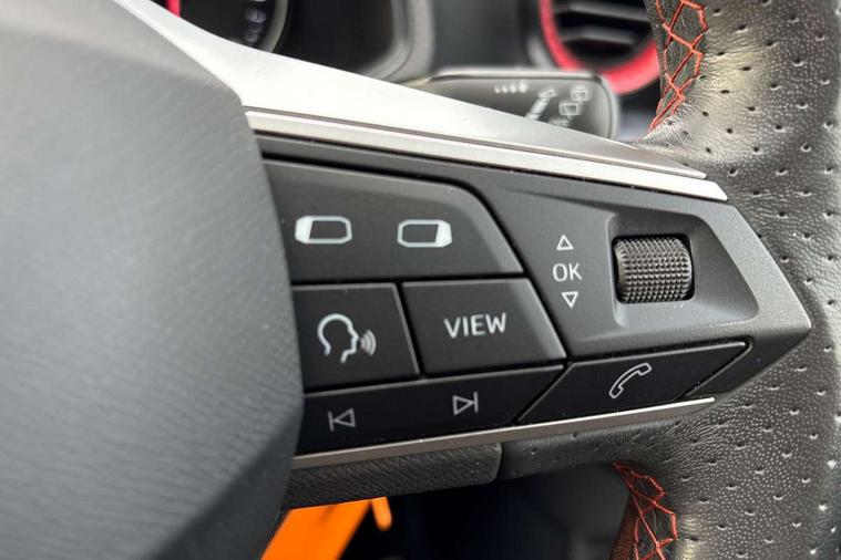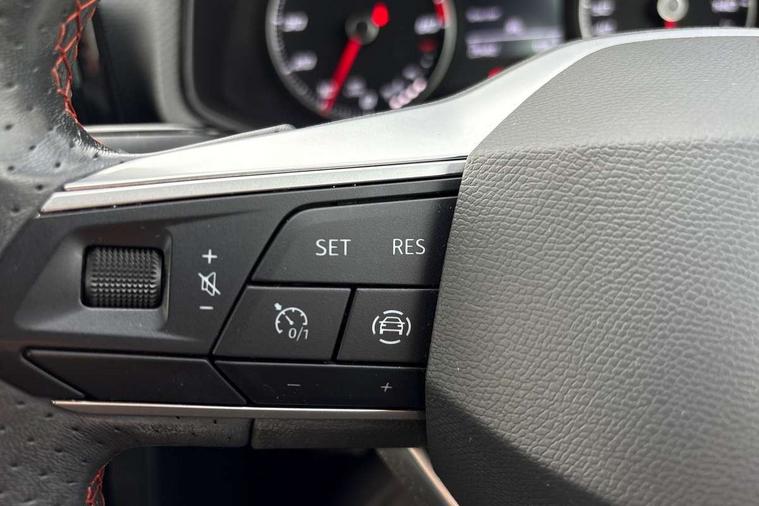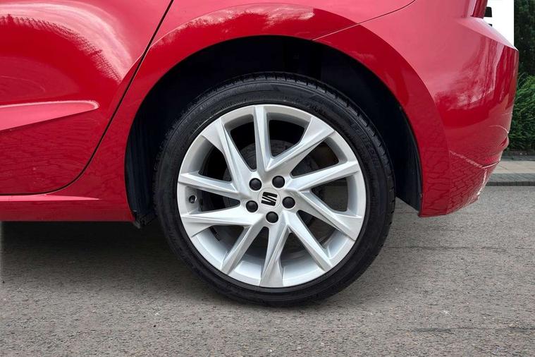 'Lights On' Reminder warning buzzer, 8" Digital cockpit, 9.2" touchscreen navigation system with type C USB socket, Voice control and DAB/AM/FM radio, Auto start and stop system, Bluetooth audio streaming with handsfree system, Digital clock, E-call, Full link smartphone integration with mirror link, wireless apple carplay, Google android auto + USB Type C cable for apple and android devices, Lane assist, Low fuel warning light, Outside temperature gauge, Power Steering, Seat connect with safety, service, remote and online, SEAT drive profiles and ECO function, SEAT logo boot release, Speed limiter, Trip computer, Sports suspension, Auxiliary input socket, Radio/MP3 player, SD card slot, Steering wheel mounted controls, Anti theft roof antenna, Auto dimming rear view mirror, Automatic rain sensing wipers, Black door mirrors, Body colour bumpers, Body colour door handles, Brilliant black window surrounds, Dark tinted rear windows, Electric adjustable/heated/folding door mirrors, Electric front windows, Electric headlight adjustment, Electric rear windows, Front/rear fog lights, FULL LED automatic headlights with dynamic headlight range control, coming and leaving home, LED daytime running lights, LED tail lights, Rear side wing doors, Rear spoiler with FR twin exhausts, Rear wiper, Third brake light, 3 seat bench in 2nd row, 60/40 split folding rear seat, Ambient interior lighting, Chrome detailing and black headlining, Cloth upholstery, Dual zone climate control with combination filter, Front courtesy lights, Front cupholders x 2, Front reading lights, Gear shift indicator, Glovebox, Height adjustable front and rear headrests (five), Height adjustable front seats, Height/reach adjust steering wheel, Illuminated air vent surrounds, Illuminated boot, Instrument lighting with brightness control, Isofix, Leather multifunction flat bottomed sports steering wheel, Passenger sunvisor, Single front passenger seat, Sports seats, Sunvisors with mirror and driver side card holder, 3 point seatbelts on all 3 rear seats, ABS, Active front headrests, Child locks on rear doors, Electronic stability control, Energy recovery system, Front assist forward collision warning and autonomous emergency braking, Front driver and passenger side airbags with curtain airbag and front passenger airbag deactivation, Hill hold control, Multi-Collision braking, Seat belt reminder for front and rear seats, Tiredness recognition system, Tyre pressure monitoring system, Electronic engine immobiliser, Locking wheel bolts, Perimeter alarm and interior monitoring with backup horn and tow away protection, Remote central locking + deadlocks, 17" alloy wheels in Brilliant silver,
