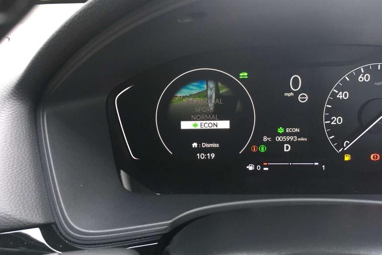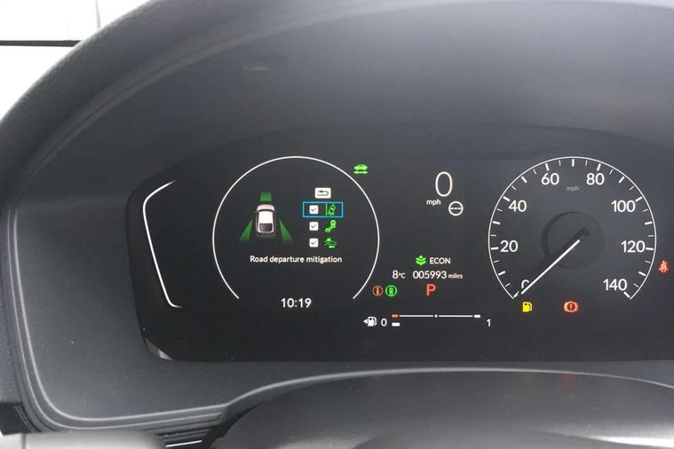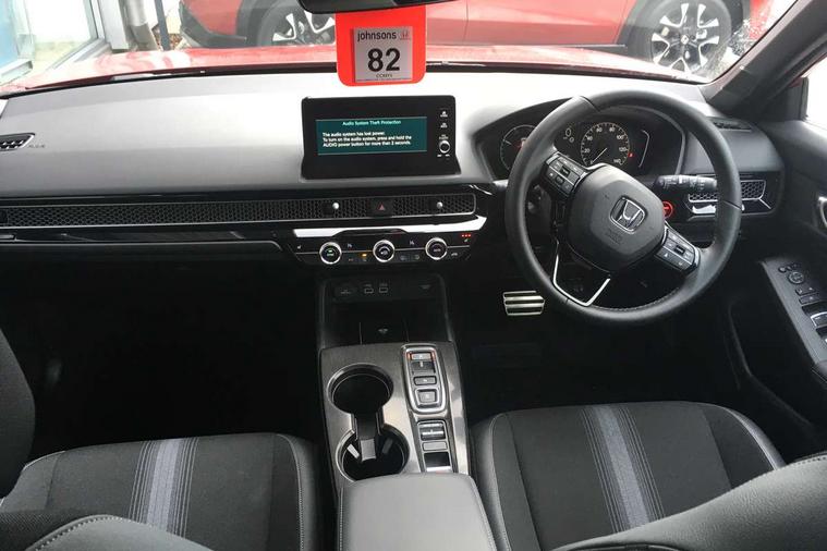 7" Multi information display screen, Adaptive cruise control, Adaptive motion for electric power steering, Adjustable speed limiter, Agile handling assist, BLIS (Blind Spot Information System) with Cross Traffic Monitor, Bluetooth hands free telephone connection, Driving modes, Economy mode, Electric power steering wheel with variable gear ratio steering, Emergency call service, Emergency stop signalling system, Forward collision warning, Front and rear parking sensors, Honda CONNECT with Navigation 9" touchscreen, AM/FM/DAB, Apple Carplay and Android Auto, live traffic info, Honda sensing, Idle stop, Intelligent speed limiter, Lane departure warning system, Lane keep assist, Low speed following, Power meter, Rear parking camera, Road departure mitigation, Smartphone wireless charging plate, Tailgate, Traffic jam assist, Traffic sign recognition, Wireless apple carplay, Vehicle stability assist, 'Shark fin' mobile antenna, 2x USB Front socket (1 data & 1 charge), 8 Speakers, Digital Audio Broadcast (DAB) Tuner, Front tweeters, Steering wheel mounted audio controls, Aspherical driver door mirrors, Auto dimming rear view mirror, Auto headlight adjuster, Auto headlights, Automatic coming/leaving home lighting function, Automatic rain sensing wipers, Black window frames, Body colour door handles, Electric adjustable heated door mirrors, Electric front and rear windows, Electrically folding door mirrors, Headlight extension black, High beam assist, High level LED brake light, LED daytime running lights, LED front fog lights, LED front turn type, LED Headlights, LED rear lights, Low gloss black window garnish, Material finish grille, Pop up hood, Privacy glass, Rear side wing doors, Rear wiper, Single hidden exhaust pipe, Variable front intermittent wipers, 3 seat bench in 2nd row, 60/40 split folding rear seat, Cargo accessory power socket, Cargo net hooks, Driver and front passenger seat armrests, Driver's electric lumbar adjustment, Driver's seat height adjustment, Dual climate control air conditioning system, Fabric/synthetic leather upholstery, Front accessory power socket, Front map lights, Front/rear courtesy lights, Glovebox light, Heated front seats, Hybrid emblem, Isofix points/i size, Leather steering wheel, Meter Illumination white, Passenger seat back pocket, Platinum chrome interior door handles, Rear air vents, Rear head restraints, Rear reading lights, Rear seat centre armrest, Single front passenger seat, Stainless steel sports pedals, Sunvisors with illuminated vanity mirrors, Tilt/telescopic adjustable steering wheel, Tonneau cover, Trunk light, USB Rear number 2 x charge, White ambient roof light, 3x3 point rear seatbelts, ABS+EBD+Brake assist, Airbags - driver and front passenger, Airbags - Knee (AS), Airbags - Knee (DR), Anti-whiplash front headrests, Brake hold function, Collision mitigation braking system, Collision mitigation throttle control, Deflation detection system, Driver SRS airbag (single stage inflation), Electronic parking brake with auto hold, Front and rear curtain airbags, Front and rear seat belts with emergency locking retractor (ELR), Front centre airbag, Front side airbags, Hill start assist, Low speed brake system, Manual child lock in rear doors, Passenger airbag deactivate switch, Rear airbags, Regenerative braking/deceleration paddle control, Immobiliser, Mirrors and windows key fob, Remote central locking with 2 jack knife keys, Security alarm, Selectable door unlock, Smart entry + Smart start, Superlocking, Tilt sensors, Ultrasonic security sensor, Tyre repair kit,