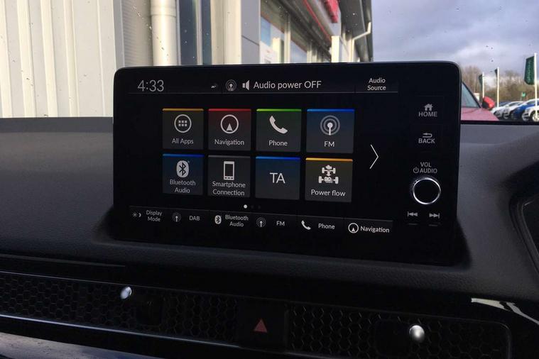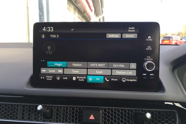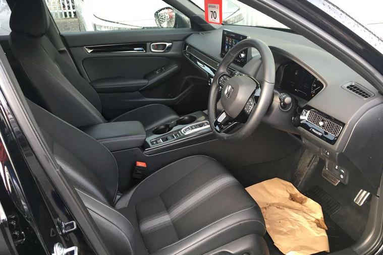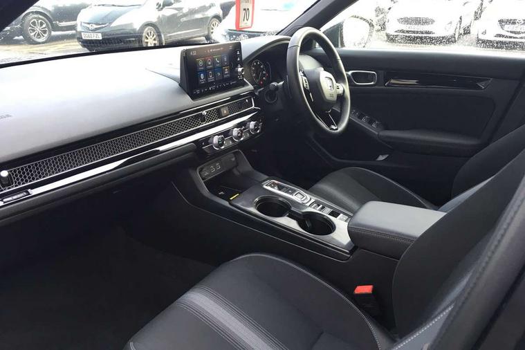 7" Multi information display screen, Adaptive cruise control, Adaptive motion for electric power steering, Adjustable speed limiter, Agile handling assist, BLIS (Blind Spot Information System) with Cross Traffic Monitor, Bluetooth hands free telephone connection, Driving modes, Economy mode, Electric power steering wheel with variable gear ratio steering, Emergency call service, Emergency stop signalling system, Forward collision warning, Front and rear parking sensors, Honda CONNECT with Navigation 9" touchscreen, AM/FM/DAB, Apple Carplay and Android Auto, live traffic info, Honda sensing, Idle stop, Intelligent speed limiter, Lane departure warning system, Lane keep assist, Low speed following, Power meter, Rear parking camera, Road departure mitigation, Smartphone wireless charging plate, Tailgate, Traffic jam assist, Traffic sign recognition, Wireless apple carplay, Vehicle stability assist, 'Shark fin' mobile antenna, 2x USB Front socket (1 data & 1 charge), 8 Speakers, Digital Audio Broadcast (DAB) Tuner, Front tweeters, Steering wheel mounted audio controls, Aspherical driver door mirrors, Auto dimming rear view mirror, Auto headlight adjuster, Auto headlights, Automatic coming/leaving home lighting function, Automatic rain sensing wipers, Black window frames, Body colour door handles, Electric adjustable heated door mirrors, Electric front and rear windows, Electrically folding door mirrors, Headlight extension black, High beam assist, High level LED brake light, LED daytime running lights, LED front fog lights, LED front turn type, LED Headlights, LED rear lights, Low gloss black window garnish, Material finish grille, Pop up hood, Privacy glass, Rear side wing doors, Rear wiper, Single hidden exhaust pipe, Variable front intermittent wipers, 3 seat bench in 2nd row, 60/40 split folding rear seat, Cargo accessory power socket, Cargo net hooks, Driver and front passenger seat armrests, Driver's electric lumbar adjustment, Driver's seat height adjustment, Dual climate control air conditioning system, Fabric/synthetic leather upholstery, Front accessory power socket, Front map lights, Front/rear courtesy lights, Glovebox light, Heated front seats, Hybrid emblem, Isofix points/i size, Leather steering wheel, Meter Illumination white, Passenger seat back pocket, Platinum chrome interior door handles, Rear air vents, Rear head restraints, Rear reading lights, Rear seat centre armrest, Single front passenger seat, Stainless steel sports pedals, Sunvisors with illuminated vanity mirrors, Tilt/telescopic adjustable steering wheel, Tonneau cover, Trunk light, USB Rear number 2 x charge, White ambient roof light, 3x3 point rear seatbelts, ABS+EBD+Brake assist, Airbags - driver and front passenger, Airbags - Knee (AS), Airbags - Knee (DR), Anti-whiplash front headrests, Brake hold function, Collision mitigation braking system, Collision mitigation throttle control, Deflation detection system, Driver SRS airbag (single stage inflation), Electronic parking brake with auto hold, Front and rear curtain airbags, Front and rear seat belts with emergency locking retractor (ELR), Front centre airbag, Front side airbags, Hill start assist, Low speed brake system, Manual child lock in rear doors, Passenger airbag deactivate switch, Rear airbags, Regenerative braking/deceleration paddle control, Immobiliser, Mirrors and windows key fob, Remote central locking with 2 jack knife keys, Security alarm, Selectable door unlock, Smart entry + Smart start, Superlocking, Tilt sensors, Ultrasonic security sensor, Tyre repair kit,