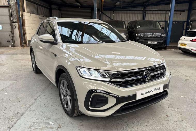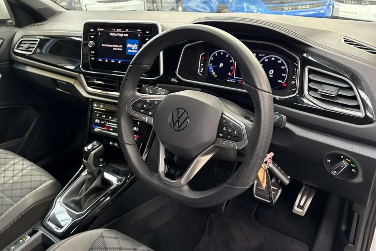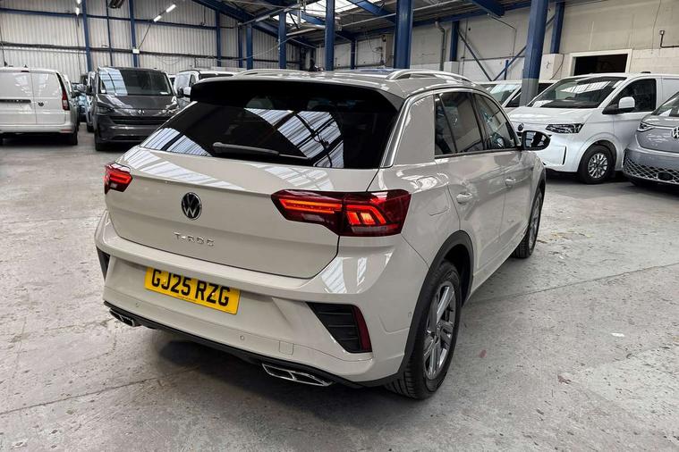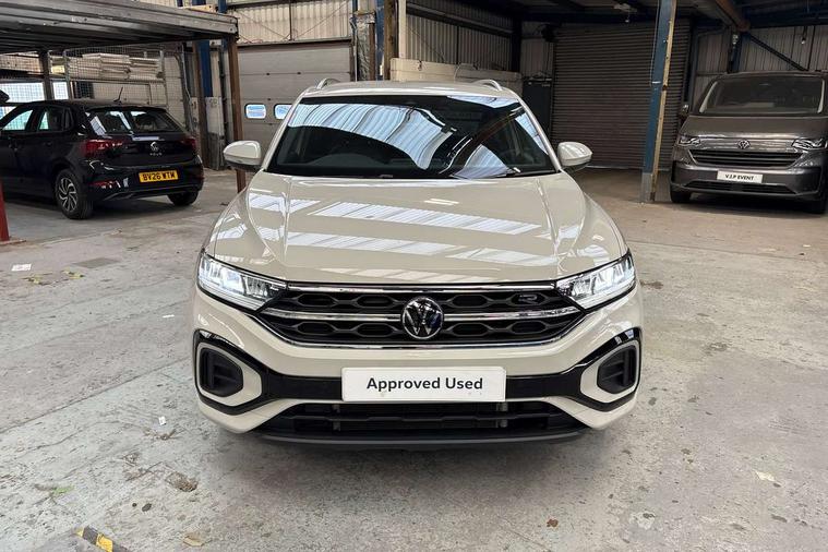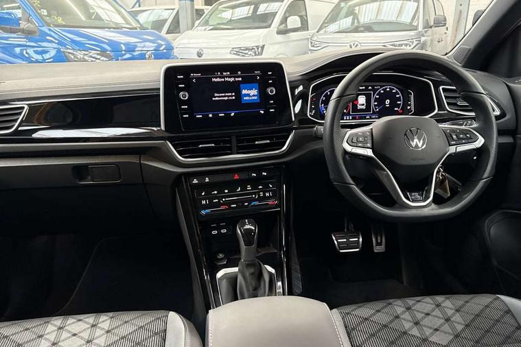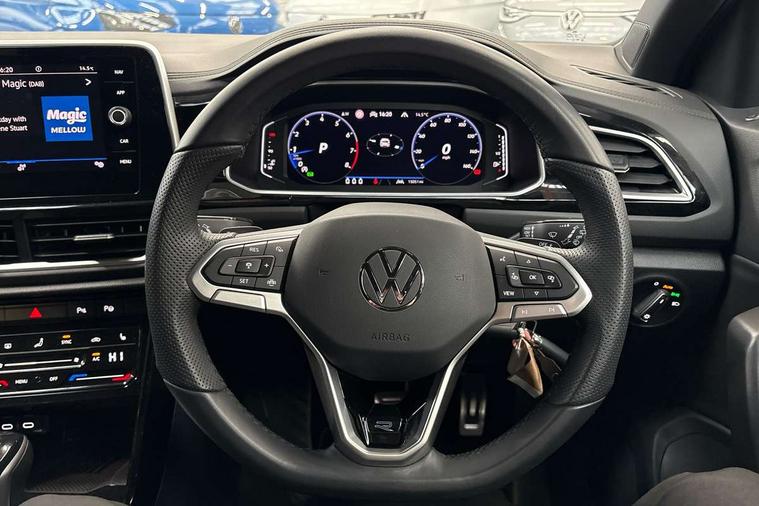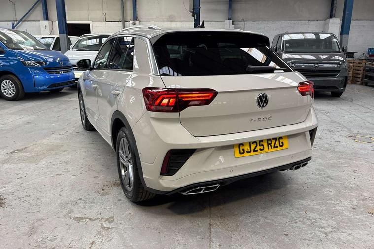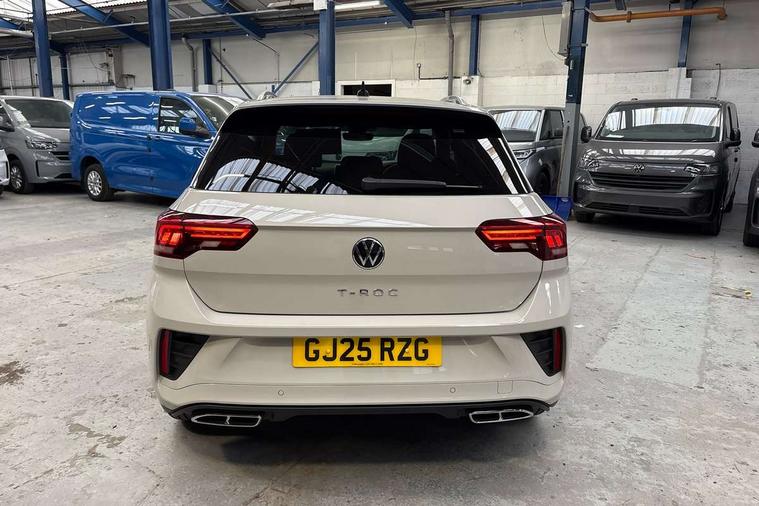10.25" Digital cockpit pro, Advanced driver attention and drowsiness monitor, Emergency call service, Lane keeping system Lane Assist, Mobile phone interface, Modified key software - reduce switch off time for key status change to Long no motion, Online services, Park assist including front and rear parking sensors, Service interval indicator, Tailgate/trunk lid release from outside, Think blue trainer driver tips and journey analysis, Warning sound and light for front seatbelts unfastened, Wireless app connect, Battery regeneration during braking, Start/stop function with battery regeneration, DAB Digital radio, Diversity antenna for FM reception, Front and rear 6 speakers, Music playback - MP3, WMA and AAC files, Premium USB cable in choice of either Apple or Android smartphone compatibility, SD card slot, Simultaneous pairing of 2 compatible mobile devices, Title and cover art display, We Connect and We Connect Plus functionality, Auto dimming interior rear view mirror, Automatic hazard lights activation under emergency braking, Automatic headlight control with LED separate daytime running lights with coming/leaving home function, Body coloured exterior mirror housings and door handles, Electrically adjustable and heated door mirrors, Extended roof spoiler, Exterior mirrors aspherical on driver side, convex on front passenger side, External USB type C socket and charging sockets, Front windscreen wiper with intermittent wipe and 4 position delay, Heated rear window, LED 3rd brake light, LED rear combination lamps, LED rear number plate lights, Power windows with comfort operation and circuit breaker, Privacy glass for rear side windows and rear window, R-Line design body coloured bumpers, Rain sensor, Rear exhaust tailpipe, Rear fog light on one side and reversing lights on both sides, Rear side wing doors, Rear wash/wipe with intermittent wipe setting, Remote electrically foldable door mirrors, puddle lights and reverse activated passenger's door mirror, 12V power socket in centre console, 3 rear head restraints, 3 seat bench in 2nd row, 4 load lashing points in luggage compartment, Air care climatronic air conditoning system with active combination filter and 2-zone temperature control, Black roof lining, Chrome plated decorative trims, Chrome plated radiator grille inserts, air vent surrounds and light switch surrounds, Door and side trim panel with leatherette insert, Front + rear carpet mats, Front centre armrest, Front cupholders x 2, Front footwell illumination, Front reading light, Front scuff plates with R Line logo, Front seat back storage pockets, Glove compartment door with light, Instrument lighting, white adjustable panel illumination, Interior ambient lighting and surround lighting, Interior light delay, Isofix child seat preparation, Leather gearshift handle, Load-through provision with cup holder when folded down ('Unsplit rear seat bench, split folding backrest, with centre armrest), Luggage compartment lighting, Single front passenger seat, Stainless steel pedals, Storage compartment in left and right luggage area, Storage compartment in rear doors, Storage compartments in driver and front passenger doors, Sunvisors with illuminated vanity mirrors, Variable boot floor, height adjustable and removable, Driver assistance pack without proactive passenger protection - T-Roc, 3 point height adj front seatbelts + pretensioners, 3 point seatbelts in outer rear with ECE label, ABS, Child locks on rear doors, City emergency braking and pedestrian monitoring, Driver and front passenger airbag with front passenger airbag deactivation, Driver and front passenger safety-optimised head restraints, Drivers seatbelt reminder, Electronic parking brake, Electronic Stability Control (ESC) inc EDL (Electronic Differential Lock) and ASR (Traction Control), Front and rear passengers curtain airbag system including front side airbags, Hill start assist, Predictive pedestrian protection, Rear disc brakes, Two tone horn, Tyre pressure loss indicator, Volkswagen roadside assistance, Piano black decorative inserts in dashboard and front door trim panels, Trims for alloy wheels,