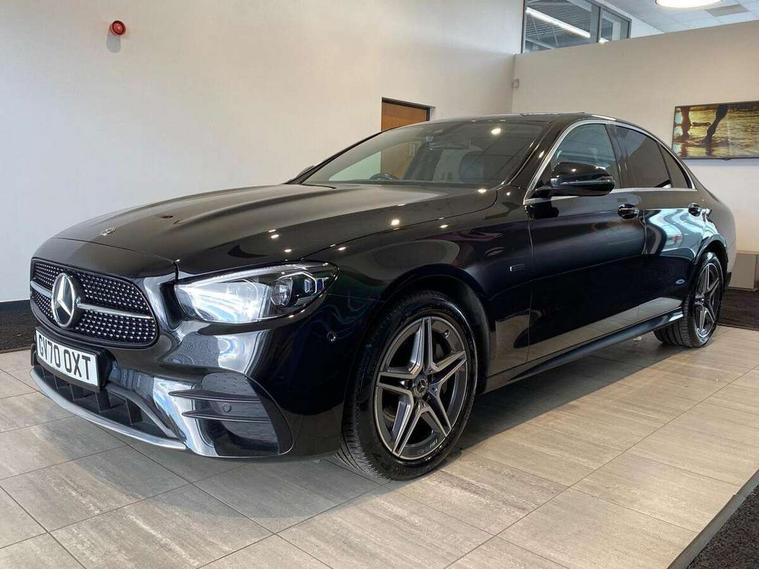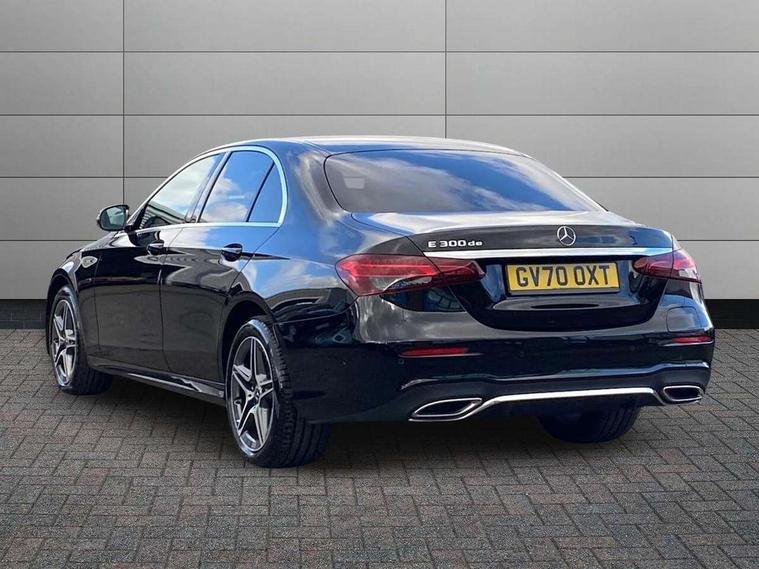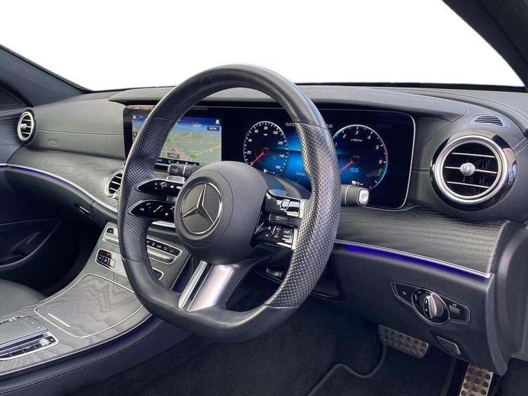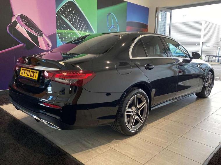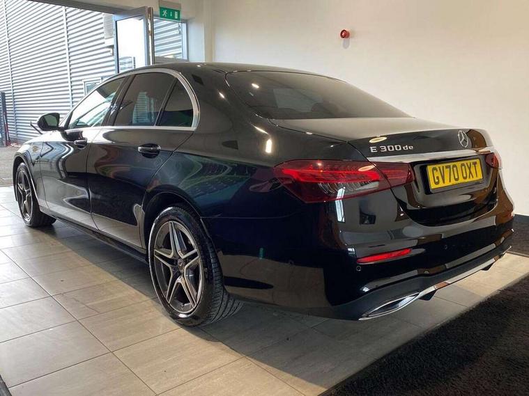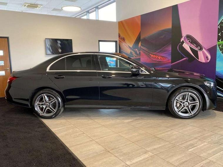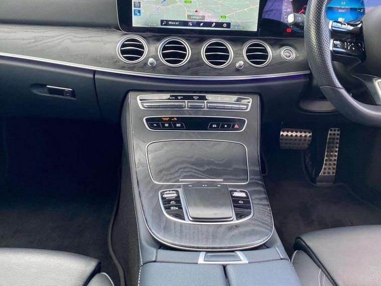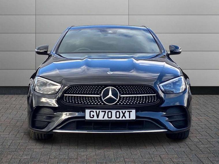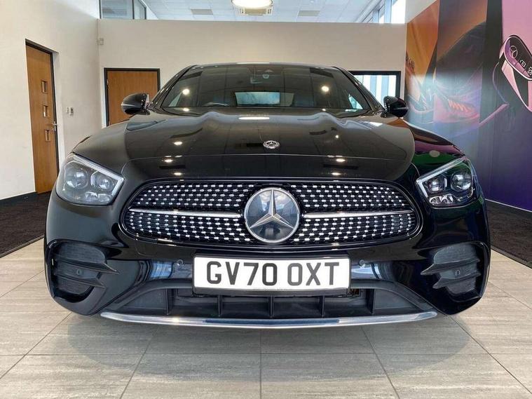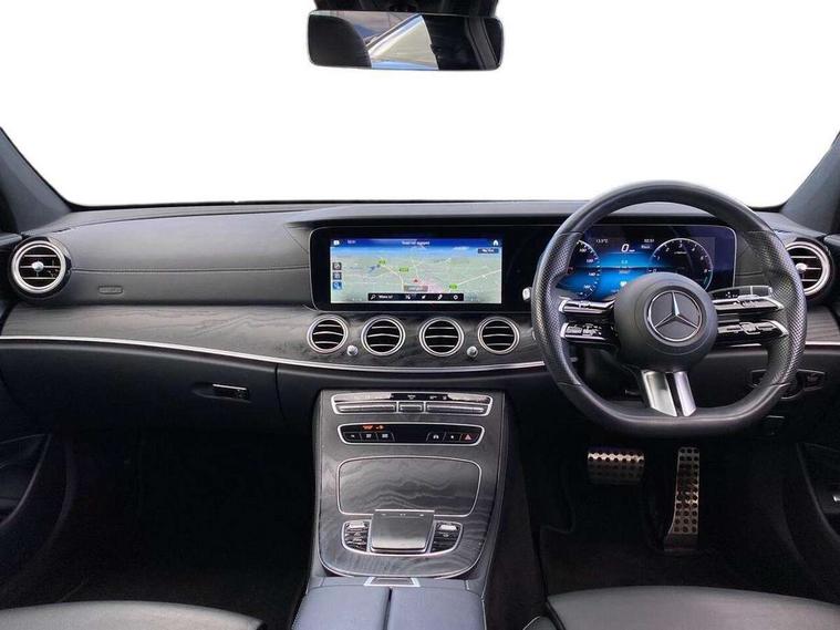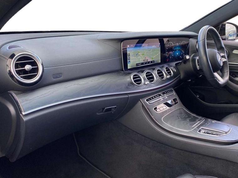 Acoustic ambient protection, Attention assist, Blind spot assist, Brake wear warning display, Cockpit display 12.3" widescreen digital instrument cluster, Cruise control with variable speed limiter, Direct steer speed sensitive steering, DYNAMIC SELECT with a choice of driving modes (ECO, Comfort, Sport, Sport+ and Individual), ECO start/stop function, High resolution 12.3" multimedia colour display, MBUX voice control activated by keywords "Hey Mercedes", Mercedes connect me, Outside temperature display, Remote boot release, Service indicator (ASSYST), Smartphone integration via Android Auto/Apple CarPlay, Media Interface, USB and Bluetooth interface, Status display for rear seat belts in instrument cluster, Touchpad with controller, Traffic sign assist, Trip computer in multifunction display showing current fuel consumption, Wireless charging, 25 litre AdBlue tank, 5m charging cable for wall box/public charging stations(mode 3), 66 litre fuel tank, 8m charging cable for household socket, 9G TRONIC 9 speed automatic transmission, Agility control sports suspension with selective damping system and lowered by 15mm, Charging system - AC charging system rated at 7.4 kW, Diesel particulate filter, Incorrect fuelling protection, 2 USB ports in centre console, 2 USB ports in the rear, DAB Digital radio, MBUX multimedia system with DAB digital radio and touchpad including satellite navigation, Adaptive brake lights, Aerial integrated in rear window, AMG bodystyling front and rear aprons in polished aluminium, Body colour door mirrors, Chrome pins diamond radiator grille, surround in high gloss black, single louvre in chrome with insert in high gloss black and integral star, Electric windows with one touch opening/closing and obstruction sensors, Electrically adjustable and heated door mirrors, Illuminated front door sill panels with Mercedes-Benz lettering, LED rear lights, Multibeam LED Intelligent Light System with Adaptive Highbeam Assist, Pre-installation for roof rail systems, Privacy glass Includes rear side windows and rear windscreen, Rain sensing windscreen wipers, Top surround of side windows in polished aluminium, Visible twin pipe exhaust system integrated into bumper, 3-spoke flat bottom AMG steering wheel with Touch Control buttons, trimmed in black nappa leather, 40:20:40 split folding rear bench seat, Artico man-made leather upper dashboard and beltlines with contrast stitching, Automatic child seat recognition sensor, Black door pins, Black roof lining, Central stowage compartment with 12 V socket in centre console, USB socket for use with Android Auto and Apple CarPlay, Courtesy lights in rear grab handles with reading light functionality, Floor mats with AMG lettering, Four way partially front electric seat adjustment, Front centre armrest with stowage compartment, Glasses compartment in overhead control panel, Glove compartment - lockable, air conditioned and illuminated, Head restraints for driver and front passenger (four-way adjustability) and in rear (two-way), Heated front seats, Interior lighting - 64 colour Ambient lighting, Leather upholstery, Pre-entry climate control, Seat occupancy sensor for front passenger seat, Sports pedals in brushed stainless steel with black rubber studs, Steering column manually adjustable for height and reach, Steering wheel multifunction with gearshift paddles, Steering wheel touch control buttons for audio and onboard settings, Sunvisors with illuminated vanity mirrors, THERMOTRONIC automatic climate control system with 3 climate zones, Mirror pack - E Class, Parking package with reversing camera - E Class, Seat comfort pack - E Class, Stowage pack - E Class, 3x3 point rear seatbelts, Active bonnet pedestrian safety measure which detects an impact and raises bonnet, Active brake assist, Adaptive brake system with HOLD function and brake drying in the wet, Airbags - sidebag for driver and front passenger with combined thorax/pelvis bag, Anti-lock braking system (ABS), Childproof locks manually operated for rear doors and electrically operated for rear power windows, Driver and adaptive front passenger airbags, Drivers knee airbag, Electronic parking brake, Electronic Stability Programme, Hill start assist, ISOFIX child seat attachment points two outer rear seats, Perforated front brake discs and brake calipers with Mercedes-Benz lettering, Pre-Safe anticipatory safety system, Radar based regeneration, Tyre pressure monitoring system, Warning triangle and first aid kit, Window airbags, Alarm system/interior protection/immobiliser, Central locking with interior switch, automatic locking and crash sensor with emergency opening function, Chrome surround in electric key, Keyless entry go starting function, Black open pore ash wood centre console, Open pore black ash wood dashboard and door trim, 18" AMG 5 twin spoke light alloy wheels painted in tantalite grey with high sheen finish, Run flat tyres,
