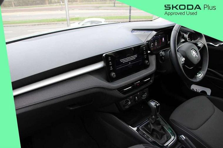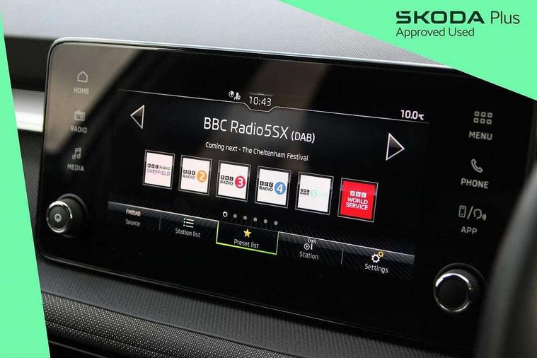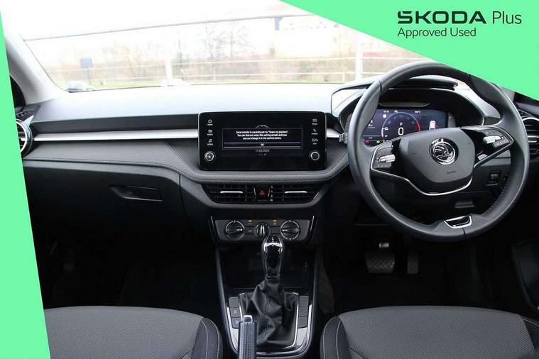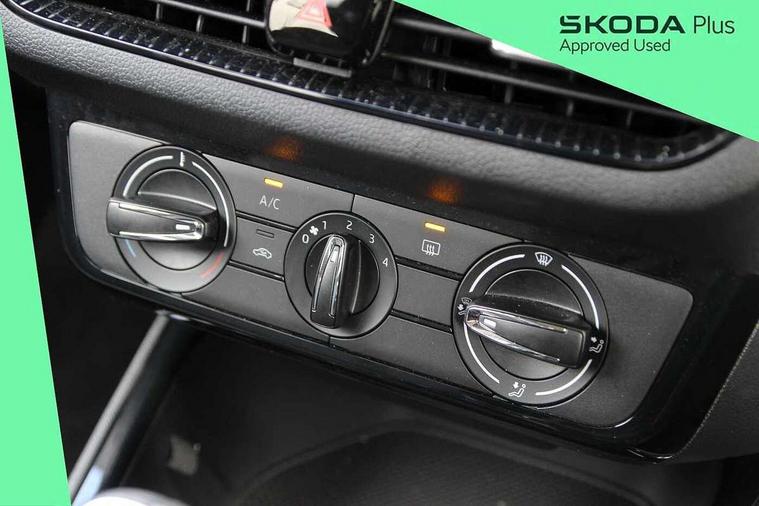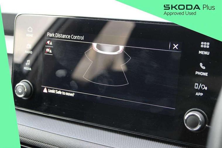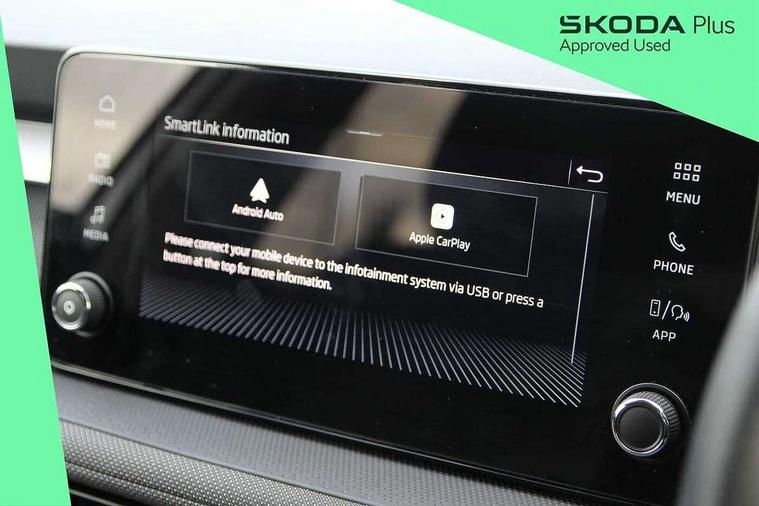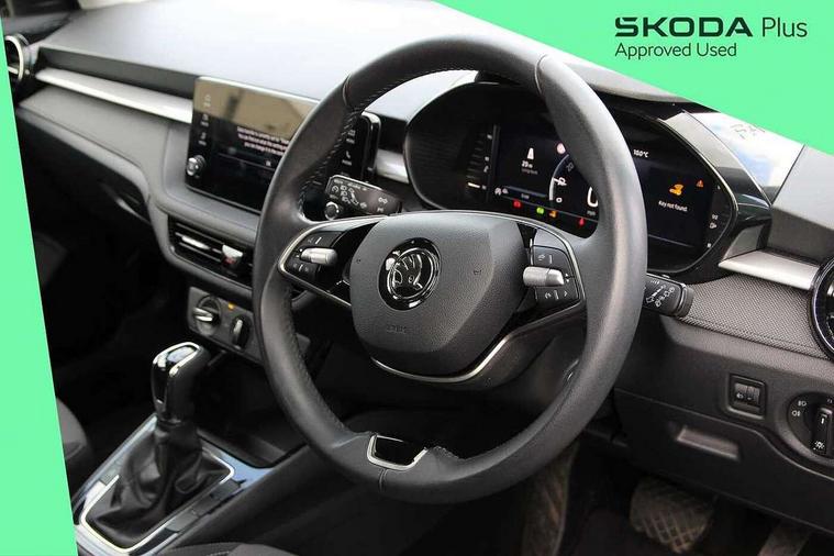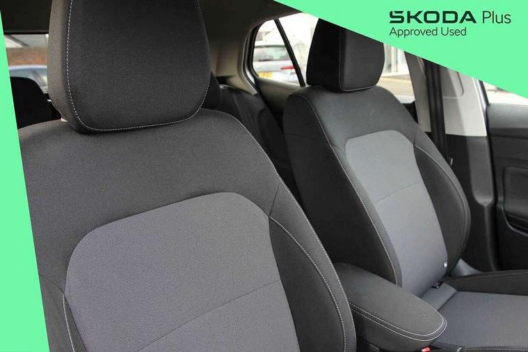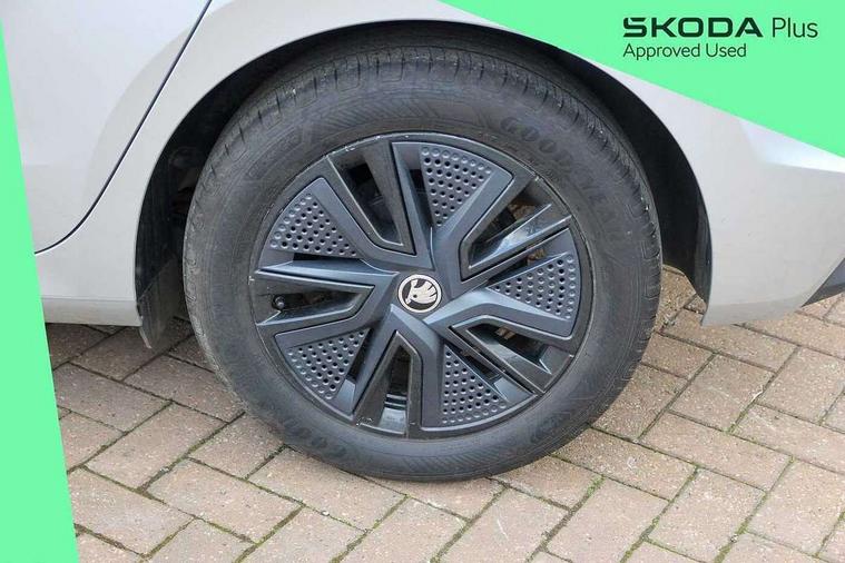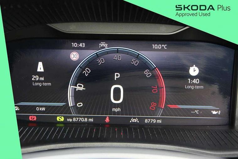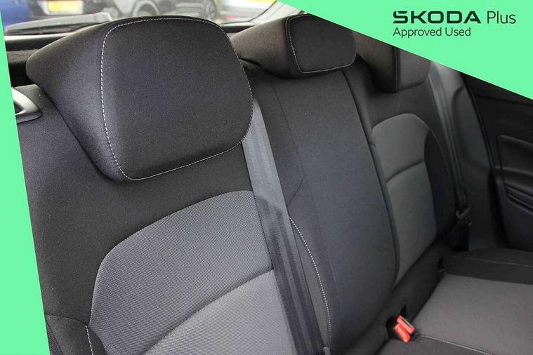 Advanced driver attention and drowsiness monitor, Bluetooth connection, Electromechanical power steering, Exterior temperature gauge, Service interval indicator, Traffic sign recognition, Virtual cockpit with 10.25" colour display, Wireless SmartLink for Apple CarPlay and Android Auto, 6 Speakers (4 in front and 2 in rear), Auxiliary socket for external MP3 player, DAB digital radio reception, Body coloured bumpers, Dimming rear view mirror with black frame, Door mirror integrated indicators, Front and rear electric windows, Front window wiper intermittent control, Headlight range control - Automatic, Ice scraper in fuel cap, LED daytime running lights with coming and leaving home feature, LED rear lights, Privacy glass, Rear LED fog light, Rear side wing doors, Rear window wiper with washing nozzles, Roof mounted spoiler, SKODA tailgate lettering in chrome, Third brake light, 2 reading lights in front and 2 reading lights in rear, 3 rear headrests, Backrest split and folding, Central console with removable cup holder and storage box, Chrome handbrake release button, Fabric upholstery, Front centre armrest, Gearshift knob/handle in leather, Grain satin black interior door handles, Hand brake lever handle in leather, Height adjustable front headrests, Height adjustable steering wheel, ISOFIX and TopTether anchorage points to the outer rear seats, ISOFIX and TopTether on the front passenger seat, Luggage compartment lighting, Manually adjustable lumbar support in front seats, Pollen filter, Rear seat bench unsplit, Single front passenger seat, Storm grey headlining, Sun visors with mirror and airbag label on passenger side, Textile floor mats, Ticket holder, Umbrella in drivers door, 3-point height adjustable front seats belts with pretensioner and force limiter, Automatic warning lights in case of crash, Driver and passengers airbag with switch off function, e-Call+, ESC including ABS, MSR, ASR, EDS, HBA and XDS, Front and rear seat belt warning, FRONT ASSIST (AEB City and AEB Inter Urban), Front side airbags, Head airbags, Hill hold control, One tone horn, Pedestrian protection, Three rear 3-points safety seat belts with pretensioner and force limiter including stop function for outer rear seat belts, Tyre pressure monitoring system, Anti-theft alarm system including immobiliser, interior monitoring, backup horn, and towing protection, Central locking with radio remote control, interior controls, SAFE function and 2 foldable keys, Colour Edition air vents, Grain satin black central console cover, Metallic grey upper decorative trim, Satin black door and side trim panel in front, Textile Kota grey lower decorative inserts, Anti-theft wheel bolts protection, Super-low rolling resistance tyres,