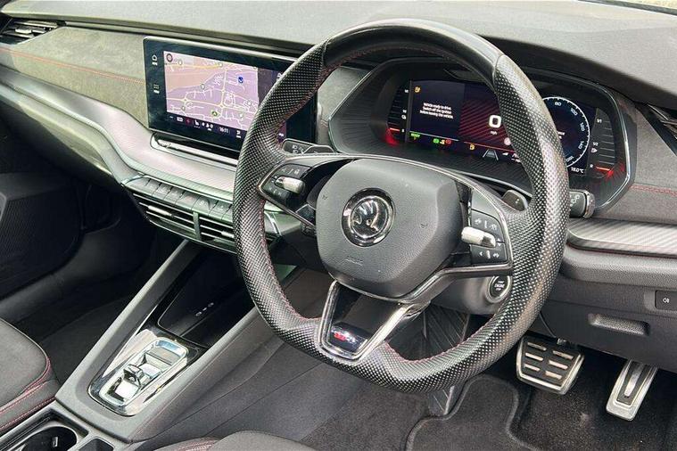 1x USB Type C port in rear view mirror (charging only), 2x USB Type C ports in rear of front centre armrest (charging only), Bluetooth system, Columbus satellite navigation with 10" touchscreen display, Driver fatigue sensor, eCall emergency system, Front and rear parking sensors with manoeuvre assist, Front assist system, Progressive dynamic steering, Speed limiter, Turn Assist, Virtual Cockpit - 10.25" digital display, Virtual pedal with electrically operated boot door (Rear LED lights (high functionality), dynamic indicators, Voice control system, Wireless SmartLink for Apple Car Play, Electronically controlled limited slip differential, Front and rear stabilizers, 2x USB Type C ports (for charging and data transfer), 8 Speakers, DAB Digital radio, Aero front windscreen wipers with intermittent function, Auto dimming rear view mirror, Body colour door handles, Chrome exhaust tailpipes, Door sills with vRS logo, Electric front and rear windows, Exterior gloss black sports styling including front grille, side strip, window surrounds, door mirror and badging, Full LED Matrix headlights with AFS, rear LED lights (high functionality) and dynamic indicators and cornering front fog lights, Headlight washers, Heated rear windscreen, High level third brake light, Ice scraper in fuel cap, LED daytime running lights, Rain and light sensors, Rear fog light on one side, Rear privacy glass, Rear side wing doors, vRS bumpers and lip spoiler, 3 rear headrests, 3 seat bench in 2nd row, 4 foldable roof handles, Aluminium pedals, Black headlining, Black microsuede padded dash panel with red contrast stitching, Chrome inner door handles, Front centre armrest, Front head restraints, Heated front seats, Illuminated glovebox, Leather trimmed gearshift lever, Luggage compartment lighting x1 light, Mechanical rear seat release, Parcel shelf - folding, Single front passenger seat, Sunglasses storage, Textile floor mat set, Three spoke leather sports multifunction steering wheel with paddles, Ticket holder, Umbrella in door panel, Unsplit rear bench seat and split folding backrest, LED interior light pack - Octavia, 3 point front/outer rear seatbelts+pre-tensioners, Alarm with interior monitoring, tilt sensor and back up horn, Automatic door unlocking in case of crash, Automatic fuel cut off in case of crash, Automatic warning lights in case of emergency braking, Curtain airbags and front side airbags, Driver and front passenger airbags, Drivers knee airbag, Electronic parking brake, ESC including ABS, EBV, MSR, ASR, EDS, HBA, DSR, Front and rear disc brakes, Front central airbag, Hill hold control, Hill start assist, ISOFIX on front passenger seat and outer rear seats, Manual rear child locks, Passenger airbag deactivate switch, Pro active services, Red brake calipers, Two tone horn, Tyre pressure monitor, Visual and acoustic seat belt reminder, Warning reflectors in front door, Door locks with immobiliser, Keyless entry and start/stop including rear doors, Remote central locking, Carbon optic decorative inserts, Gloss black air vent surrounds, 19" Altair anthracite alloy wheels,