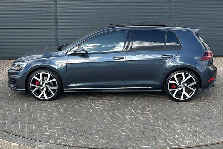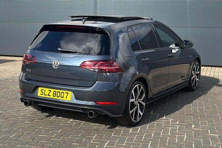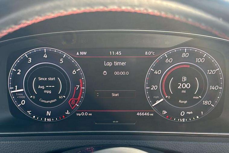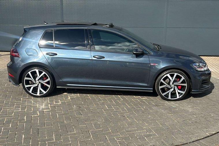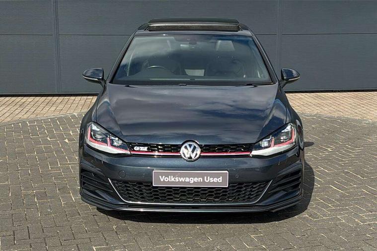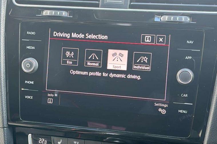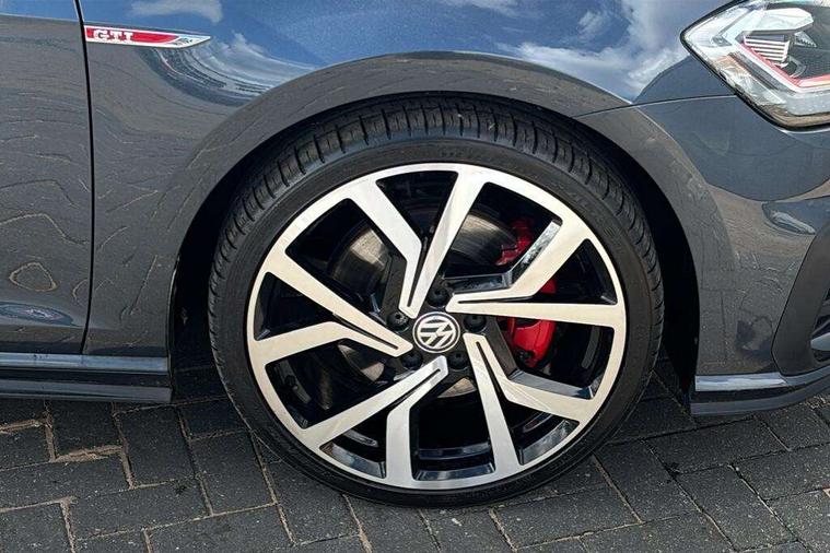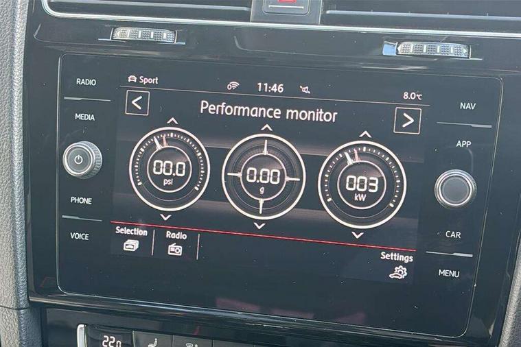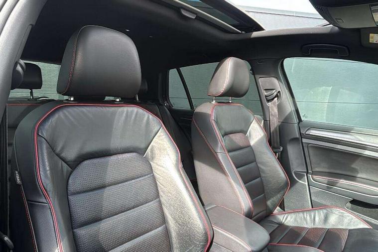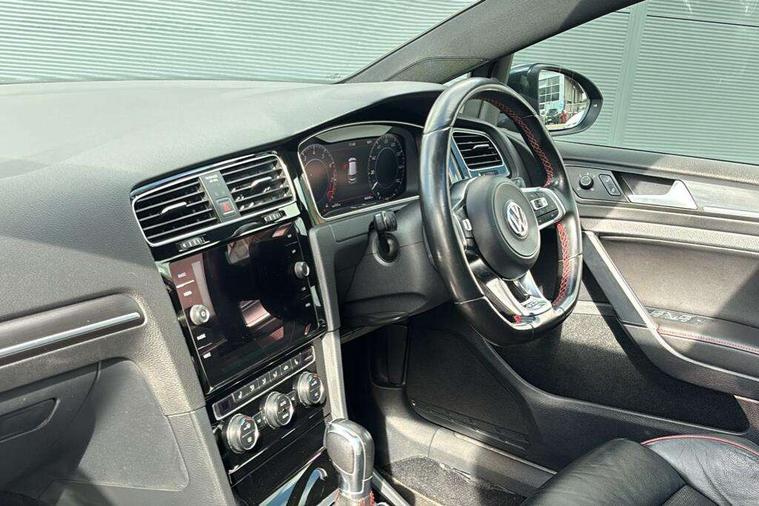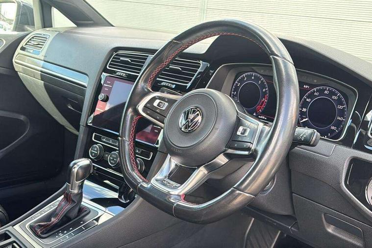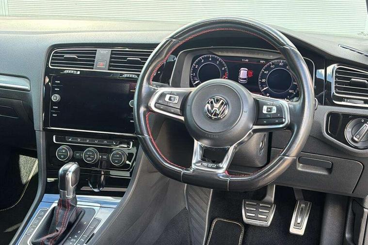 'Lights On' Reminder warning buzzer, 8" touch screen, Adaptive Cruise Control with pedestrian detection and speed limiter, App-Connect, Bluetooth hands free telephone connection, Brake pad wear indicator warning light, Driver alert system, Driver profile selection, Exterior temperature gauge, Front assistant collision mitigation, Instrument cluster in white, Multifunction computer, Progressive power assisted steering, Rev counter, Trip and service interval display, Ultrasonic front and rear optical and audible parking sensors, Warning buzzer and light for front seatbelts unfastened, Anti-tramp function, Lowered sports suspension, XDS plus electronic differential lock, CD/MP3/WMA, USB and SD card reader, aux-in, Composition media system, DAB Digital radio, 3D-LED-SBBR with sweeping indicator, Auto dimming rear view mirror, Automatic coming/leaving home lighting function, Automatic headlights, Black rear diffuser, Body colour door handles, Body colour door mirrors, Body colour rear roof spoiler, Body colour sports bumpers, Electric front windows, Electric rear windows, Electrically adjustable and heated door mirrors, Heated rear windscreen, Honeycomb radiator grille - black, LED daytime running lights, LED front fog lights, LED rear lights, Rain sensor, Rear windscreen washer and wiper with interval delay, Twin exhaust tailpipe, 12V socket in luggage compartment, 3 rear headrests, 3 spoke steering wheel, 60/40 split folding rear seat, Air conditioning - 2 zone electronic climate control, Bag hook in luggage compartment, Black headlining, Boot lashing points, Cooled glovebox, Courtesy light delay, Cover for storage compartment in centre, Dust/pollen filter, Front + rear carpet mats, Front centre armrest with storage box and rear air vents, Front passenger drawer stowage, Front passenger seat height adjust, Front seat back storage pockets, Gearshift paddles, Grab handles, Height adjustable driver's seat, Height/reach adjust steering wheel, Illuminated door sills, Illuminated vanity mirrors, Isofix preparation for 2 rear child seats, Load through provision with rear centre armrest and cupholders x2, Luggage compartment cover, Luggage compartment lighting, Multi-function leather steering wheel with red stitching, Overhead storage box, Stainless steel pedals, Storage box in luggage compartment, Storage compartments in doors, Sun visors, Variable boot floor, height adjustable and removable, Ambient lighting pack - Golf, Mirror pack - Golf, 3 point height adj front seatbelts + pretensioners, 3 rear 3 point seatbelts, ABS, Automatic post collision braking, Child locks on rear doors, Driver/Front Passenger airbags, Driver/Passenger whiplash optimised head restraints, Drivers knee airbag, Electronic parking brake with auto hold, ESP with EDL + ASR, Front and rear curtain airbags, Front passenger airbag deactivation, Front side airbags, Pre crash system, Red brake calipers, Tyre pressure monitor, Alarm with interior protection, Electronic engine immobiliser, Remote central locking with 2 remote folding keys, Chrome-plated light switch surround, Honeycomb black decorative inserts, Piano black centre console, Space saver spare wheel,