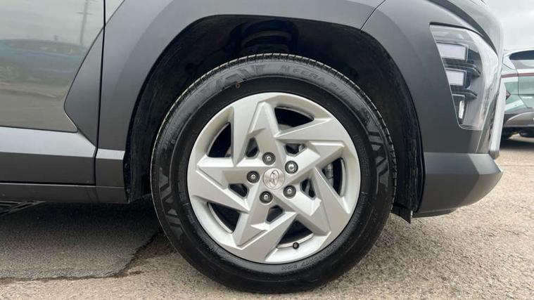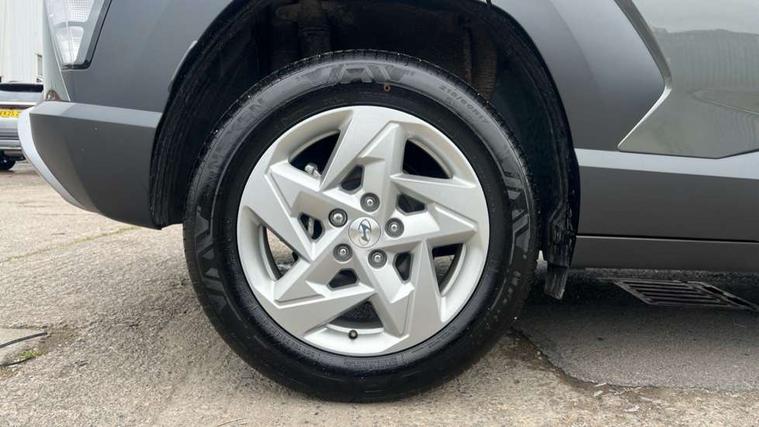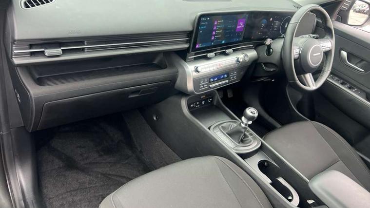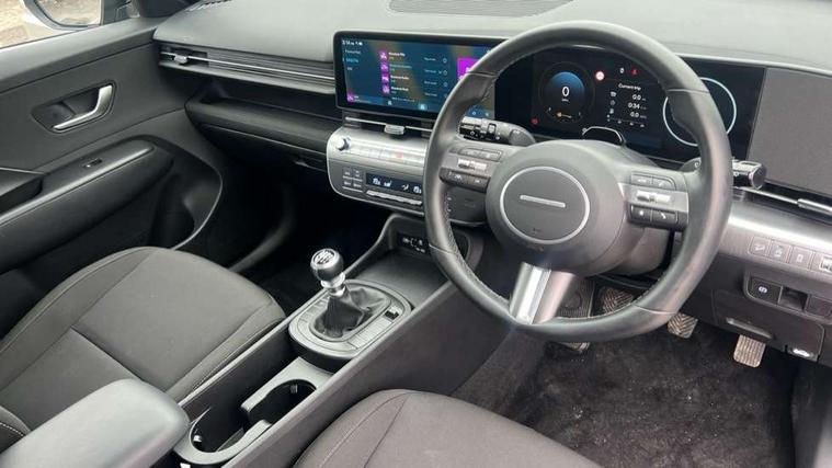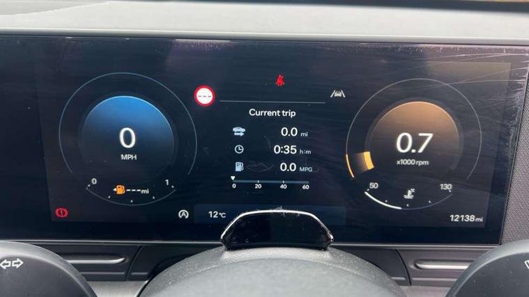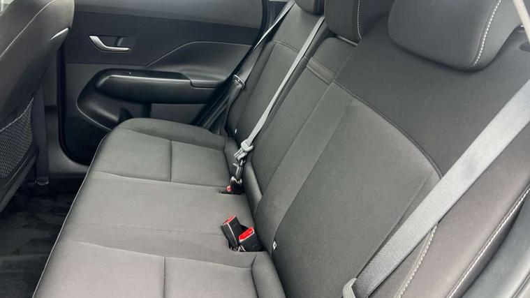 12.25" digital instrument cluster, 12.3" touchscreen centre console display satellite navigation with bluelink, live services and mapcare, Bluetooth connectivity with voice recognition, Cruise control, Driver status monitor (DSM), Driver supervision instrument cluster with 12.3" LCD display, eCall emergency call system, Feature on demand - Enabled, Forward collision avoidance assist (FCA 1.5) - Car, pededstrian, cycle and junction turning, Front parking sensor, Intelligent speed limit assist, Lane follow assist, Lane keep assist, Leading vehicle departure alert (LVDA), Parking system with rear camera and guidance system, PAS, Rear parking sensor, Rear view camera with dynamic guidelines, Roadside assistance, Wireless Smartphone Integration includes Apple CarPlay and Android auto, 2 front USB C and 2 rear USB C charging points, DAB Digital radio, Speakers - Front, rear and tweeters, Steering wheel audio, phone and cruise controls, Auto dimming rear view mirror, Automatic headlights with dusk sensor, Automatic windscreen wipers with rain sensor, Black painted wheel arch inserts, Body colour exterior door handles, Body coloured door mirrors, Door mirror LED indicator lights, Electric front windows with anti-trap mechanism and one touch control, Electric rear windows, Electrically adjustable and heated door mirrors, Full LED MFR headlights, LED daytime running lights, LED taillights, LED upper and lower rear lights, Power folding door mirrors, Rear roof spoiler with integrated LED brake light, Rear side wing doors, Rear skid plate - silver, Rear wiper, Roof rails, Tinted glass in front and rear doors, Windscreen auto defog function, 12V power outlet in front console, 2 zone climate control, 3 seat bench in 2nd row, Adjustable head restraints, Cloth upholstery, Driver and passenger front seat pockets, Driver's seat lumbar support, Driver/passenger manual seat height adjustment, Driver/passenger sunvisors and illuminated vanity mirrors, Floor mats, Height/reach adjustable steering column, Leather steering wheel, Leather wrapped steering wheel and gear knob, LED centre interior light, LED front interior light, Luggage compartment LED lighting, Luggage shelf, Metal paint effect interior door handles, Rear centre armrest with cupholders, Single front passenger seat, Vertical adjustment rear head restraints, Trailer wiring package - Kona, Airbag - front, front side, curtain and centre front airbag, Anti-lock brake system (ABS), Childproof rear door locks, Downhill brake control, Electric parking brake, Electronic stability control, Fixed 3 point for second row centre passenger seatbelt, Hill start assist control (HAC), Rear seat alert, Tyre pressure monitoring system, Alarm/immobiliser, Rear occupant alert, Remote central locking, Smart key with keyless entry and start/stop button, Five year annual vehicle health checks, 17" Alloy wheels, Temporary mobility kit (TMK),