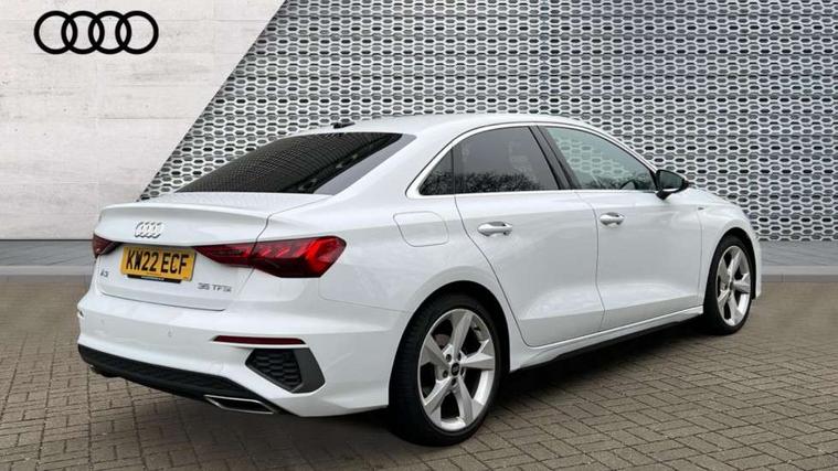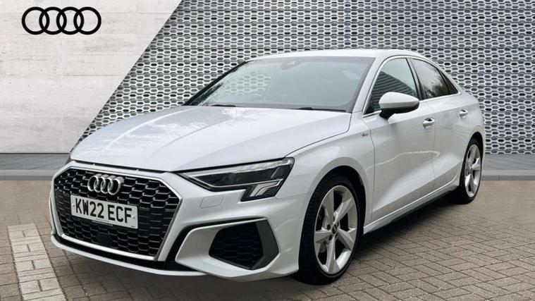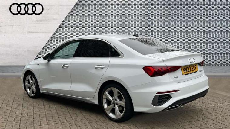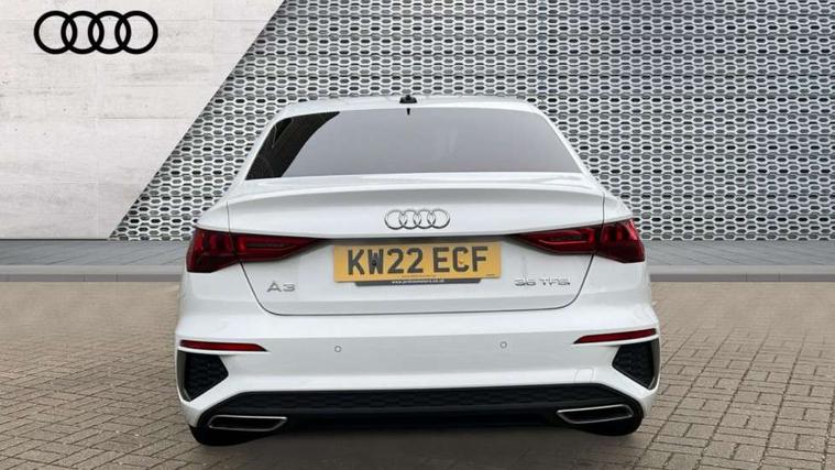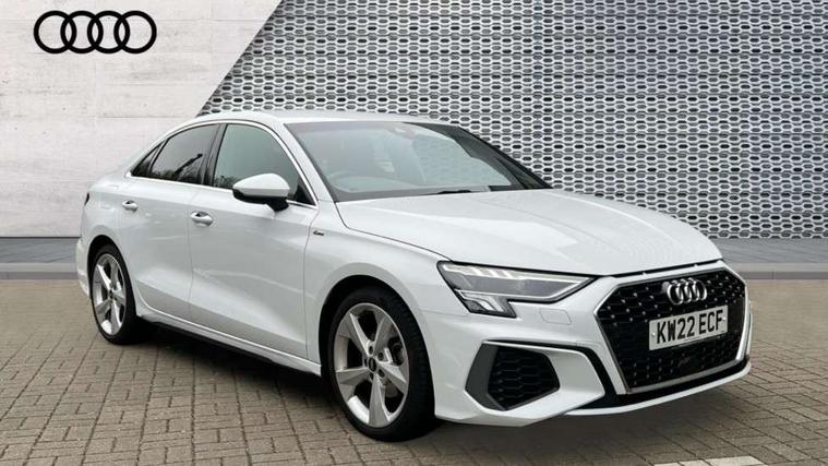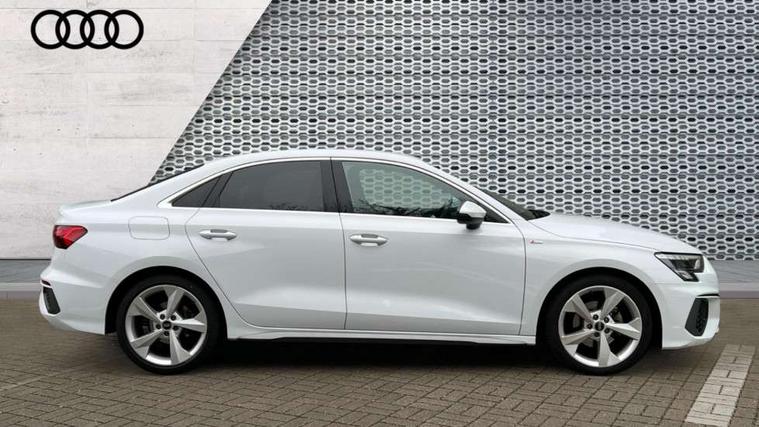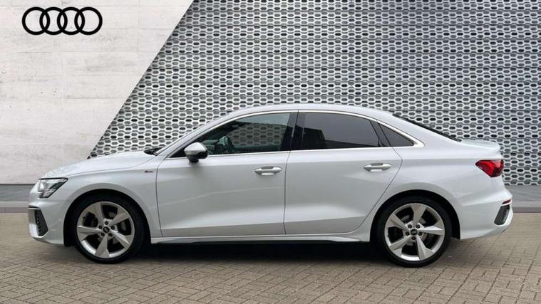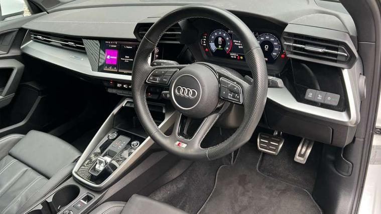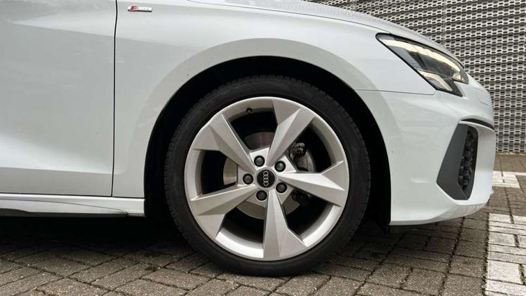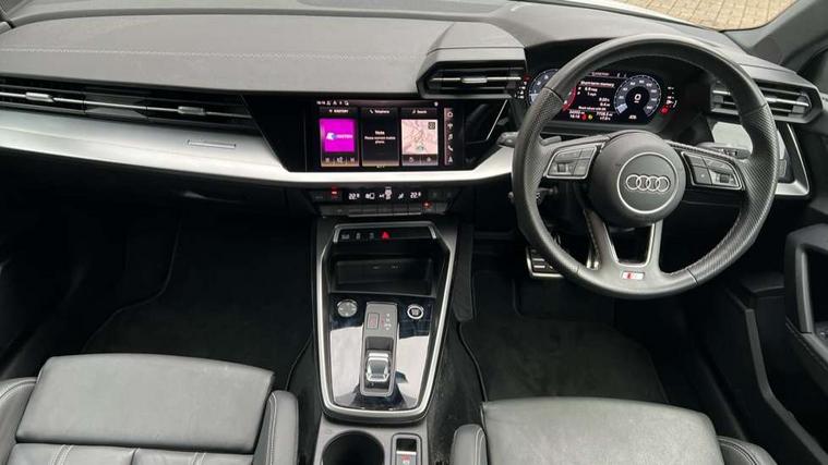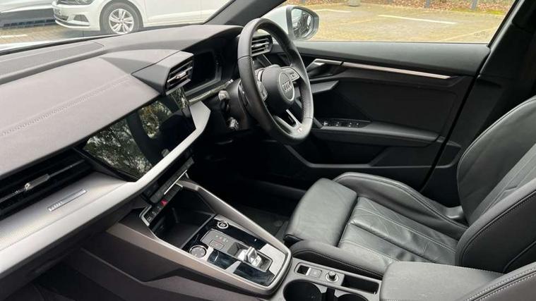 Audi connect emergency call and service, Audi drive select (Auto, Comfort, Dynamic, Efficiency and Individual), Audi smartphone interface, Audi Virtual Cockpit - 10.25" digital and colour instrument cluster, Automatic start/stop system with recuperation, Bluetooth interface, Collision avoidance assistant, Electromechanical power speed sensitive steering, Lane departure warning system, MMI Navigation Plus with high resolution 10.1" colour touch screen display, Service indicator, Voice control system with natural language interaction, 2x USB Type C ports (for charging and data transfer), 6 passive loudspeakers, CD player, DAB Digital radio, 3rd brake light, Acoustic glass windscreen, Aluminium window trim, Auto dimming frameless rear view mirror, Electrically adjustable/heated/folding/dimming door mirrors with kerb view includes integrated LED indications + kerb view function for passenger side, Front electric windows, Illuminated door sills with aluminium inserts at the front with S logo, LED daytime running lights, LED headlights with LED rear lights and dynamic rear indicators, Light and rain sensors, Model and engine designation badges at rear, Privacy glass - dark tinted rear window, rear door and side windows, Rear boot, Rear electric windows, Rear side wing doors, S line bumpers, S roof spoiler, 12V socket and storage compartment in front centre console, 3 seat bench in 2nd row, 40/20/40 split folding rear seat bench with cupholder, Black cloth headlining, Dual zone electronic climate control, Front and rear centre armrest in leather, Front and rear headrests, Front/rear floor mats, Height and reach adjustable steering wheel, Illuminated vanity mirror, Interior lighting - glove compartment light and right hand side, Luggage compartment floor covering, Manual boot compartment lid, Manually adjustable front sport seats, Seat side bolsters, Single front passenger seat, Stainless steel pedals and front footrest in black, Twin leather upholstery with front sports seats S embossed logo, Aluminium interior elements pack - A3 Saloon, S line styling pack - A3 Saloon, 3x3 point rear seat belts, Driver and front passenger airbag with passenger airbag deactivation, Electronic Stabilisation Control (ESC) including ABS, ASR and EDL, First aid kit with warning triangle and 2 safety vests, Front side airbags with head airbags and interaction airbag, Hill hold assist, Pre-sense front with pedestrian and cyclist detection, Seatbelt monitoring, Tyre pressure loss indicator, Anti theft alarm, Anti-theft wheel bolts, Immobiliser, Manual child locks, Remote control central locking, Aluminium air vent surrounds, Aluminium trim elements, Dark spectrum aluminium inlays, accent surfaces in the dashboard and centre console in platinum grey silk effect paint finish,