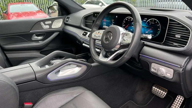 12.3 High resolution wide screen cockpit display with choice of three display styles Classic, Progressive or Sport and unique ambient lighting setting, Attention assist, Blind spot assist, Brake wear warning display, Cruise control with variable speed limiter, Direct steer speed sensitive steering, DYNAMIC SELECT with a choice of driving modes (ECO, Comfort, Sport and Individual), Easy-pack tailgate - Powered opening/closing automatically, ECO start/stop function, Geofencing, Hard-disk navigation, Hey Mercedes Voice activation, High resolution 12.3" multimedia colour display, Lane keeping assistant (LKA), Mercedes me connect including emergency call system, accident recovery, breakdown management and maintenance, Outside temperature display, Remote boot release, Reversing camera, Service indicator (ASSYST), Smartphone integration, Speed limit assist, Status display for rear seat belts in instrument cluster, Traffic Sign Assist, Traffic sign recognition including wrong way warning function and display of posted speed limits in the instrument cluster, Trip computer in multifunction display showing current fuel consumption, Wireless charging, 3.7 kW monophase on board charger, 85 litre fuel tank, 9G TRONIC 9 speed automatic transmission, Charging cable for wallbox and public charging stations 8m straight, Diesel particulate filter (DPF), Incorrect fuelling protection, Lowered comfort suspension with steel springs and selective adaptive dampening with lowering by up to -15mm, Plug-in Hybrid specifics with 7.4kW AC, 60kW DC charging, Household and public charging cables, Acoustic ambient protection, Pre-entry climate control, Additional USB connection, DAB Digital radio, Dual bluetooth interface, 2 USB ports (type C), MBUX multimedia system, 3rd brake light, Adaptive brake lights, Adaptive high beam assist, Aerial for GPS, Aluminium look, illuminated running boards with rubber studs, AMG bodystyling front and rear aprons and side skirts in polished aluminium, Body colour door mirrors, Body coloured bumpers, Daytime running lights, Electric windows with one touch opening/closing and obstruction sensors, Exterior mirrors heated and electronically adjustable, Front green tinted glass, LED high performance headlamps, LED rear lights, Privacy glass - heat insulating dark tinted glass, Radiator grille with integrated star and single louvre in matt iridium silver with chrome trim, Radio aerial integrated into rear window, Rain sensing windscreen wipers, Rear side wing doors, Rear wiper, Roof rail system, Top surround of side windows in polished aluminium, Visible twin pipe exhaust system integrated into bumper, Waistline in polished aluminium, 3 spoke AMG multifunction steering wheel with touch control buttons, trimmed in black nappa leather with flattened bottom section, 4 way adjustable front head restraints and 2 way rear head restraints, 4 way lumbar support, 40:20:40 split folding rear seats, AMG brushed stainless steel sports pedals with rubber studs, AMG floor mats with AMG lettering, Artico man-made leather upper dashboard with contrast topstitching, Automatic child seat recognition sensor, Black roof liner, Central stowage compartment with 12 V socket in centre console, Chrome door pins, Courtesy lights in rear grab handles with reading light functionality, Electric height/reach adjustable steering column, Front centre armrest with stowage compartment and illuminated grab handles, Gearshift paddles on steering wheel, Glove compartment - lockable, air conditioned and illuminated, Heated front seats, Interior lighting - 64 colour Ambient lighting, ISOFIX child seat attachment points two outer rear seats, Seat occupancy sensor for front passenger seat, Second row three seats, Single front passenger seat, Sports steering wheel, Sunvisors with illuminated vanity mirrors, Touchpad, Two zone automatic climate control, Anti theft Protection package - GLE, Interior chrome package - GLE, Memory package - GLE, Mirror package - GLE, Parking package - GLE, Active bonnet, Active braking assist, Adaptive brake system with HOLD function and brake drying in the wet, Airbags - driver and front passenger, with extended adaptivity for front passenger airbag, Airbags - sidebag for driver and front passenger with combined thorax/pelvis bag, Airbags - windowbags, Anti-lock braking system (ABS), Childproof locks manually operated for rear doors and electrically operated for rear power windows, Drivers knee airbag, Electronic parking brake, Electronic Stability Programme (ESP), Perforated front brake discs and brake calipers with Mercedes-Benz lettering, Pre-Safe anticipatory safety system, Three point rear seat belts, Tyre pressure monitoring system and loss warning system, Warning triangle and first aid kit, Alarm system/interior protection/immobiliser, Central locking with interior switch, automatic locking and crash sensor with emergency opening function, Chrome surround electric key, Keyless Go starting function, Dashboard and door, anthracite open pore oak wood trim, Trim - Centre console, anthracite open pore oak wood trim, 20" AMG 5 twin spoke light alloy wheels, Summer tyres with noise reducing absorber, TIREFIT with tyre inflation compressor,