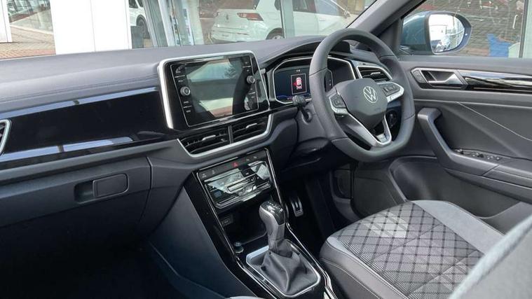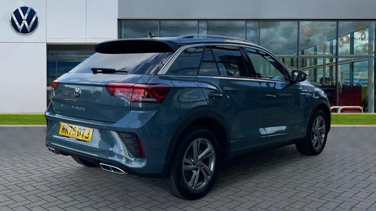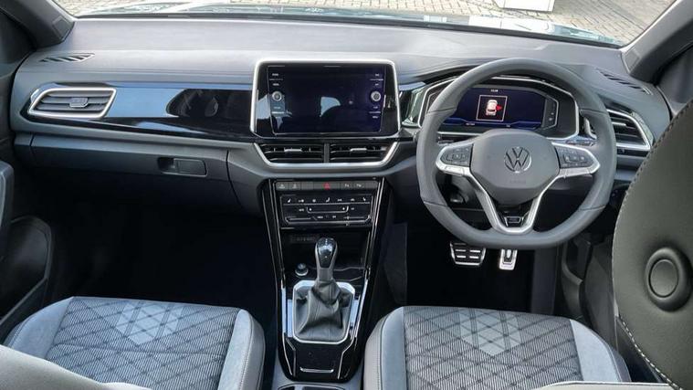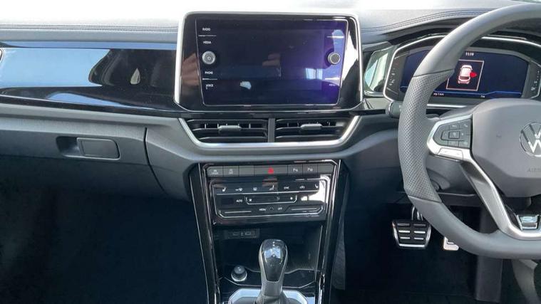 10.25" Digital cockpit pro, Advanced driver attention and drowsiness monitor, Emergency call service, Lane keeping system Lane Assist, Mobile phone interface, Modified key software - reduce switch off time for key status change to Long no motion, Online services, Park assist including front and rear parking sensors, Service interval indicator, Tailgate/trunk lid release from outside, Think blue trainer driver tips and journey analysis, Warning sound and light for front seatbelts unfastened, Wireless app connect, Battery regeneration during braking, Start/stop function with battery regeneration, DAB Digital radio, Diversity antenna for FM reception, Front and rear 6 speakers, Music playback - MP3, WMA and AAC files, Premium USB cable in choice of either Apple or Android smartphone compatibility, SD card slot, Simultaneous pairing of 2 compatible mobile devices, Title and cover art display, We Connect and We Connect Plus functionality, Auto dimming interior rear view mirror, Automatic hazard lights activation under emergency braking, Automatic headlight control with LED separate daytime running lights with coming/leaving home function, Body coloured exterior mirror housings and door handles, Electrically adjustable and heated door mirrors, Extended roof spoiler, Exterior mirrors aspherical on driver side, convex on front passenger side, External USB type C socket and charging sockets, Front windscreen wiper with intermittent wipe and 4 position delay, Heated rear window, LED 3rd brake light, LED rear combination lamps, LED rear number plate lights, Power windows with comfort operation and circuit breaker, Privacy glass for rear side windows and rear window, R-Line design body coloured bumpers, Rain sensor, Rear exhaust tailpipe, Rear fog light on one side and reversing lights on both sides, Rear side wing doors, Rear wash/wipe with intermittent wipe setting, Remote electrically foldable door mirrors, puddle lights and reverse activated passenger's door mirror, 12V power socket in centre console, 3 rear head restraints, 3 seat bench in 2nd row, 4 load lashing points in luggage compartment, Air care climatronic air conditoning system with active combination filter and 2-zone temperature control, Black roof lining, Chrome plated decorative trims, Chrome plated radiator grille inserts, air vent surrounds and light switch surrounds, Door and side trim panel with leatherette insert, Front + rear carpet mats, Front centre armrest, Front cupholders x 2, Front footwell illumination, Front reading light, Front scuff plates with R Line logo, Front seat back storage pockets, Glove compartment door with light, Instrument lighting, white adjustable panel illumination, Interior ambient lighting and surround lighting, Interior light delay, Isofix child seat preparation, Leather gearshift handle, Load-through provision with cup holder when folded down ('Unsplit rear seat bench, split folding backrest, with centre armrest), Luggage compartment lighting, Single front passenger seat, Stainless steel pedals, Storage compartment in left and right luggage area, Storage compartment in rear doors, Storage compartments in driver and front passenger doors, Sunvisors with illuminated vanity mirrors, Variable boot floor, height adjustable and removable, Driver assistance pack without proactive passenger protection - T-Roc, 3 point height adj front seatbelts + pretensioners, 3 point seatbelts in outer rear with ECE label, ABS, Child locks on rear doors, City emergency braking and pedestrian monitoring, Driver and front passenger airbag with front passenger airbag deactivation, Driver and front passenger safety-optimised head restraints, Drivers seatbelt reminder, Electronic parking brake, Electronic Stability Control (ESC) inc EDL (Electronic Differential Lock) and ASR (Traction Control), Front and rear passengers curtain airbag system including front side airbags, Hill start assist, Predictive pedestrian protection, Rear disc brakes, Two tone horn, Tyre pressure loss indicator, Volkswagen roadside assistance, Piano black decorative inserts in dashboard and front door trim panels, Trims for alloy wheels,