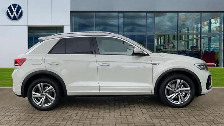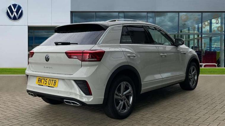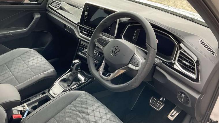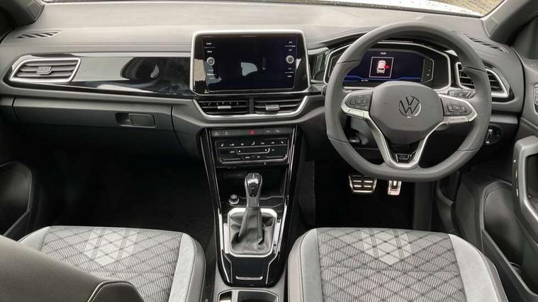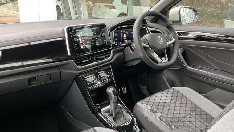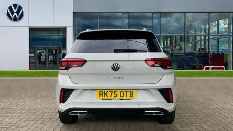 10.25" Digital cockpit pro, Advanced driver attention and drowsiness monitor, Emergency call service, Lane keeping system Lane Assist, Mobile phone interface, Modified key software - reduce switch off time for key status change to Long no motion, Online services, Park assist including front and rear parking sensors, Service interval indicator, Tailgate/trunk lid release from outside, Think blue trainer driver tips and journey analysis, Warning sound and light for front seatbelts unfastened, Wireless app connect, Battery regeneration during braking, Start/stop function with battery regeneration, DAB Digital radio, Diversity antenna for FM reception, Front and rear 6 speakers, Music playback - MP3, WMA and AAC files, Premium USB cable in choice of either Apple or Android smartphone compatibility, SD card slot, Simultaneous pairing of 2 compatible mobile devices, Title and cover art display, We Connect and We Connect Plus functionality, Auto dimming interior rear view mirror, Automatic hazard lights activation under emergency braking, Automatic headlight control with LED separate daytime running lights with coming/leaving home function, Body coloured exterior mirror housings and door handles, Electrically adjustable and heated door mirrors, Extended roof spoiler, Exterior mirrors aspherical on driver side, convex on front passenger side, External USB type C socket and charging sockets, Front windscreen wiper with intermittent wipe and 4 position delay, Heated rear window, LED 3rd brake light, LED rear combination lamps, LED rear number plate lights, Power windows with comfort operation and circuit breaker, Privacy glass for rear side windows and rear window, R-Line design body coloured bumpers, Rain sensor, Rear exhaust tailpipe, Rear fog light on one side and reversing lights on both sides, Rear side wing doors, Rear wash/wipe with intermittent wipe setting, Remote electrically foldable door mirrors, puddle lights and reverse activated passenger's door mirror, 12V power socket in centre console, 3 rear head restraints, 3 seat bench in 2nd row, 4 load lashing points in luggage compartment, Air care climatronic air conditoning system with active combination filter and 2-zone temperature control, Black roof lining, Chrome plated decorative trims, Chrome plated radiator grille inserts, air vent surrounds and light switch surrounds, Door and side trim panel with leatherette insert, Front + rear carpet mats, Front centre armrest, Front cupholders x 2, Front footwell illumination, Front reading light, Front scuff plates with R Line logo, Front seat back storage pockets, Glove compartment door with light, Instrument lighting, white adjustable panel illumination, Interior ambient lighting and surround lighting, Interior light delay, Isofix child seat preparation, Leather gearshift handle, Load-through provision with cup holder when folded down ('Unsplit rear seat bench, split folding backrest, with centre armrest), Luggage compartment lighting, Single front passenger seat, Stainless steel pedals, Storage compartment in left and right luggage area, Storage compartment in rear doors, Storage compartments in driver and front passenger doors, Sunvisors with illuminated vanity mirrors, Variable boot floor, height adjustable and removable, Driver assistance pack without proactive passenger protection - T-Roc, 3 point height adj front seatbelts + pretensioners, 3 point seatbelts in outer rear with ECE label, ABS, Child locks on rear doors, City emergency braking and pedestrian monitoring, Driver and front passenger airbag with front passenger airbag deactivation, Driver and front passenger safety-optimised head restraints, Drivers seatbelt reminder, Electronic parking brake, Electronic Stability Control (ESC) inc EDL (Electronic Differential Lock) and ASR (Traction Control), Front and rear passengers curtain airbag system including front side airbags, Hill start assist, Predictive pedestrian protection, Rear disc brakes, Two tone horn, Tyre pressure loss indicator, Volkswagen roadside assistance, Piano black decorative inserts in dashboard and front door trim panels, Trims for alloy wheels,