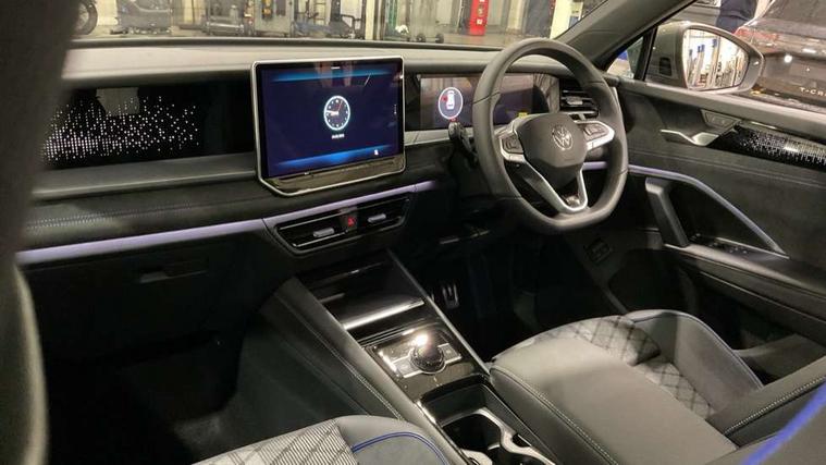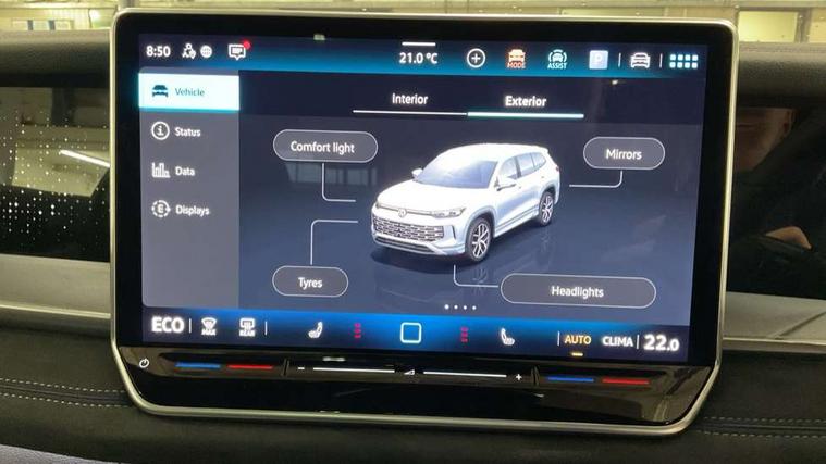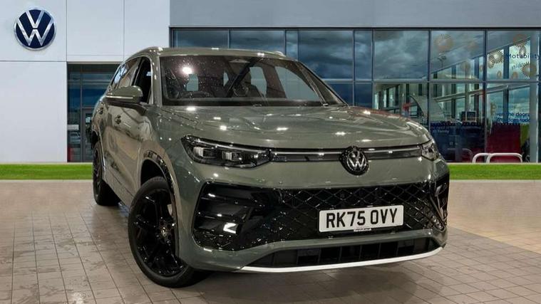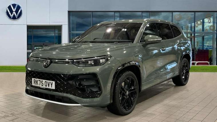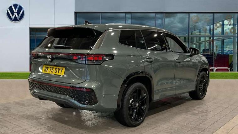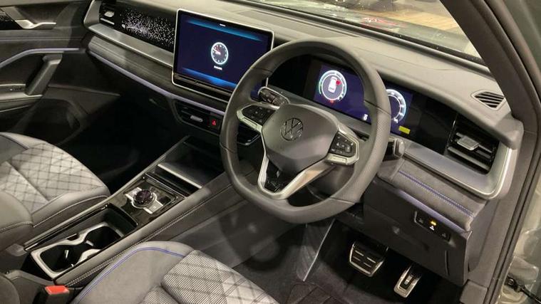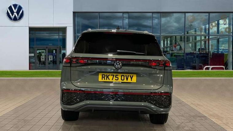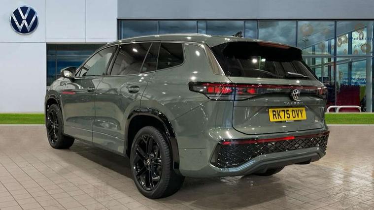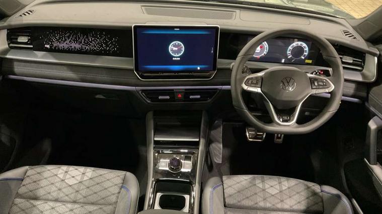 Adaptive cruise control (ACC), Digital Cockpit Pro - 10.25" high resolution dash display screen with customisable menus and information, Driver alert system, Driver attention monitoring system, Dynamic road sign display, E-Sim card for online connectivity, eCall emergency call system, Lane change system, Side assist, Rear traffic alert and Exit warning system, Multifunction front facing camera, Oncoming vehicle braking when turning including swerve support, Progressive steering, Start/stop system with regenerative braking, Voice activation spoken voice commands for telephone and navigation system, Warning signal and warning light for front and rear seatbelts not fastened, Wireless App-Connect, Adaptive chassis control DCC pro includes driving mode selection, Charging cable Mode 2 Type 2 / G (10A), Charging cable Mode 3 Type 2 / 3 (16A), Front shock absorption G08, Front wheel drive, Rear shock absorption, Digital radio reception (DAB), Diversity antenna for FM reception, Air intake with Chrome trim, Auto dimming interior rear view mirror, Automatic headlight control system, Body colour door handles, Chrome moldings on the side windows, Coming/leaving home lighting function, Dynamic headlight range control with dynamic cornering light, Exterior mirrors convex on the left and aspherical on the right, Heat insulating glass in side and rear windows, Illuminated Volkswagen logo rear with animation, Laminated safety glass windshield, heat insulating, LED 3rd brake light, LED separate signature day time running light, Puddle lights, Rain sensor windscreen wipers, Rear fog light on one side, reversing light on both sides, Rear side wing doors, Rear wiper, Reverse activated passenger's door mirror, Surround lighting with welcome light, Tilting and sliding panoramic sunroof with rear panoramic sunroof, Volkswagen logo in front, illuminated lighting animation with wake up/goodbye scenario and illuminated door handles, 10 colour interior ambient lighting, 12V outlet in center console rear and in luggage compartment, 3 rear headrests, 3 rear seat bench in 2nd row, split folding, longitudinally movable and folding with load-through hatch, Black roof lining, Brushed stainless steel pedals, Carpet mats, front and rear, Centre console with illuminated storage compartment with sliding cover and two drinks holders, Chrome elements on the mirror switch and power window switches and door pulls, Door and side trim panel insert in Art velour, Flat luggage compartment floor, Front centre armrest, Front scuff plates in aluminium, ISOFIX anchors for child seats on outer rear seats and front passenger seat compatible with i-Size, Mechanical rear seat release, Power adjustable lumbar support in front, Single front passenger seat, Sports comfort seats in front, Sun visors with illuminated vanity mirrors, Comfort package with park assist pro - Tayron, 3 Point seat belts in front with pretensioners, 3 point seatbelts in outer rear with ECE label, Autonomous emergency braking front assist with pedestrian and cyclist monitoring, Driver and front passenger airbag with front passenger airbag deactivation, Electronic parking brake with auto hold, First aid kit with warning triangle and safety vest, Front and rear curtain airbags, Front and rear side airbags, Front centre airbag, Front disc brakes, Hill start assist, Rear disc brakes, Two tone horn, Decorative material set R-Line, Interior door handle in matte chrome, Tool kit for tyre mobility set, Tyre mobility kit including compressor and sealing foam. In lieu of spare wheel,