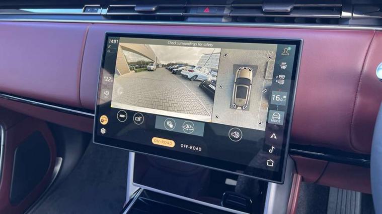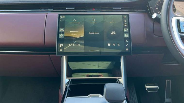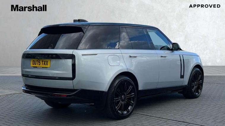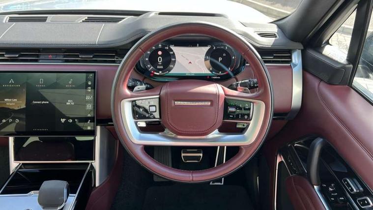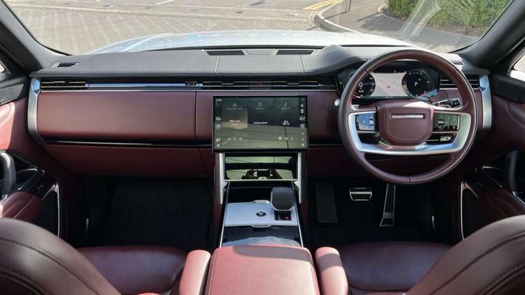 13.1" Touchscreen, 3D surround camera inc frwd traffic detection, vehicle clearance guidance, 3D view, clearsight ground view, manoevure light, 360 parking aid, wade sensing, Adaptive cruise control with steering assist, All Terrain Info Centre, All wheel steering, Blind spot assist, Bluetooth connectivity streaming, Driver monitoring and response with driver facing camera & driver distraction monitor, Eco mode, Electric power assisted steering (EPAS), Emergency call service, Front and rear parking aid, Head up Display, Interactive driver display, Lane keep assist, Park assist, Powered gesture tailgate/boot lid, Rear collision monitor, Rear traffic monitor, Remote, Traffic sign recognition with adaptive speed limiter, Wi-Fi Enabled with data plan, Wireless Apple CarPlay/Android Auto, Wireless device charging, 8 speed automatic transmission, Active damper technology system, Adaptive dynamics, Adaptive off-road cruise control, All Wheel Drive (AWD), Automatic access height, Terrain Response 2 Auto, Twin speed transfer box, Digital Audio Broadcast radio-DAB, Pivi pro including smart settings, Connected navigation pro, nuance speech, USB socket, Acoustic laminated windscreen, Animated directional indicators, Automatic headlights, Automatic levelling headlights, Centre high mounted stop light, Electric windows with one touch open/close and anti trap, Engine cover, Flush deployable exterior door handles, Front and rear recovery eyes, Front fog lights including cornering lamp, Headlamp power wash, Heated rear window, Heated washer jets, Illuminated aluminum treadplates with Range Rover script, LED tail lights, No badges, Power fold, auto-dimming, heated door mirrors with approach lights, Rain sensing windscreen wipers, Rear boot, Rear fog lights, Rear side wing doors, Side repeater indicators in mirror, Standard bonnet, Winter wiper park position, 3 seat bench in 2nd row, 30 Colours configurable cabin lighting with 4 lighting zones, Air quality sensor, Auto folding loadspace cover, Bright metal pedals, Cabin air purification pro, Customer configurable single point entry, Driver and passenger front seat armrests, Easy boot loading, Ebony Carpet, Front and rear cupholders, Front and rear grab handles, Front head restraints, Heated steering wheel, Hook in load space, Loadspace light, Luggage tie down in loadspace, Multifunction steering wheel, Rear centre armrest, Rear head restraints, Rear ISOFIX, Satin chrome gearshift paddles, Single front passenger seat, Soft close doors, Upper and lower glovebox, Online pack with data plan - Range Rover, 3x3 point rear seat belts, Anti-lock braking system (ABS), Brake hold function, Cornering brake control (CBC), Customer configurable autolock, DSC - Dynamic Stability Control, Electronic brake force distribution, Electronic parking brake, Electronic traction control, Emergency braking, Front airbags with passenger seat occupant detector, Front side airbags, Hill descent control, Hill launch assist, Low traction launch, Occupant protection assist, Power operated child locks, Roll stability control, Tyre pressure monitoring system (TPMS), Immobiliser, Intrusion sensor and alarm, Keyless entry, Locking wheel nuts, Remote central locking, Noble chrome controls,