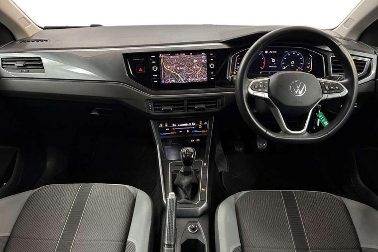 Adaptive cruise control without follow-to-stop and speed limiter, Bluetooth mobile phone interface, Digital Cockpit Pro with 10.25" Display, Driver alert system, Dynamic road sign display, Emergency call service, Power assisted speed sensitive steering, Preparation for We connect and We connect plus, Speedo and rev counter, electronic odometer, trip, service interval display and fuel gauge, Standard rear axle, Travel Assist - Lane keeping system and traffic jam assist, Travel assist including emergency assist, Trip computer, Warning signal and warning light for front and rear seatbelts not fastened, Washer fluid level indicator, Wireless app connect, Front wheel drive, Rear shock absorpion, Start-stop system with battery regeneration (recuperation - energy recovery during braking), DAB Digital radio, Diversity antenna for FM reception, Front and rear 6 speakers, Automatic dimming interior rear view mirror, Automatic headlights, Body colour door handles, Body coloured bumpers and radiator grille with chrome trims, Electric front windows, Front fog lights with static cornering function, Heat insulating darkened glass in side and rear windows, Heat insulating glass windscreen, LED separate daytime running lights with coming/leaving home function, Power folding adjustable/heated exterior mirrors and front passenger exterior mirror lowering function, Rain sensor, Rear electric windows, Rear fog light, Rear side wing doors, Rear windscreen washer and wiper with interval delay, Third brake light, 12V power socket in centre console, 2 USB-C ports in the front, 2 USB-C charging sockets on the center console in the rear, 3 rear head restraints, 60/40 split folding rear seat and rear seat bench not split, Air care climatronic air conditoning system with active combination filter and 2-zone temperature control, Ambient lighting, Ceramique headliner, Chrome plated radiator grille inserts, air vent surrounds and light switch surrounds, Door and side trim panel, Driver and front passenger seat height adjustment, Driver/passenger sunvisors with illuminated vanity mirrors, Front + rear carpet mats, Front centre armrest, Front footwell illumination, Front seat backrest storage pockets, Front sports comfort seats, Handbrake lever handle in leather, Isofix child seat preparation easy-fit (for two outer rear seats, and front passenger seat) compatible with I-size, Leather trimmed gear knob, LED interior light with switch off delay and dimmer, 2 reading lights front and rear, Luggage compartment cover, Luggage compartment floor, Luggage compartment lighting, Lumbar adjustment for front seats, Multifunction steering wheel, Single front passenger seat, Standard pedal cluster, IQ LED matrix headlights pack - Polo, Light and vision pack - Polo, 3 point height adj front seatbelts + pretensioners, 3x3 point rear seatbelts, ABS, Driver and front passenger airbag with front passenger airbag deactivation, Drivers and front passengers safety optimised head restraints, ESC (Electronic stability control) + EDL (Electronic Differntial lock) and ASR (Traction control), Extended and predictive pedestrian/ cyclist protection, Front curtain and side airbags with center airbag, Front disc brakes, Hill hold control, Manual child lock in rear doors, Rear drum brakes, Single tone horn, Tyre pressure loss indicator, Alarm with interior protection, Anti-theft alarm system with interior monitoring, backup horn, and towing protection, Anti-theft wheel bolts, Electronic engine immobiliser, Chrome applications on rotary light, mirror adjustment, window regulator switches, outlet with frame in black, Deep iron gloss decorative inserts in dash and front door panels, Low rolling resistance tyres,