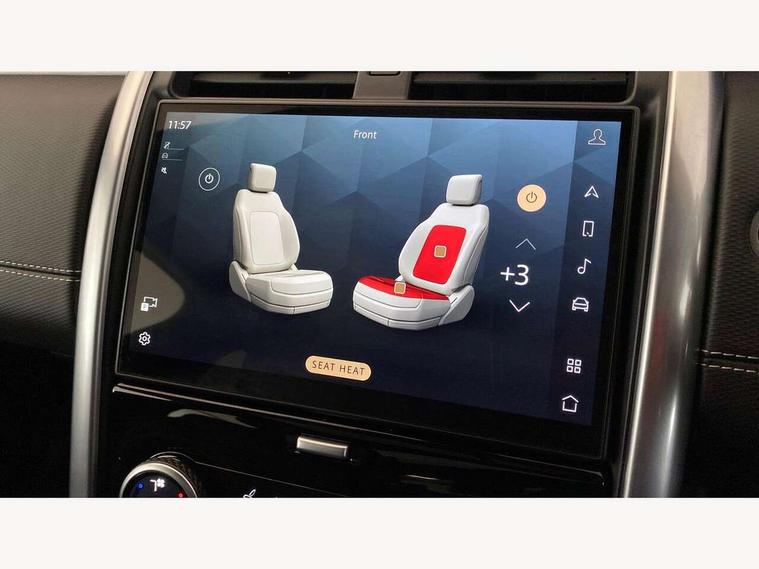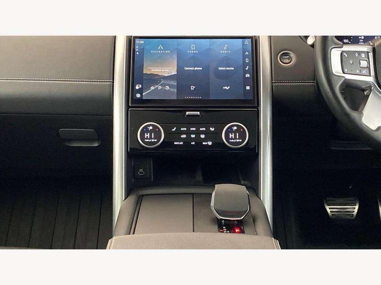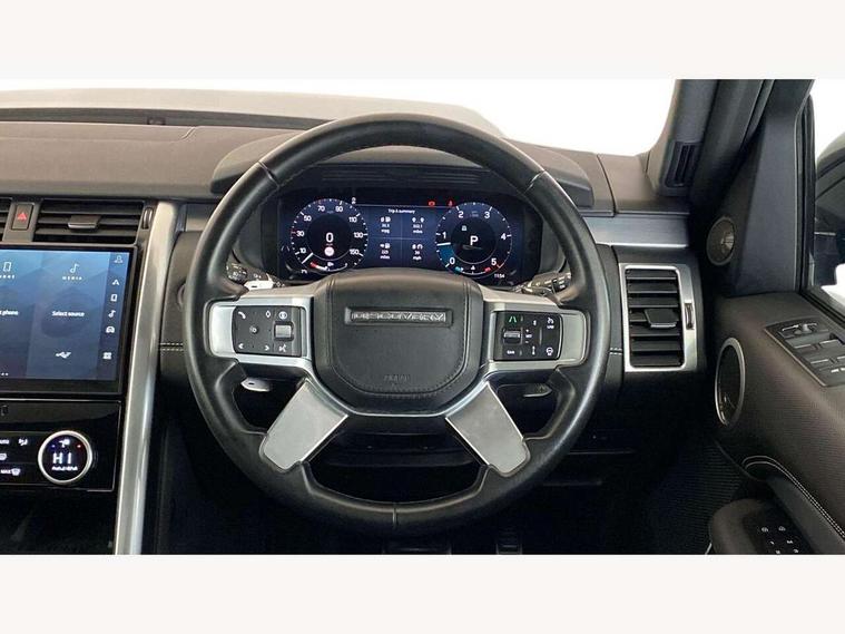 11.4" touchscreen, 3D surround camera, Adaptive cruise control, Android Auto, Apple car play, Blind spot assist, Driver condition monitor, Electric power assisted steering (EPAS), Emergency services call system, Front and rear parking aid, Interactive driver display, Lane keep assist, Power inner tailgate, Power tailgate/boot lid, Push button start, Rear collision monitor, Rear traffic monitor, Remote, Remote boot release, Service interval indicator, Speed proportional steering, Sportshift selector, Stop/start system, Traffic sign recognition with adaptive speed limiter, Trip computer, Wade Sensing, Adaptive dynamics, Dynamic stability control, Electronic air suspension, Front axle open differential, Digital Audio Broadcast radio-DAB, Dynamic volume control, Pivi pro connected, USB/aux input socket, Acoustic laminated windscreen, Animated directional indicators, Auto dimming interior rear view mirror, Automatic headlight levelling, Automatic headlights, Body colour bumpers, Body colour door handles, Centre high mounted stop light, D300 badge, Electric heated/power fold memory door mirrors with approach lights and auto dimming driver side, Electric windows with one touch open/close and anti-trap, Heated rear window, Heated windscreen, LED darkend tail lights, Matrix LED headlights with signature DRL, Narvik black Discovery script, Privacy glass, Puddle lights, Rain sensing windscreen wipers, Rear fog lights, Rear side wing doors, Rear wash/wipe, Trailer stability assist, Variable intermittent wiper, 12V power sockets, 12V USB charging socket in loadspace, 2 seat bench in 3rd row, 3 seat bench in 2nd row, 60/40 electric heated folding rear seats with manual slide and powered recline, centre headrest and armrest, Central hinged twin lidded storage, Configurable cabin lighting, Ebony morzine headlining, Electric adjustable steering column, First and second row door bins, Footwell lights, Front and rear 12V with front USB, Front passenger seat isofix location point, In-facia storage, Isofix child seat preparation for front passenger seat, Leather steering wheel, Loadspace cover, Loadspace Hook, Loadspace light, Lockable glovebox, Lower centre console storage, Luggage tie downs in loadspace, Multi function steering wheel, Overhead lighting console, Premium carpet mats, Rear ISOFIX, Shopping bag hook, Single front passenger seat, Storage glovebox, Sunvisors with illuminated vanity mirrors, Third row storage, Treadplates with metal inserts, Twin front cupholders with cover, USB with 12V socket in centre console, Black exterior pack - Discovery Dynamic SE/HSE, Online pack with data plan - Discovery, 3x3 point rear seatbelts, Anti-lock braking system (ABS), Brake pre-fill technology, Cornering brake control, Curtain airbags, Customer configurable autolock, Driver and passenger airbags, EBD - Electronic brakeforce distribution, Electronic traction control, Emergency brake assist, Emergency braking, ESP, Front side airbags, Gradient acceleration control, Hill descent control, Hill launch assist, Power operated child locks, Rear airbags, Roll stability control, Seat belt reminder, Torque vectoring brake, Tyre pressure monitoring system, Immobiliser, Intrusion sensor, Keyless entry, Locking wheel nuts, Remote central locking, All terrain tyres,