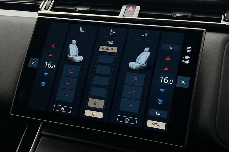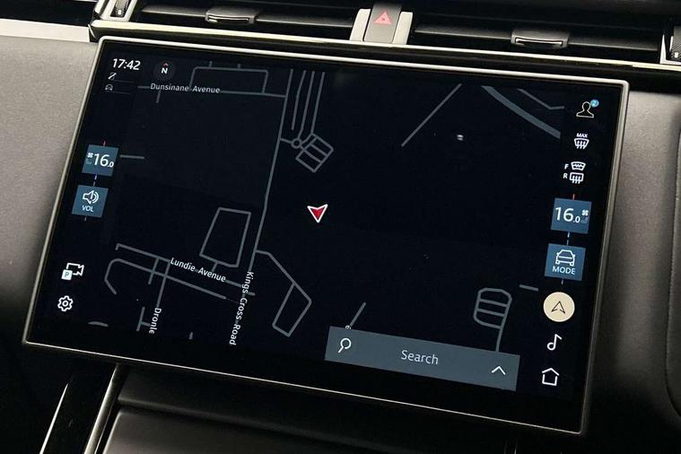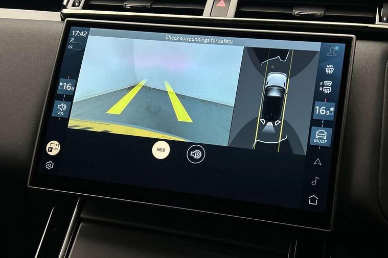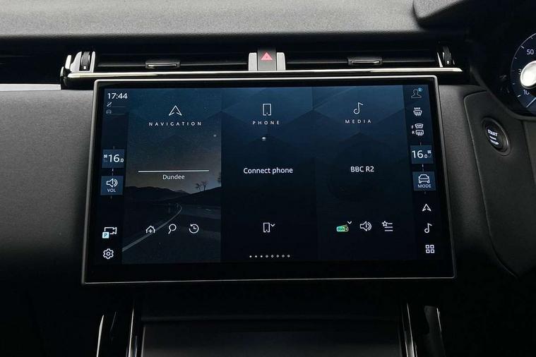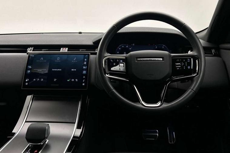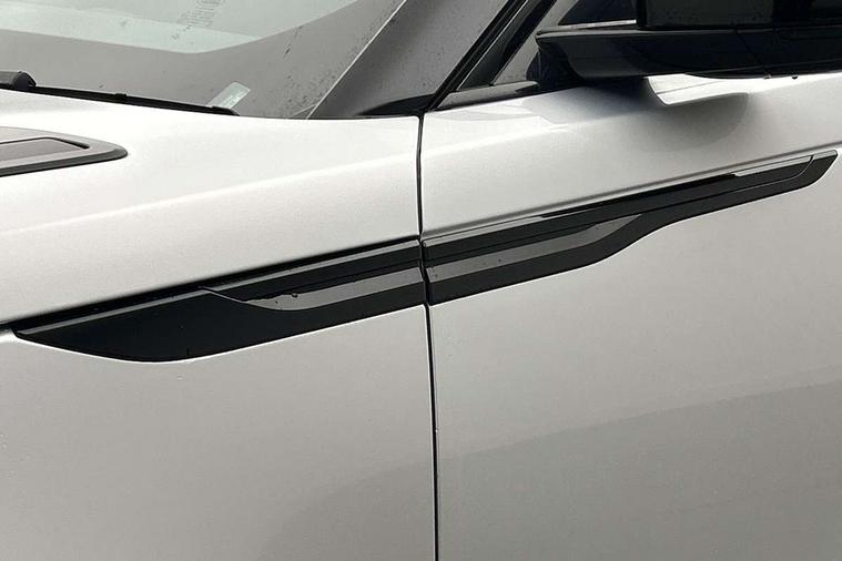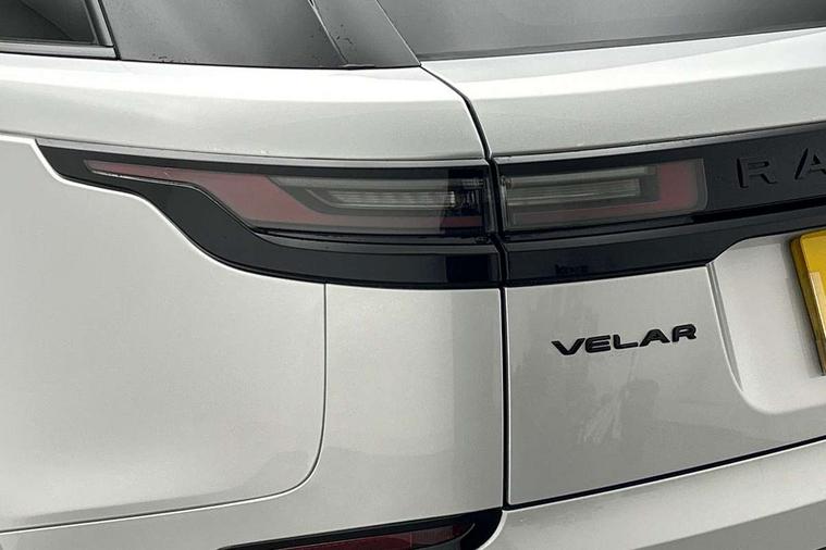 Android Auto, Apple CarPlay, Blind spot assist, Bluetooth connectivity, Brake pad wear indicator warning light, Driver condition monitor, eCall emergency call system, Front and rear parking aid, InControl remote, Land Rover InControl apps, Lane keep assist, Pivi pro with connected navigation, Rear traffic monitor, Service indicator, Speed proportional electronic power assisted steering (EPAS), Traffic sign recognition with adaptive speed limiter, Trip computer, Voice control system, Wireless device charging, 8 speed automatic transmission, All terrain progress control, Coil suspension system, Open differential with torque vectoring by braking, Single speed transfer box, DAB radio, Steering wheel mounted controls, 3rd brake light, Acoustic laminated windscreen, Auto dimming interior rear view mirror, Auto high beam assist, Automatic headlamp levelling, Automatic headlights, Body coloured bumpers, Boot protection plate, Electric windows with one touch open/close and anti trap, Flush deployable exterior door handles, Follow me home headlights, Heated rear window with timer, Heated washer jets, Heated windscreen, LED headlights with signature DRL, Metal front tread plates, Metal load space scuff plates, Power fold, auto-dimming, heated door mirrors with memory and approach lights, Rain sensor windscreen wipers, Rear animated directional indicators, Rear fog lights, Rear side wing doors, Rear wash/wipe, Tailgate/boot lid spoiler, Trailer stability assist, Velar badge, 14 way electrically adjustable front seats with driver's memory function, 3 seat bench in 2nd row, Ambient lighting, Bright metal pedals, Driver/passenger sunvisors with illuminated vanity mirrors, Ebony morzine headlining, Electrically adjustable steering column, Heated steering wheel, Isofix system on outer rear seats, Loadspace cover, Overhead lighting console, Overhead stowage for sunglasses, Passive front headrests, Rear air vents, Rear centre headrest, Single front passenger seat, Twin front cupholders, Twin sliding front centre armrest, Online pack with data plan - Velar, Power socket pack 2 - Velar, 355mm Front and 325mm Rear brakes, 3x3 point rear seatbelts, Anti-lock braking system (ABS), Cornering brake control, Curtain airbags, Customer configurable autolock, Door side intrusion beams, Driver airbag, DSC - Dynamic Stability Control, Electronic brake force distribution, Electronic parking brake, Electronic traction control, Emergency braking, Front and rear seatbelt reminder, Hill descent control, Hill launch assist, Low traction launch, Passenger airbag, Power operated child locks, Rear airbags, Roll stability control, Side airbags, Tyre pressure monitoring system (TPMS), Global lock and unlock switch on driver door, Immobiliser, Intrusion sensor, Keyless entry, Lock only switch on front passenger door, Locking wheel nuts, Perimetric alarm, Remote central locking, All season tyres,