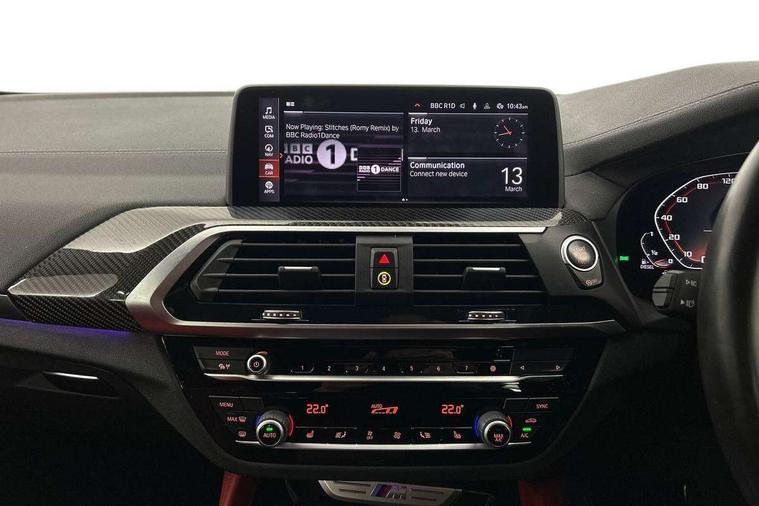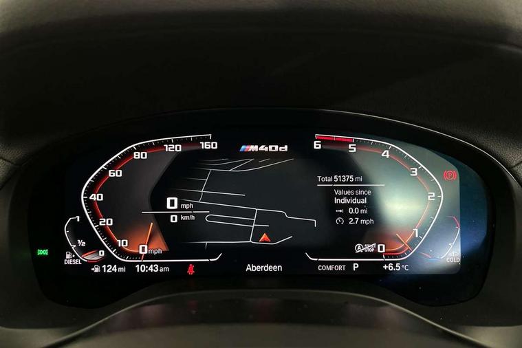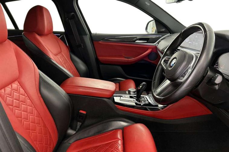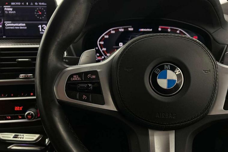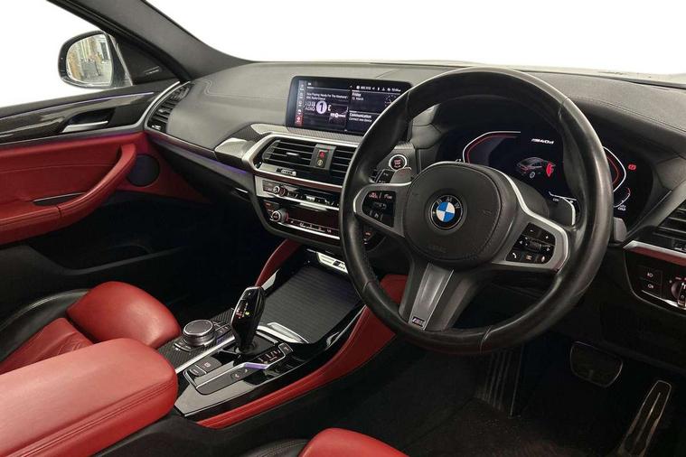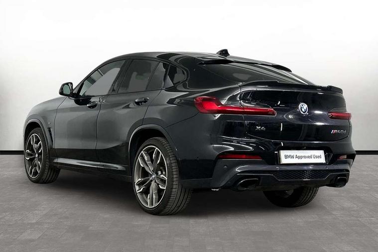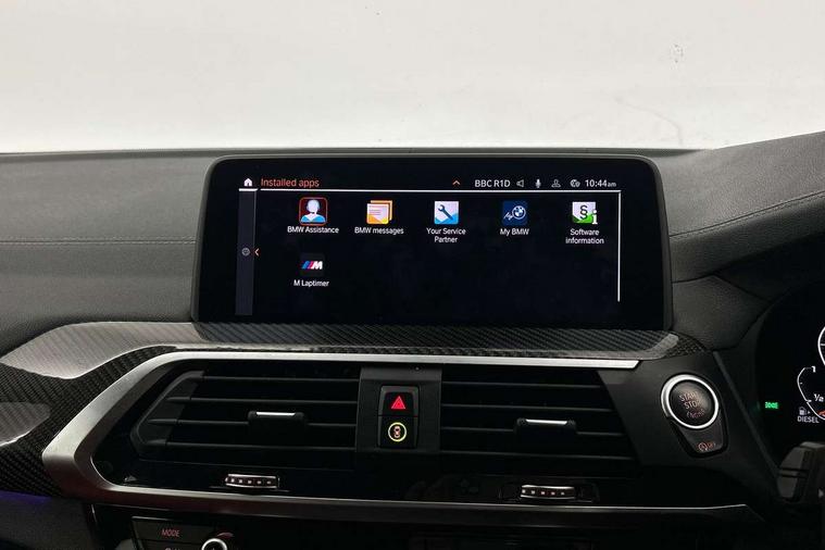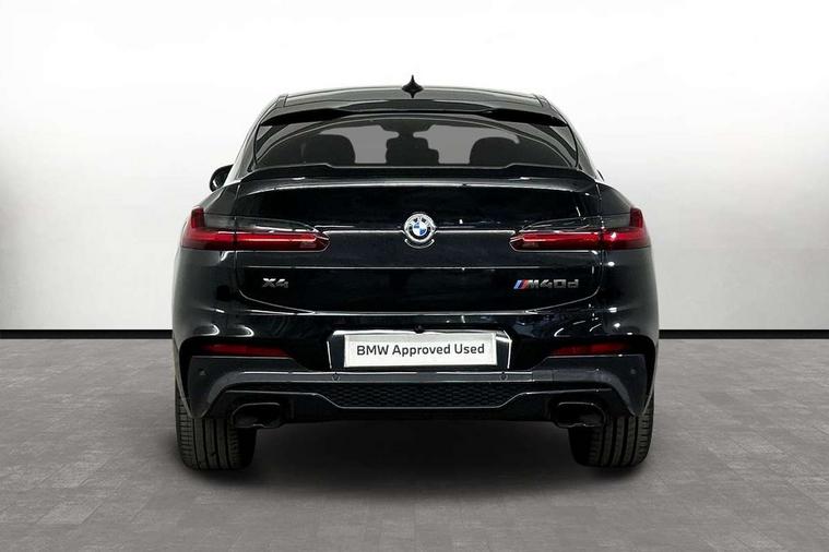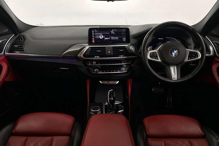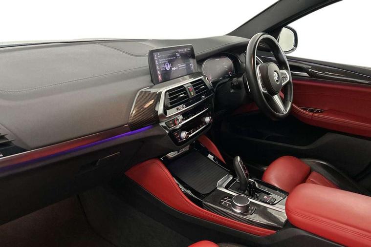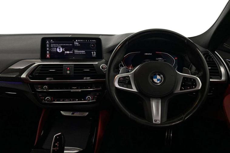 Active Guard incl speed limiting and lane departure functions with auto steering, and front collision warning with brake intervention, Attentiveness assist, Auto start-stop, Automatic tailgate operation, BMW Live Cockpit Professional with 12.3" instrument display + 12.3" high resolution centre display nav function and Intelligent Voice Assistant, BMW Online services, BMW remote services, BMW Teleservices, Brake pad wear indicator in front and rear, Check Control warning system for monitoring of lights and door/luggage compartment open warning, Condition based service, Electronic Power Steering (EPS), Exterior temperature gauge, iDrive Controller with 8 favourite buttons, Instrument cluster with speedometer with mph readout, tachometer, fuel gauge and oil temperature gauge, Lights on warning by audio warning signal when ignition is switched off, On board computer, Optimum shift indicator, Personal Profile, Run flat indicator, Semi-Digital Cockpit, Service interval indicator, Trip computer, Diesel particulate filter, Drive performance control with ECO PRO comfort + sport mode, Five link rear suspension, Larger capacity fuel tank, M Sport differential, Performance Control, Sport automatic transmission, BMW professional radio/CD/MP3, DAB Digital radio, Acoustic glass, Automatically dimming electrochromatic rear view mirror, Black finish on B pillars, Body colour door handles, Body colour roof mouldings, Body coloured bumpers, Cerium grey air breather, Cerium grey air inlets, Cerium grey exterior mirror caps, Cerium grey frame and kidney grille with high gloss black vertical slats, Direction indicator side lights integrated exterior mirrors, Direction indicator, side repeaters, integrated in exterior mirrors, Dynamic brake lights, Exterior mirrors - electrically folding with anti-dazzle, Fingertip control / anti-trap function on electric window, Front and rear bumper system, Front and rear electric windows, Green tinted heat insulating glass, Heated windscreen washer jets, High gloss black door sill finishers, Interior rear view electrochromatic mirror with automatic anti dazzle function, LED daytime running lights, LED fog lights, LED High level third brake light, LED Indicators, LED tail lights, Lightweight engineering, M aerodynamic bodystyling, M designation side exterior badges, M Exhaust tailpipes - Quad, round, split left and right with high gloss black finisher 90mm, M sport X frozen grey contrast design elements, Model designation, Rain sensor including auto headlights activation, Satin aluminium exterior trim, Shark fin antenna, Twin Trapezoidal tailpipes, Visible VIN plate, Welcome light carpet, Windscreen wipers with adjustable interval, 12V Accessory socket in centre console, 3 zone automatic air conditioning, Ambient lighting, Anthracite headlining, Bottle holders integrated into door, Cupholders in centre console, Electric seat adjustment with memory, Front and rear bottle holders integrated into door trim storage compartments, Front and rear door armrests, Front and rear side armrests integrated into door trim, Front centre armrest with storage compartment, Front cupholders x 2, Front sports seats, Front/rear courtesy lights with soft on/off dimming, Front/rear reading lights, Gearshift paddles on steering wheel, Height adjustable front/rear head restraints, Interior lighting - front centre over interior mirror with soft light, rear centre and front and rear footwell lighting, Leather gear knob, Luggage compartment lighting, M Sport multifunction leather steering wheel, Reach + rake adjustable steering column, Rear centre armrest with 2 cupholders, Removable rear parcel shelf, Standard seat for driver and passenger with manual adjustment, Storage compartment in rear centre console, front and rear door trims and under luggage compartment, Storage pockets - front doors, Sunvisors with vanity mirrors and ticket pocket, Three rear headrests, Through loading system with 40/20/40 split folding rear seat, Toolkit located in luggage compartment, Connected Package Professional - X4, Media pack - Business - X4, Visibility pack - X4, 3 rear seatbelts, ABS/EBD, ADB - Automatic Differential Brake, Automatic door lock when driving away, Automatic Stability Control (ASC), Battery safety cut-off, BMW emergency call, Brake drying, Brake energy regeneration, Braking pre-tensioning, Child proof locking system in rear door, Cornering brake control (CBC), Crash Sensor - activation of central locking release, hazard warning light and interior lighting, Deactivation of fuel pump in the event of a crash, Driver/front passenger airbag, Driver/front passenger side airbags, DSC - Dynamic Stability Control, Dynamic brake control, Dynamic Traction Control - DTC, Electromechanical parking brake, Front and rear head airbags, Front and rear pre-tensioning and force limiting seatbelts, Front passenger airbag deactivation, Front seat belts warning, Hill descent control, Hill start assist, M Sport braking system, Side impact protection, Twin horns, Tyre pressure monitoring system, Ventilated front and rear disc brakes, Warning triangle and first aid kit, Central locking switch for all doors, fuel filler cap and luggage compartment, Incorrect fuel protection system, Remote control including two integrated key - one button for open/close all lockable content, windows and separate button for open luggage compartment, Remote control Thatcham category 1 alarm, Start/stop button with comfort go keyless engine start and auto start stop deactivation button, Sensatec dashboard, Reduced rolling resistance tyres,