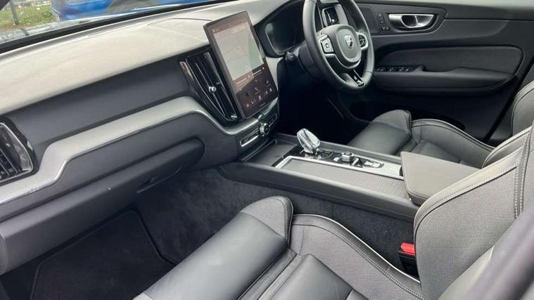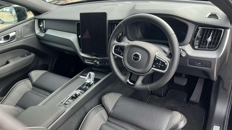 11.2" centre console touch screen, 12.3" Progressive Driver Display, 360 degree surround view parking camera with side proximity sensors, Adaptive cruise control, Adjustable steering wheel force, Android auto (Wired), Apple carplay (wired), Bluetooth handsfree system, Driver alert control with lane keeping aid, Emergency services call system, Front and rear park assist, Google Automotive Services, Intelligent speed assistance, Oncoming Lane Mitigation, PAS, Power operated tailgate with handsfree opening and closing, Service interval indicator, Speed limiter, Speed sensitive steering, Trip computer, Volvo cars services with app, Volvo on call with App, Wireless/Inductive Mobile Phone Charging, 8 speed automatic transmission with start/stop + manual change functions, DAB Digital radio, Premium Sound by Harman Kardon, dirac unison, dolby pro logic II surround sound, 13 speakers/600W output and fresh air subwoofer, Steering wheel remote infotainment controls, Adaptive brake lights with high level LED brake lights, Auto dimming interior + exterior mirrors, Automatic headlight levelling system, Automatic LED Headlights + Active high beam incorporating daytime running lights, Dark tinted windows for rear side windows and cargo area, Electric adjustable/heated/auto power folding door mirrors, Electric front+rear windows, Front aluminium tread plates, Heated front windscreen, High gloss black door mirrors and window surround, High gloss black front and rear bumper decoratives, High gloss black front grille, Surround, Strikethrough and Ironmark, High gloss black rear model, engine and volvo logo badges, Home safe and approach lighting, Integrated roof rails in high gloss black, Puddle lights, Rain sensor with automatic windscreen wiper activation, Rear side wing doors, Rear wiper, Roof antenna, Roof spoiler, Tinted windscreen, Visible VIN plate, 12V socket in front tunnel console and luggage compartment, 3 seat bench in 2nd row, 3 Spoke tailored steering wheel with chrome trim, 4 Zone electronic climate control, A-pillar parking ticket holder, Air purifier particulate matter (PM) 2.5 filter, B Pillar ventilation, Bright metal luggage scuff plate, Centre console cupholders and storage, Charcoal floor mats, Contour sports seats with nappa soft leather/textile upholstery, Front and rear courtesy lights, Front and rear door pocket illumination, Front cupholder illumination, Front footwell illumination, Front reading lights, Front seat cushion extensions, Glovebox compartment with illumination, Head restraints for all seats, Heated front seats, Heated steering wheel, Height/reach adjustable steering column, Illuminated luggage compartment, Illuminated vanity mirrors + ticket holder, Inner door release handle illumination, ISOFIX attachment on outer rear seats, Load cover, Load protection net, Multi directional lumbar support, Power driver seat with memory + exterior mirrors memory, Power height adjustable passenger seat, Power passenger seat with memory, Rear armrest with cupholder, Rear footwell and front and rear side step illumination, Rear reading lights, Rear seat concealed storage, Single front passenger seat, Tailgate illumination and ambient door lighting, Underfloor stowage compartment, Versatile split folding rear seat - 60/40, Driver assist pack without Adaptive cruise control - XC60, 5 three point seatbelts, City safety with steering support with Pedestrian + cyclist + front collision warning with full auto brake and rear auto brake, Drivers knee airbag, Dual stage driver/passenger airbags, Electronic parking brake with auto hold, First aid kit, Front seats SIPS airbags, Hill descent control - Off-road drive mode, Hill start assist, IC (Inflatable Curtains) - Full Length, Passenger airbag cut-off device, Power child locks on rear doors, Road sign information display, Run off Road Mitigation, Run off Road Protection, Seatbelt reminder and pretensioners, SIPS (Side Impact Protection System), Slippery road and hazard light alert, Stability and Traction Control with Spin control, Engine Drag Control and Corner Traction Control, Tyre pressure monitoring system, Vehicle deceleration control with Anti-lock Brake System, Electronic Brake Distribution and Emergency Brake Assist, Warning triangle, WHIPS whiplash protection system - front, Anti-theft alarm including immobiliser/volume sensor + level sensor, Key integrated remote control central locking + fuel flap with deadlocking system and auto open/close power windows, Keyless Drive (includes Keyless Entry and Keyless Start), Locking wheel nuts, Private locking for tailgate, 21" 5 Double spoke high gloss black alloy wheels, Summer tyres,