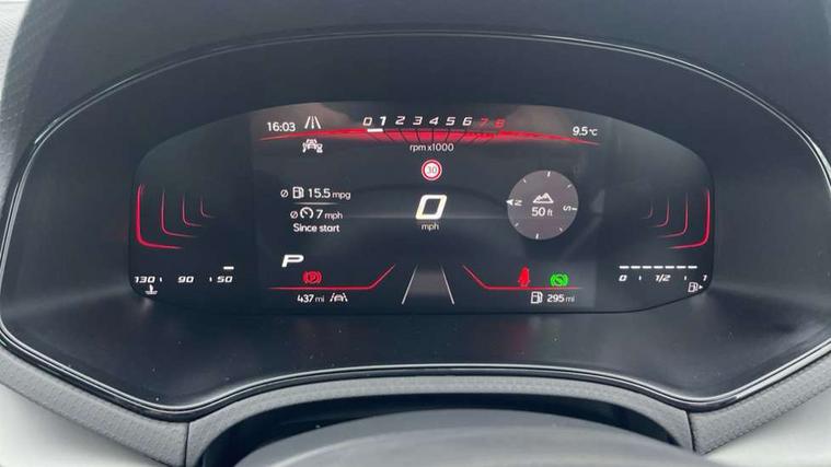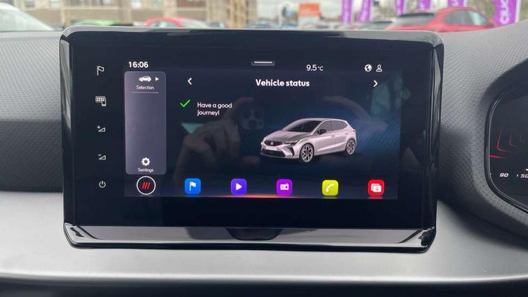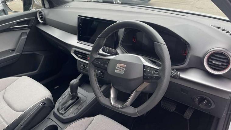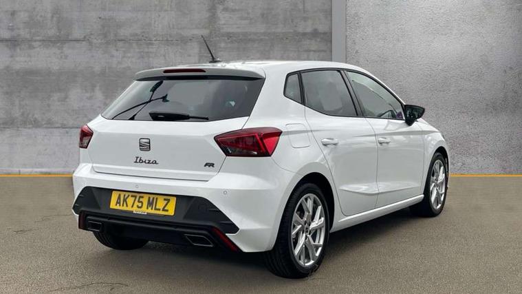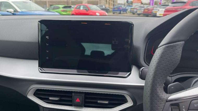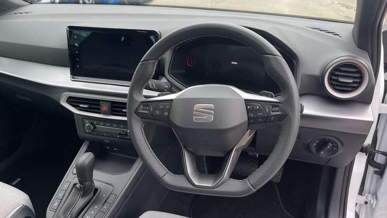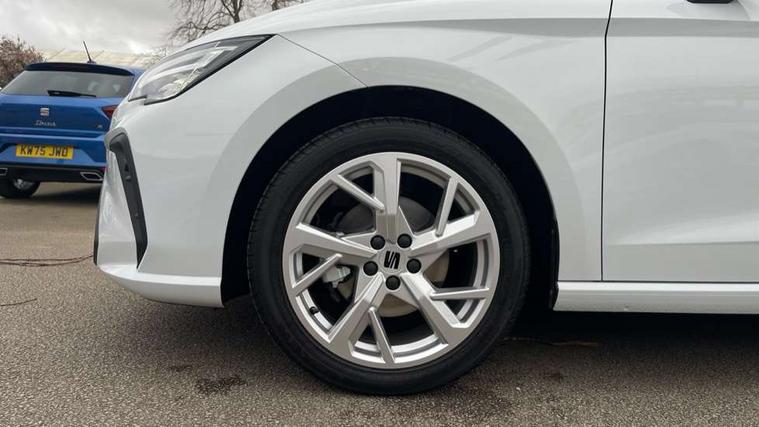 8" Digital cockpit, 9.2" touchscreen navigation system with type C USB socket, Voice control and DAB/AM/FM radio, Bluetooth audio streaming with handsfree system, Cruise control and speed limiter, E-call, Front parking sensors, Full Link Smartphone integration with Mirror Link, Apple Car Play, Google Android Auto with USB Type C cable for Apple and Android devices, PAS, Rear view camera, SEAT Drive profile - Four different models normal-sport-eco-individual, steering response, throttle response and gear shifts mode, Start/stop system, Sport suspension, Body colour mirror caps, Body coloured bumpers, Body coloured door handles, Dark tinted rear windows, Electric front and rear windows, Electrically adjustable, heated, folding exterior mirrors, FR styled rear diffuser, Front foglights with cornering functionality, Interior auto dimming rear view mirror, LED 3rd brake light, LED daytime running lights, LED license plate light, LED taillights, Rear fog lights, Rear side wing doors, Rear wash/wipe, SEAT Design Full LED automatic headlamps with signature dynamic headlight range control and coming and leaving home feature, 3 seat bench in 2nd row, 60/40 split and folding rear seats, Black headlining and chrome detailing, Cloth upholstery, Dual zone climate control with combination filter, Front integrated headrests, Front reading lights, Heated front seats, Height adjustable front seats, Height adjustable rear headrests, Interior ambient lighting in footwell, Isofix, Nappa leather multifunction flat bottomed sports steering wheel, Red coloured interior air vents with ambient lighting, Single front passenger seat, Sports bucket seats, Storage pockets on back of front seats, Sunvisors with mirrors and card holder on drivers side, Safe and Driving pack (S) - Ibiza, ABS, Child locks on rear doors, Driver and passenger airbags, Front driver and passenger side airbags with curtain airbag and front passenger airbag deactivation, Hill hold control, Three point seat belts on all rear seats, Tyre pressure monitoring system, Anti-theft alarm with interior monitoring, backup horn, and towing protection, KESSY Keyless entry and go with Safelock, Locking wheel bolts, 17" Dynamic alloy wheels in Nuclear grey,