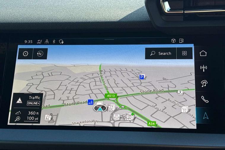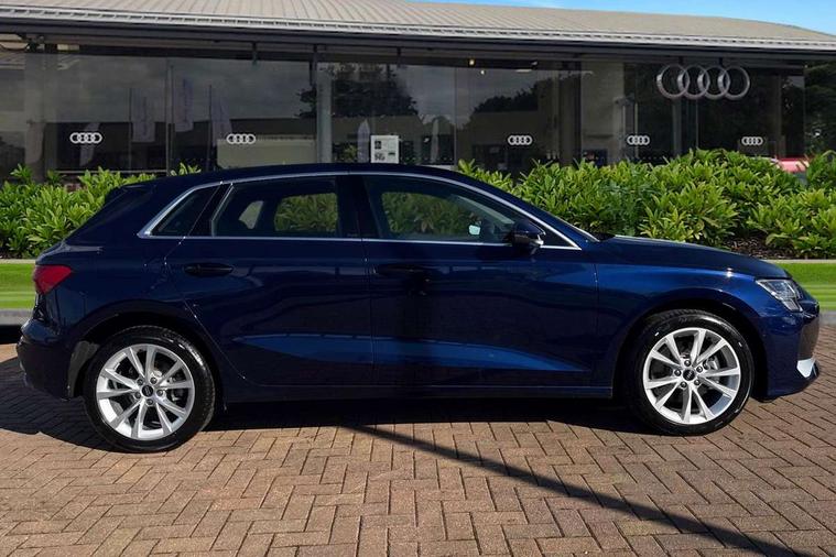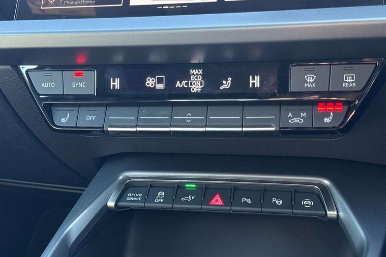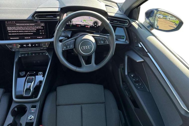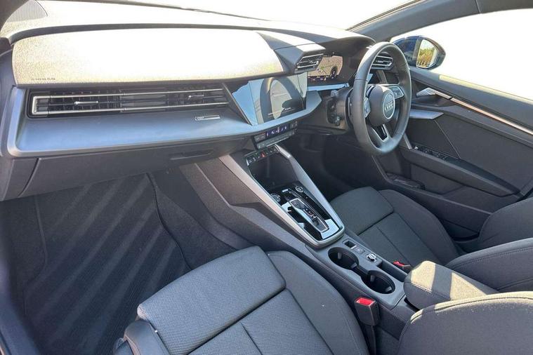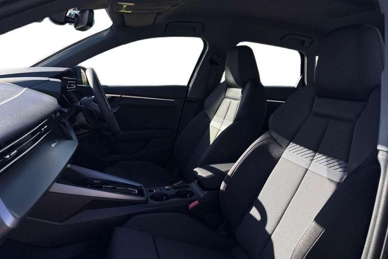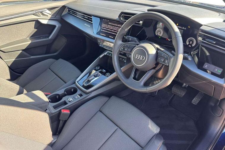 Adjustable speed limiter, Audi drive select, Audi smartphone interface with app store includes wireless Apple carplay, Android auto and Amazon alexa integration, Audi virtual cockpit plus - 12.3" full HD resolution dynamic digital instrument cluster, Automatic start/stop system with recuperation, Bluetooth interface, Camera based traffic sign recognition, Collision avoidance assistant, Cruise control, Distraction and Fatigue warning, e-Call (emergency call), Electromechanical power speed sensitive steering, Emergency assist, Lane departure warning system, MMI Navigation Plus with high resolution 10.1" colour touch screen display, Park Assist with parking system Plus, Service indicator, Trip computer, Voice control system with natural language interaction, 3 pin 10 amp domestic charging cable, CCS socket for DC charging, Charging cable for public charging, mode 3 (type 2), 32 A, Compact charging system, Industrial connector CEE 32 A, 230 V, length 1.6 m, Standard suspension, Type 2 socket for AC charging, Audi Phonebox light with wireless charging, Audi sound system - 10 loudspeakers including centre loudspeaker and subwoofer, DAB Digital radio, USB ports with charging function in the rear, 3rd brake light, Acoustic glass windscreen, Aluminium window trim, Auto dimming frameless rear view mirror, Body colour exterior mirrors, Body colour roof spoiler, Dipped beam, main beam, position light and turning light, Electrically adjustable/heated/folding/auto dimming door mirrors with integrated LED indications + kerb view function for passenger side, Exterior model badging, Front electric windows, Front radiator grill in high gloss dark chrome, Front side air inlets in grained matt black with silver frame, Heat insulating glass windscreen, LED daytime running lights, LED headlights and halogen rear lights, Light and rain sensors, Rear diffuser and grill in grained matt black with silver frame, Rear electric windows, Rear side wing doors, Rear window, rear door windows and rear side windows in clear glass, Rear wiper, 12V socket and storage compartment in front centre console, 3 seat bench in 2nd row, 3 spoke leather multifunction steering wheel with gear shift paddles, 3-zone deluxe automatic air conditioning, 4 way electrically adjustable lumbar support for driver and front passenger, 60/40 split folding rear seat bench, Black front and rear floor mats, Convenience auxiliary air conditioning, Front and rear headrests, Front centre armrest, Front door sill trims with aluminium inlay, Heated front seats, Height and reach adjustable steering wheel, Manual boot compartment lid, Manually adjustable front seats, Routine cloth upholstery with front sports seats, Seat side bolsters, Single front passenger seat, Steel grey cloth headlining, Aluminium interior elements pack - A3, LED interior lighting pack -A3, 3x3 point rear seat belts, Acoustic vehicle alerting system, Driver and front passenger airbag with passenger airbag deactivation, Electronic Stabilisation Control (ESC) including ABS, ASR and EDL, First aid kit with warning triangle and 2 safety vests, Front side airbags with head airbags and interaction airbag, Hill hold assist, Pre-sense front with pedestrian and cyclist detection, Seatbelt monitoring, Tyre pressure loss indicator, Anti theft alarm, Anti-theft wheel bolts, Electronically operated child locks, Immobiliser, Remote central locking with safelock, Black dashboard, Inlays in volcano grey fine paint finish, Tyre repair kit,