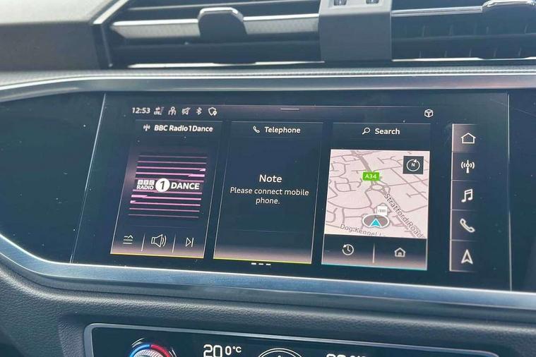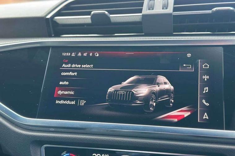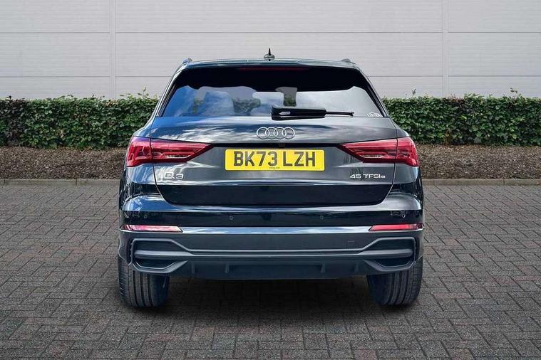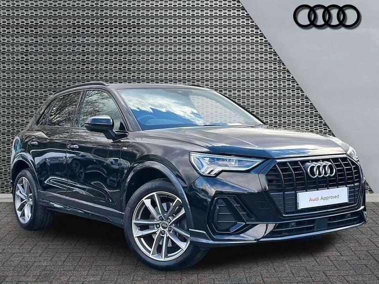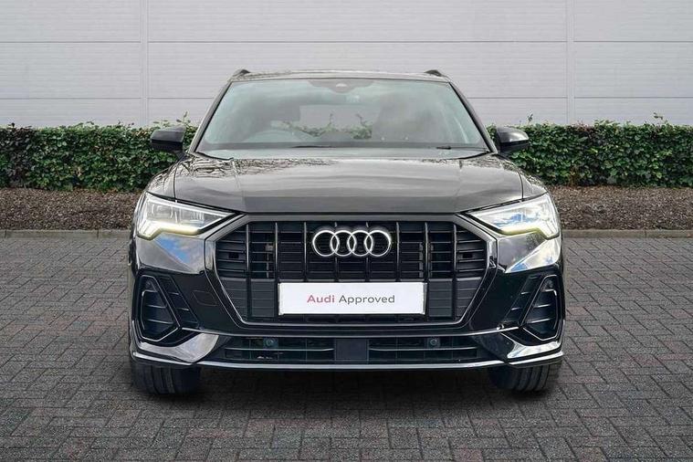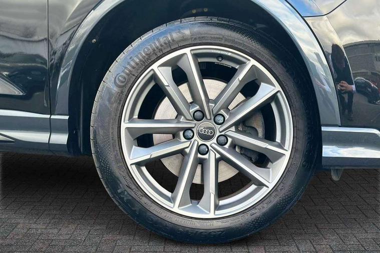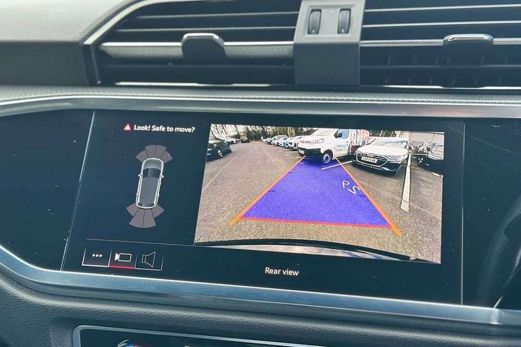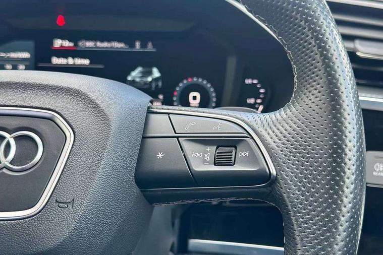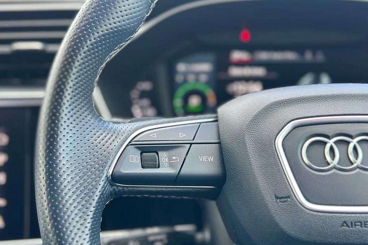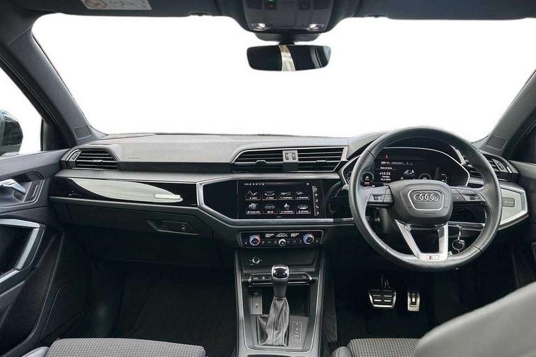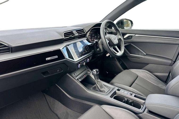 Amazon alexa Integration, Audi drive select, Audi lane departure warning, Audi smartphone interface includes wireless Apple carplay/Android Auto, Audi Virtual Cockpit - 10.25" display, Bluetooth interface, Camera based traffic sign recognition, Legal emergency call, MMI Navigation Plus with high resolution 10.1 inch touchscreen colour display, Power operated tailgate, Progressive steering, Service interval indicator, Start stop system with recuperation, Voice control system with natural language interaction, 3 pin 10 amp domestic charging cable, 3.6 kw On-board charger, Type 2 mode 3 32 amp charging cable, Type 2 socket for AC charging, 2 USB-C ports with charge and data functions, 6 passive loudspeakers, DAB digital radio module, Acoustic windscreen, Auto dimming frameless rear view mirror, Black roof rails, Electrically folding, adjustable and heated door mirrors with integrated LED side indicators and kerb view function for passenger side, Front and rear electric windows, Front fog lights, Grille vertical bars in aluminium silver/Matt, High gloss black finish B and C pillars, LED Dynamic rear indicators, LED headlights with LED daytime running lights, LED rear lights, LED third brake light, Privacy glass dark tinted rear and rear-side windows (from B-pillar backwards), Rain and light sensors, Rear diffuser grille in grained matt black, Rear diffuser strip in matt anthracite black, Rear side wing doors, Rear wiper, S line bumpers in contrasting Manhattan grey, Variable front intermittent wipers, 12V socket in rear centre console, 3 seat bench in 2nd row, 40:20:40 folding with manual adjustment for 60:40 forwards/backwards position and backrest angle, Adjustable rear seat bench/backrest with centre armrest and cupholder, Black cloth headlining, Dual zone electronic climate control, Front and rear black floor mats with contrast stitching in rock grey, Front and rear headrests, Front and rear roof module including reading lights, Front centre armrest, Glove compartment lighting, Height and reach adjustable steering wheel, Illuminated door sill trims with S logo, ISOFIX child seat mounting for front passenger with airbag deactivation and outer rear seat including top tether attachment point for outer rear seats, Luggage compartment light, Manual front seats with height adjustment, Perforated leather gearknob, Single front passenger seat, Stainless steel luggage compartment sill finisher, Stainless steel pedals, Tool kit, Ambient lighting pack - Q3, Black styling pack - Q3, Non smoking pack - Q3, 3x3 point rear seatbelts, 6 airbags - Driver, front passenger, curtain and side windows, Audi pre-sense front with pedestrain and cyclist recognition, Electrically operated child locks on rear doors, Electromechanical parking brake, Electronic stabilisation control including ABS, ASR and EDL, Front seatbelt reminder, Hill descent control, Hill hold assist, Pre sense basic, Seatbelt monitoring, Tyre pressure warning, Warning triangle and first aid kit, Anti theft alarm, Anti theft wheel bolts, Immobiliser, Remote central locking, Aluminium look interior elements, Detail dashboard around MMI touch colour display in glass look, black with surround in aluminium look, Leatherette door armrest, Piano black inlay, 19" 5 twin arm design diamond cut audi sport alloy wheels in matt grey look, Tyre repair kit,