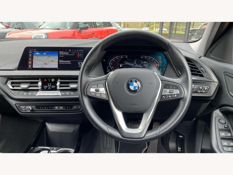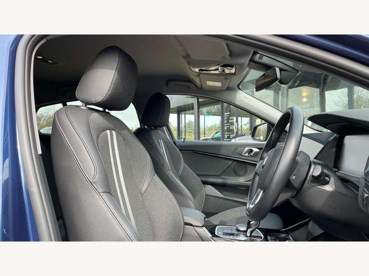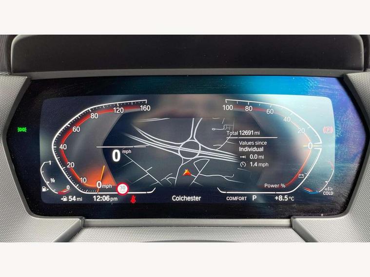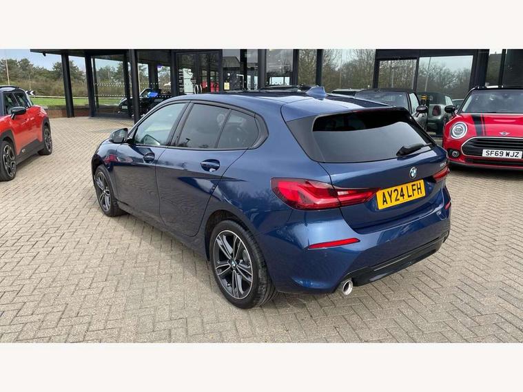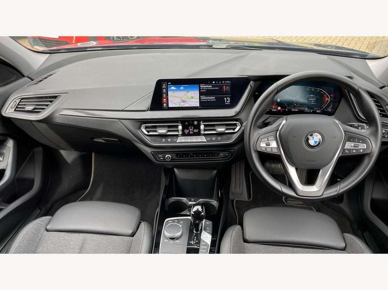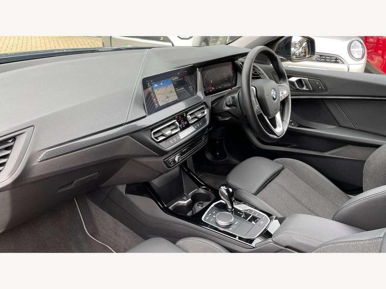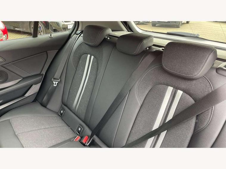 Active guard plus, Attentiveness assist, BMW ConnectedDrive online services, BMW Teleservices, Check Control warning system for monitoring of lights and door/luggage compartment open warning, Eco pro mode, Electric power steering with Servotronic steering optimised at all speed ranges, Front axle single joint with specific axle kinematics to minimise drive influences on steering + provide increased rigidity agile driving behaviour, Integrated owners handbook, Oil sensor for level and grade, On board computer, Optimum shift indicator, Personal Profile, Pull away assistant, Rigidly mounted rear subframe - Multi link construction with separate spring / damper configuration and excellent driving characteristics, Speed limit Info including no-overtaking indicator, Aluminium lightweight construction, Anti roll bar front and rear, Balancer shaft, Double VANOS twin scroll turbocharging system, Drive Performance Control, Electronic differential lock, High precision injection, Petrol Particulate Filter, Suspension with twin tube gas filled shock absorbers with degressive characteristic curve, VALVETRONIC engine management, DAB Digital radio, Auto dimming rear view mirror, Automatic windscreen wipers and automatic headlight, Body colour door handles, Body colour mirror caps, Body colour roof trims, Chrome exhaust twin tailpipes round 90mm in left, Direction indicator side lights in exterior mirrors, Electrically adjustable exterior mirror with mirror adjustment switch on drivers armrest and aspheric on driver side, convex on passenger side, Fading support, Follow me home headlights, Front and rear bumper system with replaceable deformation elements, Front and rear electric windows with open and close fingertip control, anti trap facility and comfort closing, Front bumper in Body colour with exclusive Sport air inlets finished in High gloss Black, Front door sill finishers in black plastic with BMW designation in metallic look, Green tinted heat protection glazing, High gloss shadowline window frame, Recess cover mirror frames and B/C pillar embelisher trim, High level third brake light, Integrated front windscreen with washer jets, Kidney grille in chrome frame with highgloss black struts, LED daytime running lights, LED eyebrow turn indicators, LED front fog lights, Lightweight engineering, Manual headlight beam throw control, Manual headlight levelling, Matt black air guide grilles, Matt black wheel arch trim, Model designation on electric bootlid, Nearside reverse light in rear light cluster, Preparation for high beam assistant, Rear bumper in Body colour with exclusive Sport design elements finished in High gloss Black, Rear fog lights, Rear side wing doors, Rear window wiper, Shark fin antenna, Trailer stabilisation logic, Visible VIN plate, Welcome lighting, 12V power socket in front centre console with blanking plug, 3 rear seat head restraints, 3 seat bench in 2nd row, 3 spoke sports leather steering wheel in black leather with black stitching and decorative finisher in pearl chrome, Black boot net with lashing eyes, Cargo function on 2nd seat row, Child seat ISOFIX attachment for two outer rear seats and front passenger seat with anchorage points, Conditioned based service, Driver and front passenger backrest net on rear, Driver side folding compartment in instrument panel, Folding rear clothes hook, Four grab handles integrated in roof lining, Front and rear door pockets with bottle holders, Front and rear side armrest integrated into door trim, Front armrest, Front sports seats, Glove compartment, Height adjustable front head restraints, Luggage compartment for bag hooks on left and right, foldable luggage compartment liner and four lashing eyelets, Manual adjust steering wheel, Multi-function controls for steering wheel, Single front passenger seat, Storage compartment in centre console, Storage compartment in luggage compartment, Stowage of the parcel shelf in luggage compartment trim, Sun visors with vanity mirrors and insert tab, Two front centre console cupholders, Two zone automatic air conditioning, Type C two USB ports in rear centre console, Velour floor mats, BMW live cockpit professional pack- 1 Series, Connected pack professional - 1 Series, Interior lights pack - 1 Series, 2 tone horn, 3 point seatbelts on all seats, front pyrotechnic belt tensioners, stopper and belt force limiters, rear coded belt buckles, Airbags - Front driver/passenger, front and rear curtain head protection, front side, manual deactivation of front passenger airbag, Anti lock braking system (ABS) with brake assist, BMW emergency call, Brake drying, Braking readiness, Child proof locking system in rear door, Comfort modes, Cornering brake control, Crash sensor activating of airbags, Unlocking doors, hazard warning lights, fuel cut off, interior lighting+activation of safety battery terminal clamp, Driver and front passenger seat belt security check, Dynamic stability control + (DSC+), Dynamic Traction Control - DTC, Electrically operated hand brake including automatic hold function, Front and rear disc brakes, Seatbelt warning, Side impact protection, Tyre pressure monitoring system, Warning triangle and first aid kit, Central locking switch for all doors, fuel filler cap and luggage compartment, Deadlocking function system to all doors, Drive away locking system on all doors and luggage compartment with de-activated in iDrive settings, Locking wheel bolts, Remote central locking with two Integrate key, one button for opening and closing all lock, open and close window, button for open luggage compartment, Start/stop button illuminated in centre console with keyless engine start and auto start stop deactivation button, Thatcham Cat.1 alarm and immobiliser, Wheel slip limitation close to the actuator (ARB), Contrast stitching on instrument panel, Illuminated Berlin interior trim, Electrically powered 12V compressor, Reduced rolling resistance tyres,