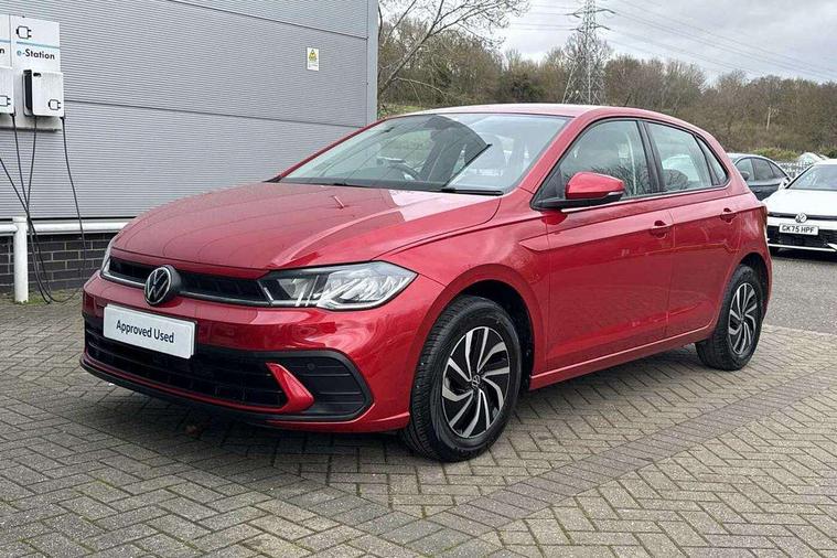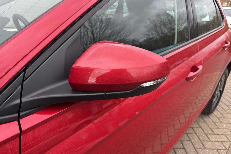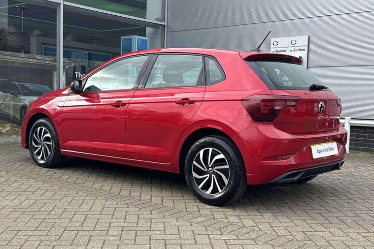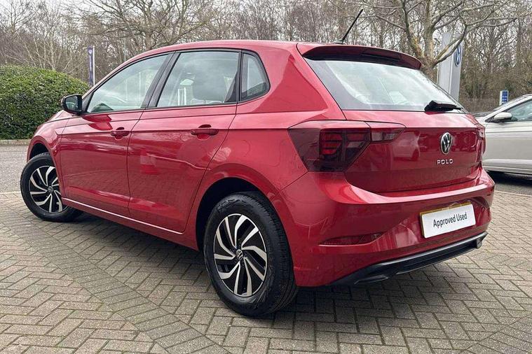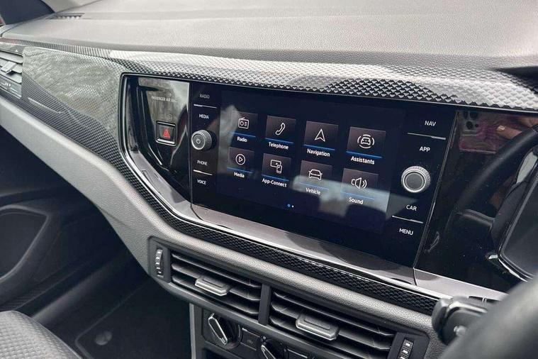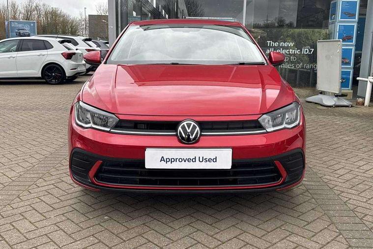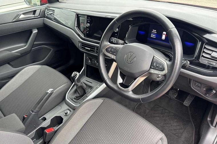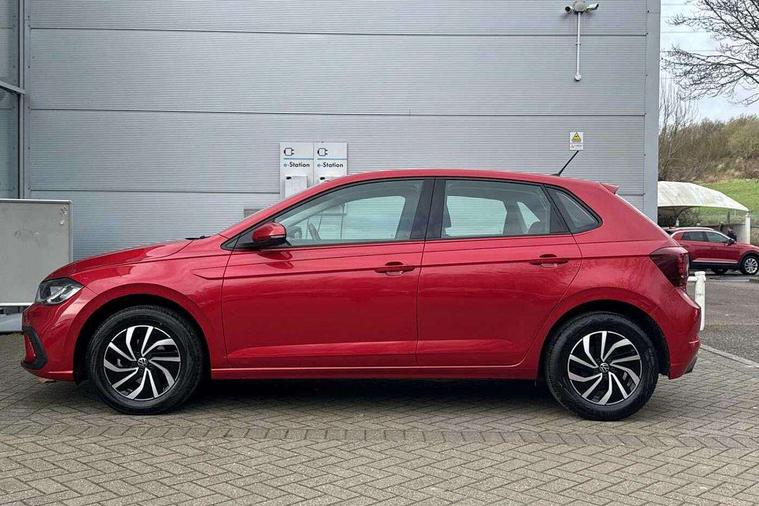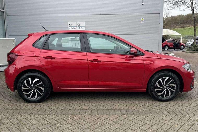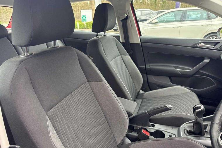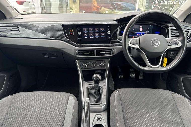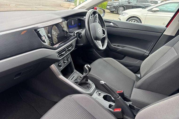 Adaptive cruise control without follow-to-stop and speed limiter, Bluetooth mobile phone interface, Driver alert system, Emergency call service, Front assist system, Power assisted speed sensitive steering, Preparation for We connect and We connect plus, Speedo and rev counter, electronic odometer, trip, service interval display and fuel gauge, Standard rear axle, Travel Assist - Lane keeping system and traffic jam assist, Travel assist including emergency assist, Trip computer, Warning signal and warning light for front and rear seatbelts not fastened, Washer fluid level indicator, Wireless app connect, Front wheel drive, Rear shock absorpion, Start-stop system with battery regeneration (recuperation - energy recovery during braking), DAB Digital radio, Diversity antenna for FM reception, Automatic dimming interior rear view mirror, Body colour bumpers, Body colour door handles, Body colour door mirrors, Electric front windows, Heat insulating darkened glass in side and rear windows, Heat insulating glass windscreen, Power folding adjustable/heated exterior mirrors and front passenger exterior mirror lowering function, Rain sensor, Rear electric windows, Rear fog light, Rear windscreen washer and wiper with interval delay, Third brake light, 12V power socket in centre console, 2 front and 2 rear reading lights, 2 USB-C ports in the front, 2 USB-C charging sockets on the center console in the rear, 3 rear head restraints, 60/40 split folding rear seat and rear seat bench not split, Ceramique headliner, Chrome plated radiator grille inserts, air vent surrounds and light switch surrounds, Door and side trim panel, Driver and front passenger seat height adjustment, Driver/passenger sunvisors with illuminated vanity mirrors, Front centre armrest, Front seat backrest storage pockets, Front standard seats, Handbrake lever handle in leather, Hartley/Thomas cloth upholstery, Isofix child seat preparation easy-fit (for two outer rear seats, and front passenger seat) compatible with I-size, Leather trimmed gear knob, Luggage compartment cover, Luggage compartment floor, Luggage compartment lighting, Multifunction steering wheel, Standard pedal cluster, Light and vision pack - Polo, 3 point height adj front seatbelts + pretensioners, 3x3 point rear seatbelts, ABS, Driver and front passenger airbag with front passenger airbag deactivation, Drivers and front passengers safety optimised head restraints, ESC (Electronic stability control) + EDL (Electronic Differntial lock) and ASR (Traction control), Extended and predictive pedestrian/ cyclist protection, Front curtain and side airbags with center airbag, Front disc brakes, Hill hold control, Rear drum brakes, Single tone horn, Tyre pressure loss indicator, Alarm with interior protection, Anti-theft alarm system with interior monitoring, backup horn, and towing protection, Anti-theft wheel bolts, Electronic engine immobiliser, Lava stone black gloss/matt decorative inserts in dash and front door panels, Low rolling resistance tyres,