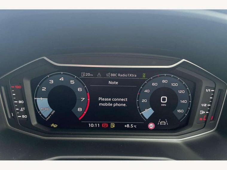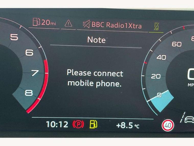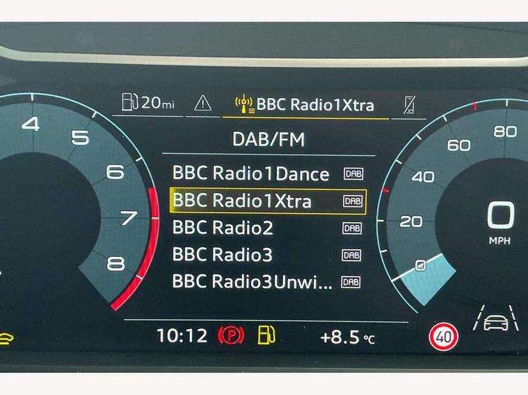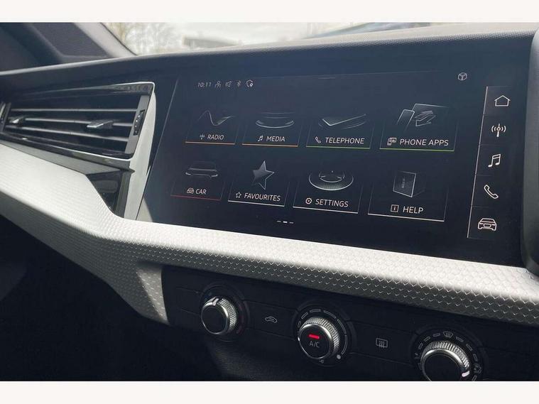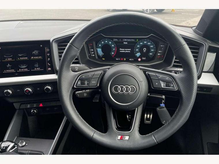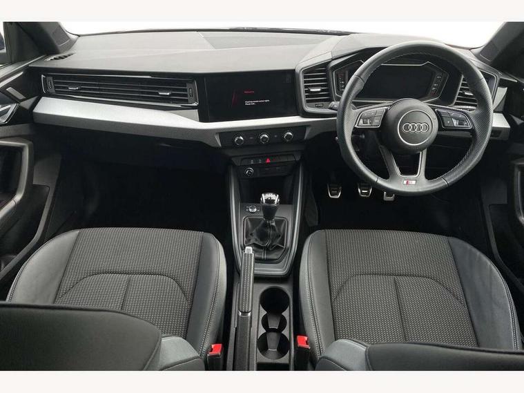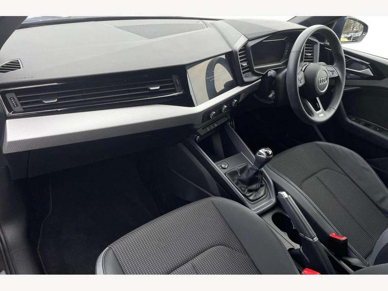 10.25" Digital instrument cluster display classis style instrument dials + speed, odometer, time, outside temperature, telephone menu + fuel level warning, Advanced driver attention and drowsiness monitor, Audi connect emergency call and service, Audi remote connect and control, Audi smartphone interface, Bluetooth interface, Camera based traffic sign recognition, Cruise control, Driver's information system, Electromechanical power steering, Lane departure warning system, Rear parking sensor, Service interval indicator, Speed limiter, Start stop system with recuperation, Voice control system, Washer fluid level indicator, Sports suspension, 2 x USB type C connection points, 6 loudspeakers, DAB Digital radio, MMI radio plus with 10.1" colour MMI display screen and MMI touch, Auto dimming rear view mirror, Body coloured door mirrors, Door sill trims with aluminium inlays and S line logo in front, Electric front and rear windows, Electrically adjustable, heated, folding door mirrors with integrated LED side indicator, Front side air inlets in grained matt black and C frame in anthracite black, Headlight cleaning system, Heat insulating glass windscreen and side windows, Heated rear windscreen, High level LED brake light, LED daytime running lights, LED headlights with range control LED rear lights + dynamic rear indicators, Privacy glass, Radiator grille and rear diffuser in matt anthracite black, Radiator protective grille frame in matt aluminium silver, Rain and light sensors, Rear fog lights, Rear side wing doors, Rear wiper, S line badges on front wings, Side front spoiler lips in grained matt black, 12V socket in centre console with two cup holders, 3 rear seats with headrests, 3 seat bench in 2nd row, 3 spoke leather multi-function plus steering wheel features S badging and grips in perforated leather with contrast stitching, 40:60 Split folding rear seat or fully collapsed, Black cloth headlining, Front and rear velour black floor mats with contrast stitching in fine silver, Front head restraints, Front passenger seat, Height and reach adjustable steering wheel, Interior lighting includes roof module, front and rear reading lights and right luggage compartment lighting, ISOFIX child seat mounting for front passenger and outer rear seats including top tether attachment point of outer rear seats, Leather gear knob with aluminium trim, Leather handbrake grip, Manual air conditioning, Manual height adjustable for driver and front passenger seat, Manually adjustable lumbar support in front seats, Stainless steel pedals, Ambient lighting package - A1, Luggage compartment pack - A1, S line exterior styling pack - A1 Sportback, 3x3 point rear seatbelts, Audi pre-sense front with pedestrain and cyclist recognition, Brake assist function, Driver and front passenger airbag with front side and head airbags, Electronic Stability Control including ABS, EBD, ASR and EDL, Front passenger airbag deactivation switch, Hill hold assist, Manual rear child locks, Seatbelt height adjustment for front seats, Seatbelt monitoring, Tyre pressure loss indicator, Warning triangle and first aid kit, Anti theft alarm, Anti theft wheel bolts, Immobiliser, Remote control key with safelock, Aluminium trim for control switches, air vents and digital instrument cluster, Black dashboard, Silver grey inlays polygon structure in diamond paint finish, Structured grey accent surfaces insert of air vents, interior door handle recesses and centre console in quartz paint finish,