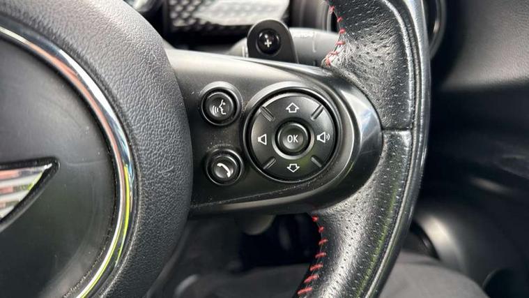 Acoustic seat-belt warning, Brake fluid level warning light, Brake pad wear indicator warning light, DTC - Dynamic traction control, Exterior temperature gauge, Intelligent emergency call, MINI TeleServices, Oil level indicator, On board computer, Rear view camera, Service interval indicator, Servotronic PAS, Stop/start button, Electronic differential lock, Auxiliary input socket, DAB digital radio module, Radio visual boost with MINI Connected, Anti dazzle mirror, Anti trapping/one touch open close front windows, Body coloured bumpers, Chrome bezels around rear lights and headlights, Chrome door handles, Chrome exhaust tailpipe, Chrome plated fuel cap, Chrome plated radiator grille, Electric front windows, Electrically adjustable door mirrors, Follow me home headlights, Heated door mirrors, Heated rear window with auto timer, Heated windscreen washer jets, High gloss black tailgate handle, Honeycomb radiator grille, Metal look door sill finishers, 2 rear head restraints, 4 boot load lashing points, 50/50 split folding rear seats, 6-way manually adjustable driver's seat, Active carbon filter, Auxiliary socket in centre console storage compartment, Centre console storage, Driver/passenger sunvisors and vanity mirrors, Easy entry seats, Front and rear cupholders, Front head restraints, Front sports seats with front seat backrest storage nets, Gear/selector and handbrake in artificial leather, Glovebox, Internal chrome door handles, Isofix child seat preparation, Luggage compartment lighting, Reach + rake adjustable steering column, Storage compartments in doors, Toolkit in luggage compartment, 3 point seatbelts, ABS/EBD, ASC+T, Cornering brake control (CBC), Crash Sensor - activates hazard/interior lighting + unlocks doors, Driver and passenger airbags, Driver/front passenger side airbags, DSC - Dynamic Stability Control, Fuel cut off safety device, Head airbags, Hill start assist, Manual passenger airbag deactivation function, Seatbelt pretensioners, Tyre pressure warning, Drive away door locking, Keyless start, Locking wheel bolts, Remote central locking/doors+fuel cap+tailgate, Second remote key, Thatcham category 1 alarm + immobiliser,