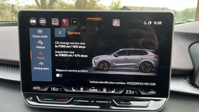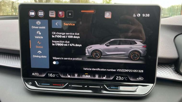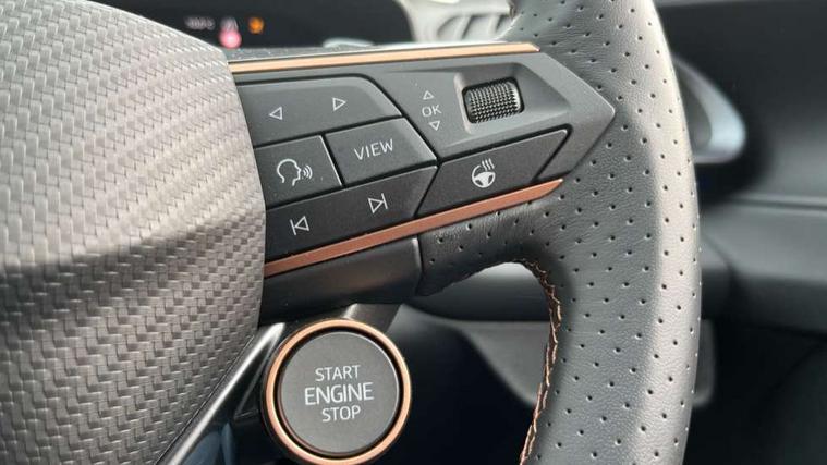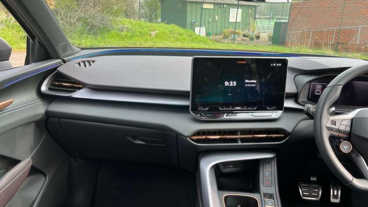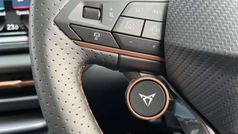 10.25" digital cockpit and configurable dashboard, Adaptive cruise control with follow-to-stop and speed limiter, Advanced driver alert system, Advanced lane assist with semi-automatic vehicle control in a medical emergency and traffic jam assist, Driving profile selection (DCC- Comfort, performance, CUPRA, Individual, Dynamic road sign display, E-call, Electric tailgate with virtual pedal, Emergency steering support with turn assist, Front and rear parking sensors, Front assist (Forward collision warning with automatic braking) with multifunction camera and front cross traffic assist, Head up Display, Intelligent park assist, Media system with Nav - 12.9" touch display, voice control, full link phone (wired/wireless), DAB and Steering wheel mounted controls, Rear traffic assist, Side and exit assist, Speed sensitive power steering, Start/stop system with regenerative braking, Top view camera (front camera, rear camera, 2 side cameras), Wireless phone charger, Adaptive chassis control with a 2-valve shock absorber, Auto dimming rear view mirror, Black roof rails, CUPRA 3D rear lights with ceremony & swiping indicator and illuminated logo, Dark tinted rear windows, Daytime running lights with automatic headlight control and Coming and Leaving home function, Door mirrors with memory function and lowing function on passenger mirror, Electric front/rear windows, Electrically adjustable, heated and folding door mirrors, Front fog lamps with cornering function, Heat reflecting windscreen, High beam assist, Rain sensing wipers, Rear fog light on one side, back up light on both sides, Rear side wing doors, Rear wash/wipe, Third brake light, Welcome lights (within exterior mirror housing), 3 seat bench in 2nd row, Black roof lining, Cupra sports pedals, Driver seat memory function, Electrically adjustable front seats including lumbar support, Four x USB Type C ports (2 in front and 2 in rear), Front and rear head restraints, Front and rear reading lights X 4, Front centre armrest, Heated front seats, Heated leather wrapped multi function sports steering wheel with tiptronic, Illuminated interior front door sills, Isofix, Leather upholstery, Operating voltage 12V, Single front passenger seat, Smart wraparound interior lighting, Sunvisors with illuminated mirror, Three zone climate control with control panel in rear, Unsplit rear seat bench, split folding backrest, with centre armrest, Variable luggage/load compartment floor, Pure performance pack - Terramar, 3 point seatbelts in front with pretensioner and electric height adjustment, 3 point seatbelts on all rear seats, Brake control system - ESC and brake booster, Child proof door locks, Driver and front passenger airbags, Electronic parking brake, Front and rear disc brakes, Front interaction airbag, Front passenger airbag deactivation switch, Front side airbags with curtain airbags, Pre-crash front and rear seat belt tensioner, window closure and hazard lights, Tyre pressure monitoring system, Visual and acoustic seat belt reminder, electric contact in front and rear, Anti theft alarm, Keyless locking and starting system with keyless access, Locking wheel bolts, Black decorative trims, Chrome interior detailing, Performance tyres in polmer coating, Tool kit,
