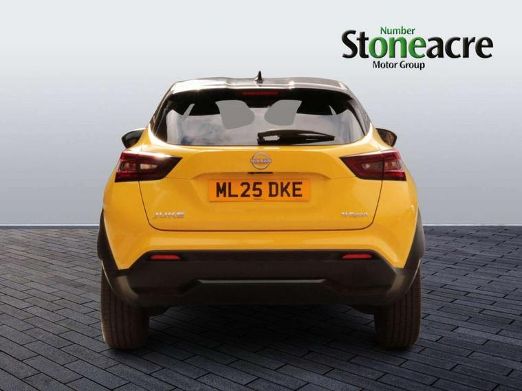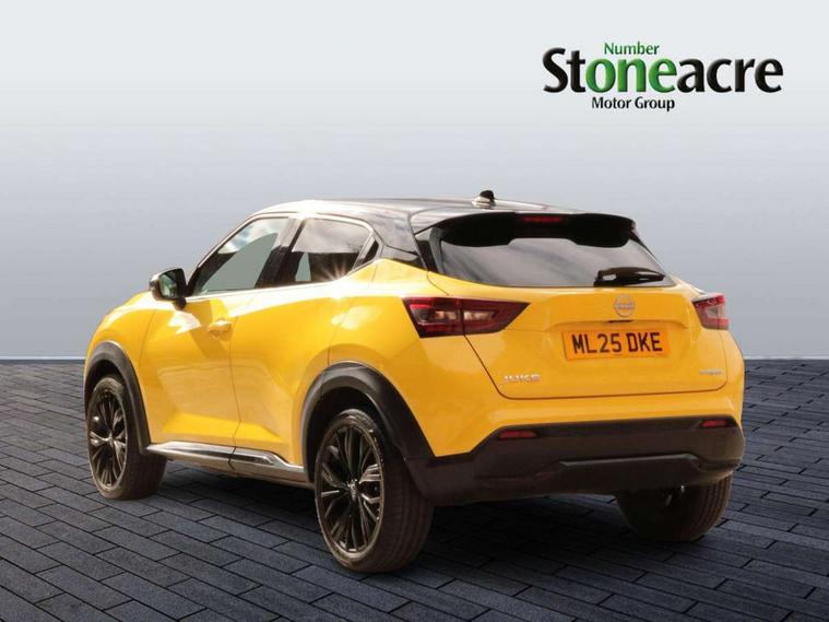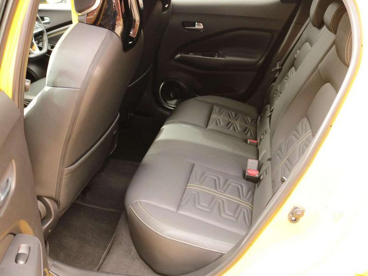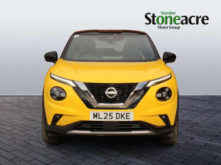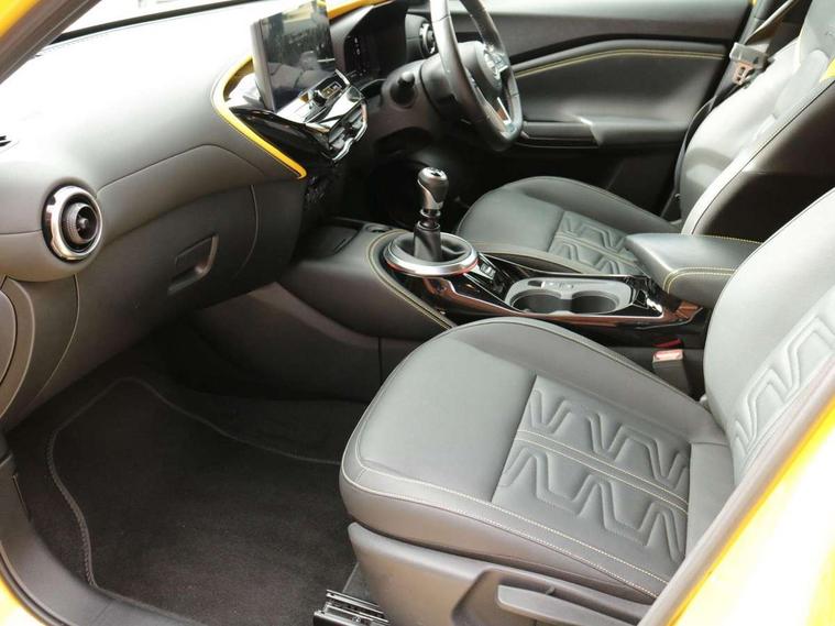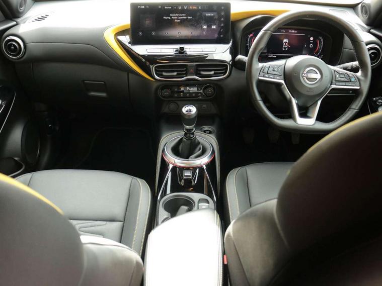 12.3" full colour TFT screen combimeter, Drive modes select (Eco, normal and sport), Emergency and breakdown call, Front parking sensor, Idle start/stop system, Intelligent driver alert system, Intelligent lane intervention, Lane departure warning system, Nissan connect 12.3" touch screen entertainment system, Nissan connect nav with TomTom traffic, Nissan connect services, Outside temperature sensor, Power Steering, Rear parking sensor, Stop/start button, Traffic sign recognition, Trip computer, Voice recognition, WiFi connectivity, Wireless Apple CarPlay and Google Android auto, Wireless Smartphone charger, 10 Bose speakers 6 speakers and 2 headrest speakers for driver/passenger seats, 2 X Rear console USB port, Bluetooth system, USB, Aux-in and 12V socket, Bose personal sound stage control, DAB Digital radio, Auto dimming frameless rear view mirror, Automatic hazard signal with emergency stop signal, Body colour door handles, Electrically adjustable door mirrors with integrated indicators, Follow me home headlights, Front and rear electric window with one touch driver window, Heated and auto folding door mirrors, High beam assist, LED 3rd brake light, LED daytime running lights, LED front fog lights, LED headlamps, LED rear fog lamp, LED rear lamps, One touch passenger window, Rain sensor windscreen wipers, Rear privacy glass, Rear side wing doors, Rear wiper, Roof spoiler, Shark fin roof antenna in solid Black, Three blink turn signal, 3 height adjustable rear headrests, 3 seat bench in 2nd row, 60/40 split folding rear seat, Automatic climate control, Card holder on driver sunvisor, Door ambient lighting, Driver seat back pocket, Driver side rear coat hanger, Driver/passenger sunvisors and vanity mirrors, Front and rear cabin lights, Front armrest, Front door pockets with bottle holders, Front head restraints, Front/rear passenger grab handles, Gear console ambient circle lighting, Height adjustable driver's seat, Internal chrome door handles, Leather gearshift knob, Luggage board, Luggage space lighting, Monoform sporty seats, Multifunction steering wheel, Passenger seat back pocket, Rear door bottle holders, Single front passenger seat, Smooth synthetic leather steering wheel, Synthetic leather kneepad, Telescopic steering wheel adjustment, Two cupholders in front centre console, Two rear isofix child seat anchorage points with top tether, Welcome light and console tray ambient lighting, Advanced safety shield pack - Juke Manual, Gloss black exterior personalisation pack - Juke, Heat pack with height adjustable passenger seats - Juke, Interior personalisation pack - Juke, ABS with EBD and brake assist, Active ride control, Active Trace Control, Driver and passenger airbags, Driver and passenger side airbags, Electric handbrake with auto hold function, Electronic Stability Programme (ESP), Front and rear curtain airbags, Height adjustable seatbelts, Hill start assist, Intelligent emergency braking with pedestrian and cyclist recognition, Rear door child safety locks, Seatbelt reminder for driver/front passenger and rear seats, Three 3 point rear seatbelts, Traction control, Tyre pressure monitoring system, VDC Dynamic Vehicle Control, Alarm, Immobiliser, Intelligent key and start push button with walk away lock and approach unlock functions, Remote central locking, 19" Akari Black alloy wheels, Tyre puncture repair kit,