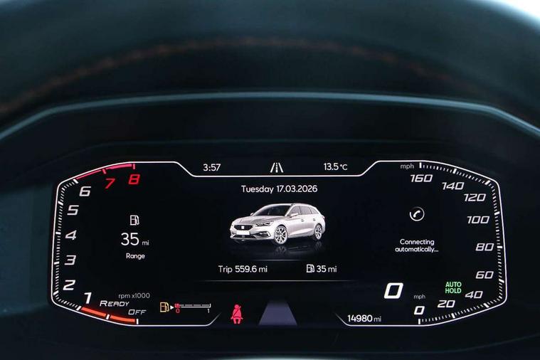 Digital cockpit, E-call, Front assist with forward collision warning braking reaction to vehicles, pedestrians and cyclists, Full link smartphone integration with Mirror Link, wireless Apple CarPlay and wired Google Android Auto, Lane assist, Lockable tailgate, Park assist (inc front/rear parking sensors), Power assisted speed sensitive electro-mechanical steering, RPM, trip computer, outside temp gauge, instrument light brightness, low fuel warning light, lights on reminder, gearshift indicator, SEAT drive profile with 4 modes (Eco/Normal/Sport/Individual), throttle response, Service interval indicator, Start/stop system with regenerative braking, Sports suspension, XDS electronic differential lock and dynamic traction support, 7 speakers, Auxiliary input socket, Auto dimming rear view mirror, Body colour door handles, Body coloured bumpers, Cosmo grey exterior mirrors with integrated LED indicators, Dark tinted rear windows, Dynamic headlight range control, Electric front/rear windows, Electrically adjustable, heated and folding door mirrors, FR sports bumper, Illuminated front door sill, LED front fog lamps with cornering function, LED Headlights with dynamic turn signals, LED tail lights and rear fog lights with rear coast to coast lighting, Matt black roof rails, Rain sensing wipers, Rear side wing doors, Rear wash/wipe, Separate daytime running light with automatic headlight control and coming home feature, Third brake light, Welcome light silhouette from exterior mirrors, 12V Accessory socket in the load area, 12v power point in centre console, 3 seat bench in 2nd row, 60/40 split rear bench seat with armrest, Ambient lighting with glovebox, footwell and single monocolour, Driver/passenger manual seat height adjustment, Dust/pollen filter, Flat bottomed perforated leather steering wheel with red stitching and FR logo and leather gear stick, Four x USB Type C ports, Front and rear height adjustable headrests, Front and rear reading lights X 4, Front centre armrest, Front seatback storage pockets, Height/reach adjust steering wheel, ISOFIX points in outer rear seats with top tether anchorage points, Luggage tie-down hooks, Lumbar adjustment for front seats, Single front passenger seat, Sliding boot cover, Sunvisors with covered illuminated mirror, Three zone climate control, Two tone cloth upholstery, Media system plus with navigation - Leon, 3 point seatbelts on all rear seats, ABS, Brake control system - ESC and brake booster, Child proof door locks, Driver and front passenger airbags with front passenger airbag de-activation, front side and curtain airbags, Electronic parking brake, Extended safety system - seat belt tensioner, window closure and hazard lights, Hill hold control, Rear disc brakes, Seat belt reminder for front and rear seats, Tiredness recognition system, driver alert system, Tyre pressure monitoring system, Anti theft alarm system with interior monitoring in cab, backup horn and towing protection, KESSY Go (Keyless start), Locking wheel bolts, Wireless phone charging, Chrome interior detailing, 17" Dynamic Bi-spoke alloy wheels with 91W tyres, Tool kit,