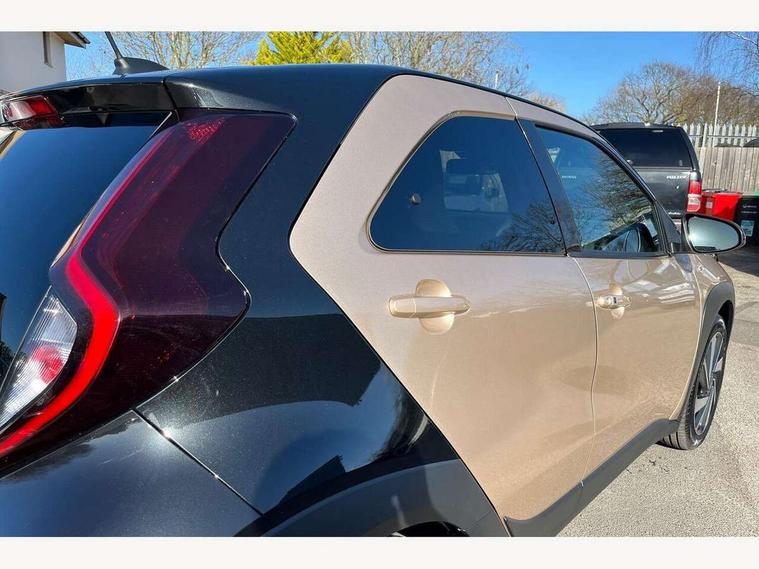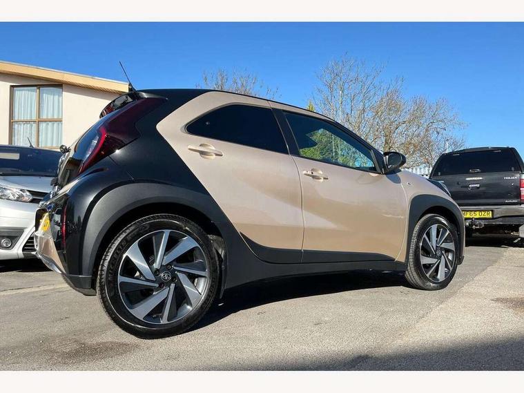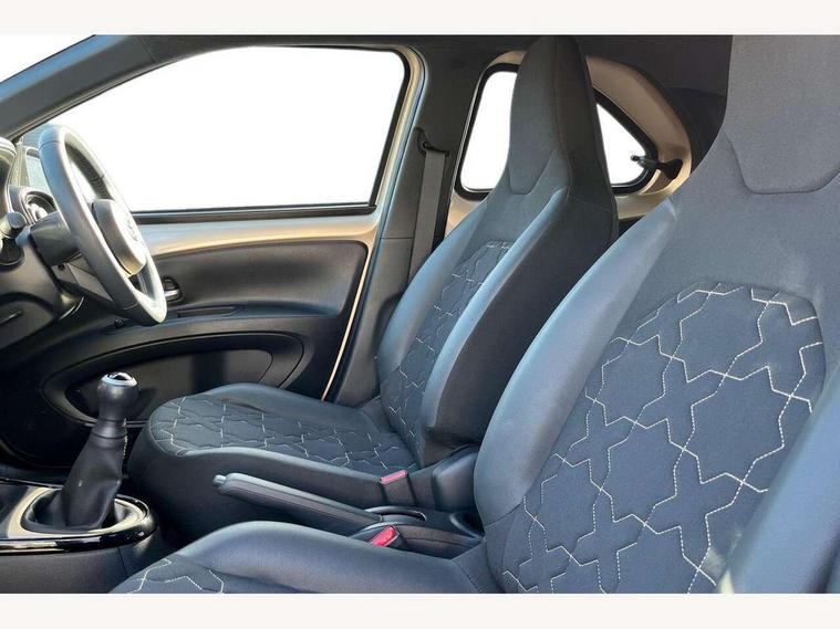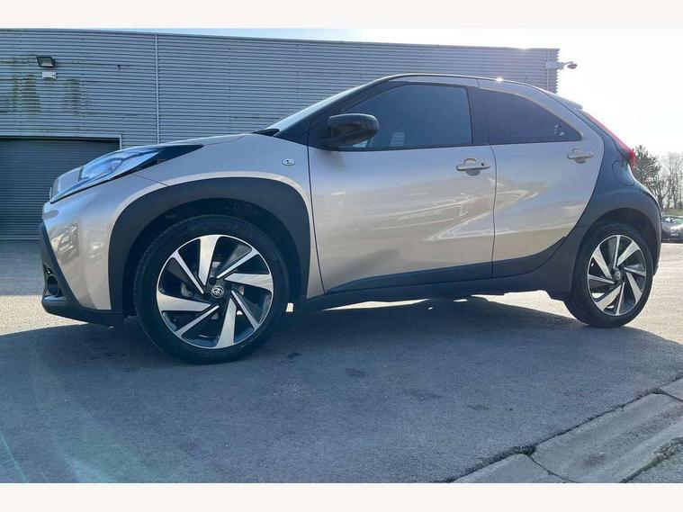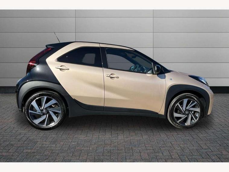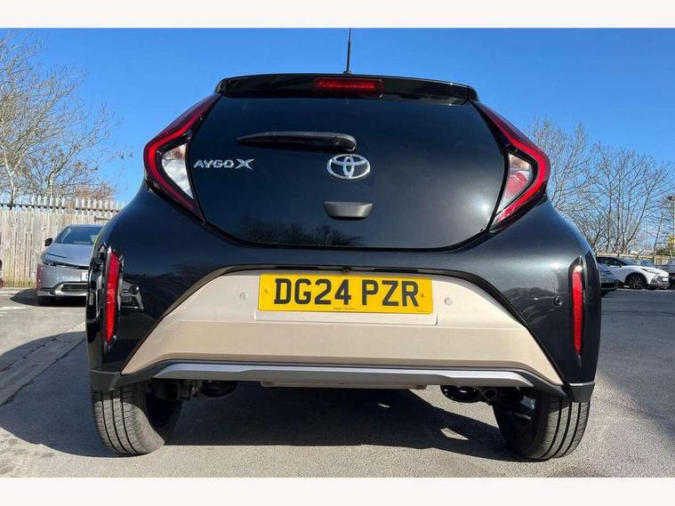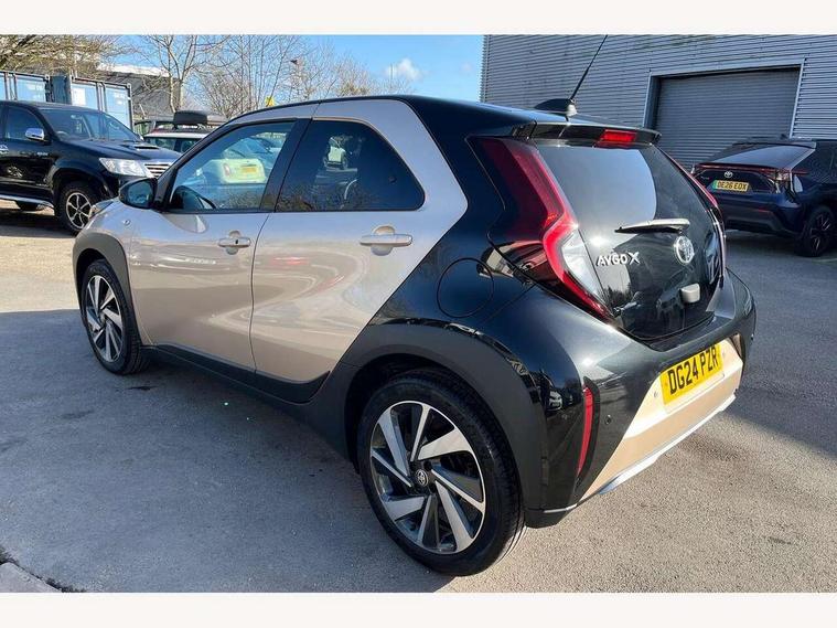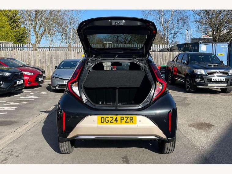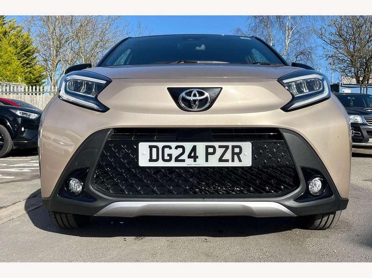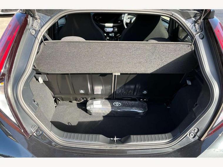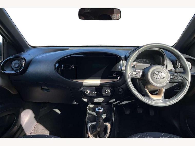 4.2" TFT colour screen, Adjustable speed limiter, Analogue speedometer, Bluetooth connectivity, Digital tachograph, Driver attention alert system, eCall emergency call system, Electric power steering, Front and rear parking sensors with auto brake, Intersection turn assist, Key reminder warning, Noise reduction kit, Pre collision system with emergency steering assist, Remote boot door release on key, Reversing camera with static guide lines, Smart entry and push button start, Smart phone integration with Apple car play/Android Auto, Speed limit display, Start and stop, Wireless charger, Vehicle Stability Control (VSC), 10.5" HD multimedia display touch screen with Toyota smart connect, 4 speakers, DAB digital audio broadcast, USB connector, Auto headlights, Auto wipers, Automatic headlights cut-off, Automatic high beam On/Off switch, Bicycle towing hook, Black contrast roof, Black fog light surrounds, Black side protection mouldings, Black wheel arch mouldings, Body colour door handles, Body coloured front bumper, Boot door scuff plate, Eclipse black rear bumper, Electric heated door mirrors, Follow me home headlights, Front and rear underruns in silver, Front fog lights, Front power windows, Gloss black door mirrors, Gloss black upper front grille, Headlight cut-off reminder, LED daytime running lights guide, LED front light guide, LED High mounted stop lamp, LED projector headlights, Manual day/night rear view mirror, Manual headlight levelling, Pagoda roof, Power adjustable door mirrors, Power back door, Privacy glass, Rain sensor, Rear combination lights LED bulb type, Rear side wing doors, Rear windscreen defogger, Rear windscreen wiper, Remote hazard lights system, Short antenna, Variable intermittent windscreen wipers, 12v power outlet - front, 2 seat bench in 2nd row, 3 spoke leather steering wheel, 50/50 split folding rear seat, Adhesive roof headlining, Adjustable speed limiter switch on steering wheel, Audio and telephone switches on steering wheel, Auto air conditioning, Black roof lining, Body colour satin anodised insert on steering wheel, Boot light, Centre room light, Chrome interior door handles, Chrome surround on air conditioning buttons, Clean air filter, Console box storage, Floor mats, Front and rear cup holders, Front head rest deco art, Front head restraints, Height adjustable driver seat, Intelligent adaptive cruise control switch on steering wheel, ISOFIX child restraint system on rear seats, Lane departure alert switch on steering wheel, Leather gearshift knob, Light blue ambient lighting in centre console, Manual tilt steering wheel, Manually reclining and sliding driver seat, Manually reclining and sliding front passenger seat, Multimedia switches on steering wheel, Partial synthetic leather upholstery, Pollen filter, Rear door pockets, Rear head restraints, Satin silver insert on gear shift knob, Single compartment glovebox with lights, Single front passenger seat, Soft tonneau cover, Sun visors with mirror on driver and passenger side, Voice recognition switch on steering wheel, Toyota safety sense pack - Aygo X, Anti lock braking system + Electronic brake force distribution, Child safety door lock, Emergency brake light signal (EBS), Hill start assist control (HAC), Passenger airbag on/off switch, Seat belt reminder for front and rear seats, Supplement restraints system (SRS) - 6 airbags, Traction control, Tyre pressure warning system, Immobiliser, Remote power door locks, Black wheel centre caps, Tyre repair kit,