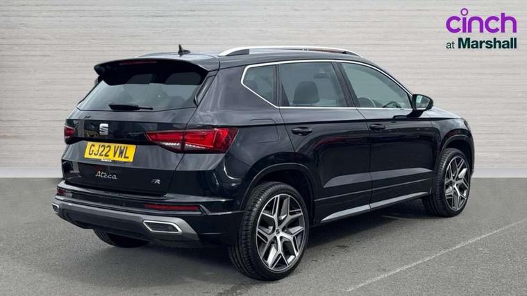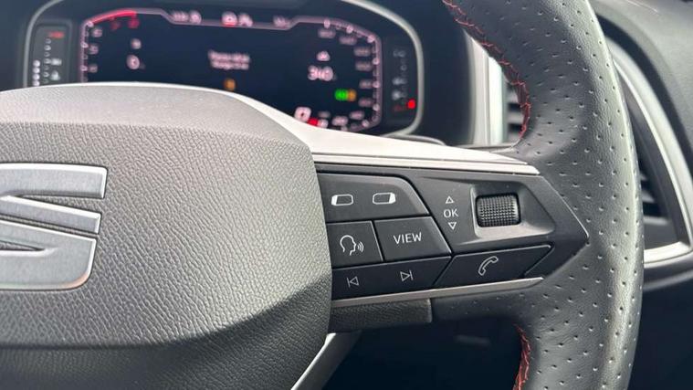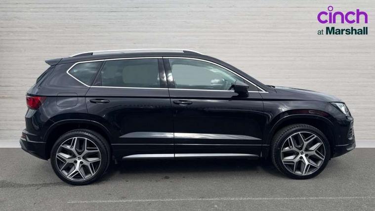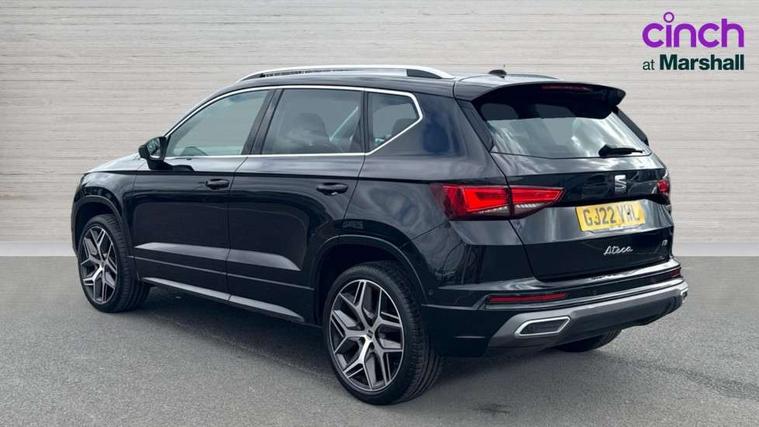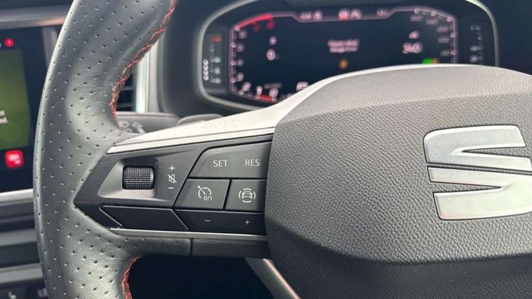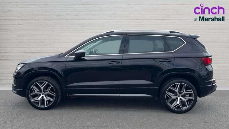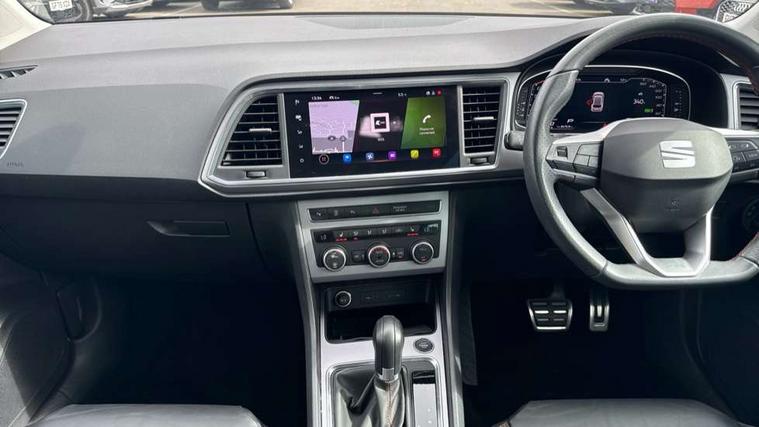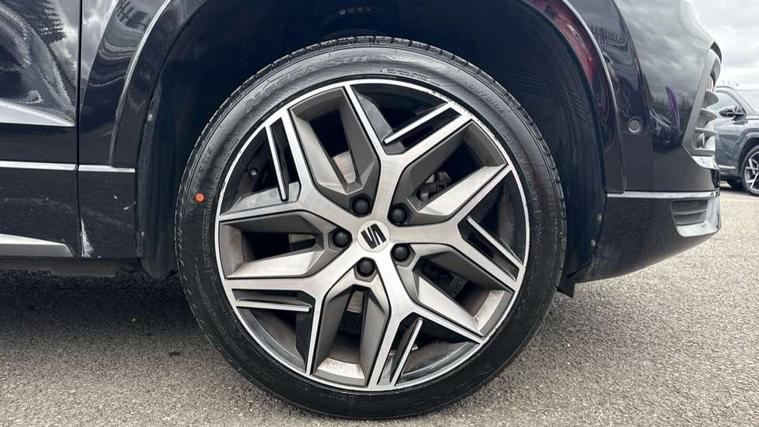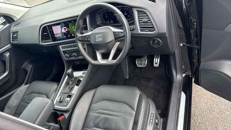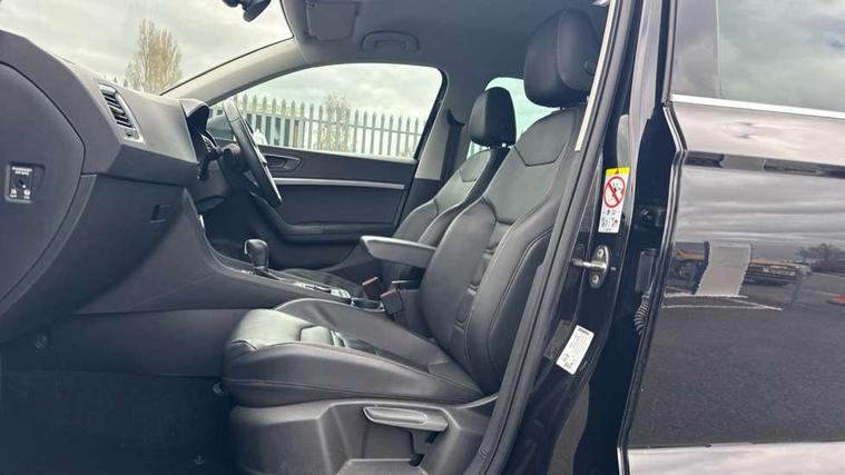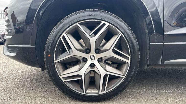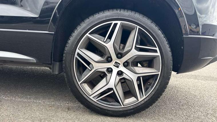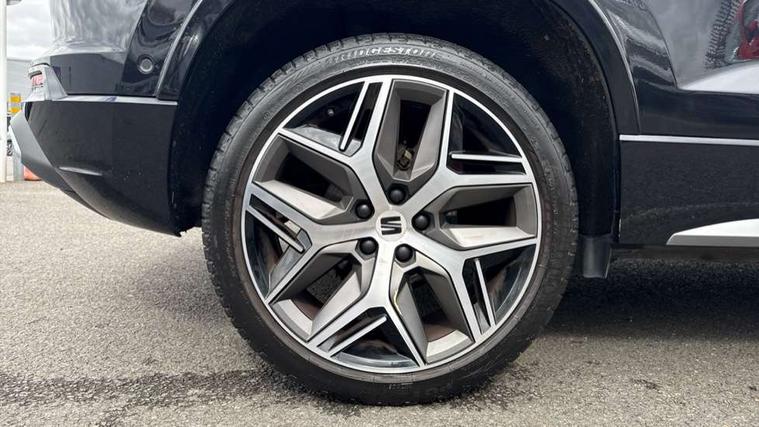 Cruise control system with speed limiter, Digital cockpit, E-call, Outside temperature gauge, Progressive power assisted steering, SEAT drive profile with driving experience button - Normal, Sport, Eco and Individual mode, gearshift, steering and throttle response, Self parking functionality (includes front and rear parking sensors), Trip computer, Wireless full link smartphone integration, Wireless phone charger, Steering wheel mounted audio/phone controls, Body colour bumpers, Body coloured wheel arch surrounds, Chrome roof rails, Chrome side window trim, Cosmo grey front grille frame, Dark tinted rear windows, Daytime running lights, Door mirrors with welcome light silhouette, Dynamic headlight range control with self adjusting whilst driving, Electric adjustable/heated/folding door mirrors, Front and rear electric windows, Full LED headlamps with lens and LED front fog lamps with cornering function, Illuminated aluminium front door sill, LED rear tail lights with dynamic indicators, Rear fog lights, Rear side wing doors, Rear spoiler, Rear wash/wipe, Simulated exhaust pipes in chrome frame, 12V socket in front, 3 seat bench in 2nd row, 60/40 split folding rear seat, Aluminium pedals, Dual zone climate control, Electric adjustable driver seat with lumbar adjustment, Front and rear head restraints, Front centre armrest, Front seat back storage pockets, Heated front seats, Height adjustable passenger seats with lumbar adjustment, ISOFIX points in outer rear seats with top tether anchorage points, Leather steering wheel and gear knob, Leather upholstery with front sports seats, Rear armrest and easy back seat release mechanism from boot, Single front passenger seat, Steering wheel mounted gearshift paddles, Convenience pack - Ateca, Interior lighting pack - Ateca, Navigation system pack with DAB - Ateca, 3x3 point rear seatbelts, ABS, Traction control system (TCS), Electronic stability control (ESC) and Electronic differential lock system (XDS), Airbags - Driver and front passenger airbag with deactivation, front side, two curtain and driver's knee airbags, Electric parking brake with auto hold function, Front and rear seatbelt reminder, Front assist with autonomous emergency braking, Hill hold control, Manual rear child locks, Tiredness recognition system, Traction control, Tyre pressure monitoring system, Alarm, Keyless entry, Locking wheel bolts, Chrome interior detailing, 19" Exclusive machined alloy wheels with decorative inserts 36/7 in cosmo grey,