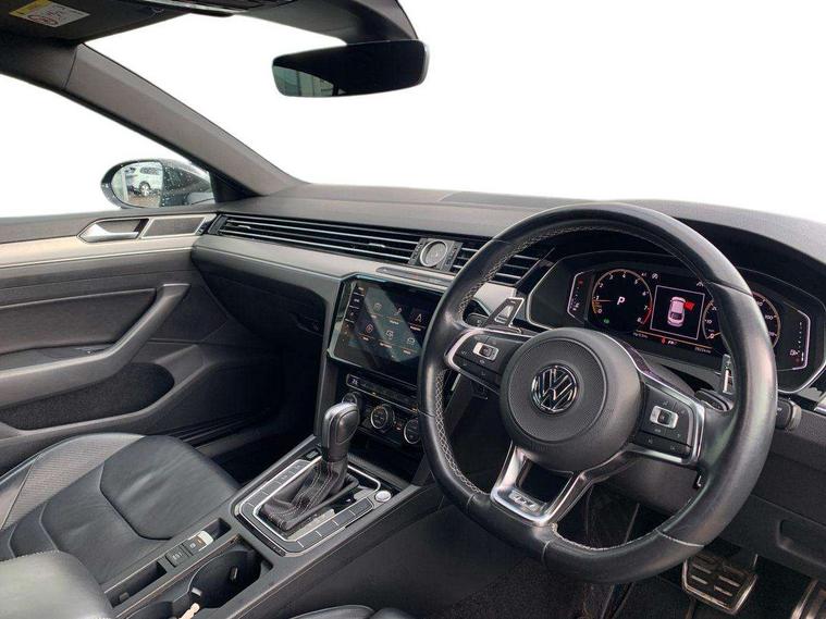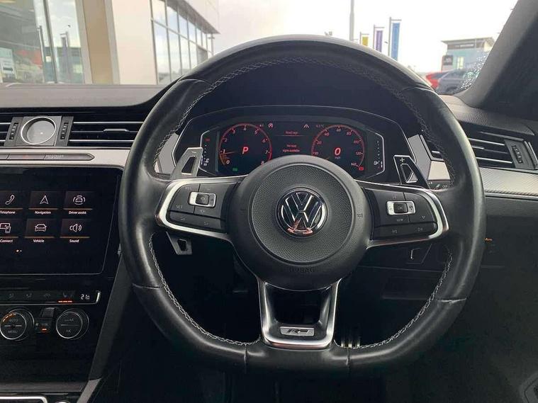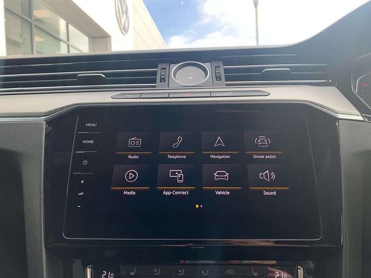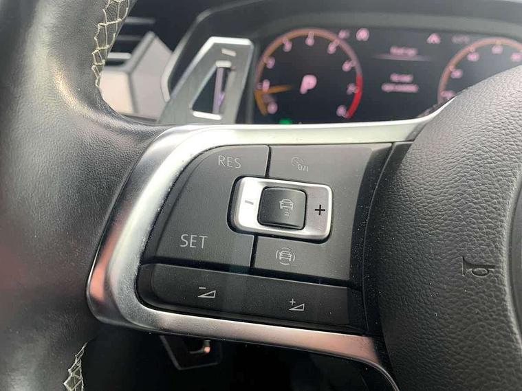 'Lights On' Reminder warning buzzer, 2D/3D map view, 8" touch screen, Active Info display 12.3" high resolution TFT dash display with customisable menu and information, Adaptive Cruise Control with pedestrian detection and speed limiter, Analogue clock in the dasboard, Bluetooth telephone and audio connection for compatible devices, Car-Net Security and Service, Discover pro navigation, Driver alert system with fatigue detection, Driver profile selection, Front Assist with radar sensor controlled distance monitoring system, Lane assist, Press and drive key, Progressive steering, Remote boot unlocking, Speedo and rev counter, electronic odometer, trip, service interval display and fuel gauge, Start/Stop function, Streaming and internet, Think blue trainer driver tips and journey analysis, Voice control system, Warning sound and light for doors and boot lid opening, Warning sound and light for front and rear seat belts if unfastened, We app connect, Battery regeneration during braking, Part galvanised body, CD/MP3/WMA and SD card reader, DAB Digital radio, MDI with USB/iPod connection cables, Premium USB cable in choice of either Apple or Android smartphone compatibility, SMS functionality - read, compose and send SMS messages using touch-screen display, Title and cover art display, USB interface 3.0 with type C, Advanced high beam control, Auto dimming interior rear view mirror, Automatic coming/leaving home lighting function, Automatic hazard lights activation under emergency braking, Automatic headlights with dusk sensor, Body colour door handles, Body coloured door mirrors with integrated indicators, Chrome side window surrounds, Chrome trim headlights extending into the radiator grille, Chrome trim on radiator grille louvres, Door sill protector, Dynamic cornering lights, Dynamic light assist, Electric adjust/heated/foldable with auto dimming on driver side, puddle lights on door mirror and reverse activated kerbview adjust on passenger side, Emergency release function in rear tailgate, Front and rear electric windows, Front fog lights, Gloss black spoiler, Headlight range control, Headlight washers, Heated rear window, Heated windscreen washer jets, High level 3rd brake light, LED headlights with separate daytime running lights, LED number plate light, LED tinted rear light clusters with dynamic indicators, Left and right chrome effect trapezoid dummy exhaust tailpipe surrounds, Left and right chrome trim on lower bumper, Left and right chrome trim on lower doors, R Line bading on front raddiator grille, R Line Design front bumper, R Line lettering on side fender vents, R Line logo on door sill protectors, Rain sensor, Rear tinted glass on rear side windows with 87% and rear windows with 77%, Side skirts with chrome inserts, Windscreen wipers/ intermittent wipe + 4 position delay, 12V socket in centre console storage area, 12V socket on rear of front centre armrest, 2 bag hooks in luggage compartment, 2 reading lights front and rear with interior delay and dimming function, 3 spoke leather multifunction steering wheel including paddle shift with Aluminium inserts and R-Line logo, 3 Zone electronic climate control with automatic air recirculation, 4 load lashing points in luggage compartment, 60/40 split folding rear seat with armrest, Aluminium finish interior door handles, Aluminium trim on upper and lower air vents extending across cockpit, Front + rear carpet mats, Front and rear interior lighting with delay and dimming function, Front centre armrest with storage compartment, longitudinal and height adjustable and two rear air vents, Front cupholders x 2, Front footwell ambient lighting, Front seat and rear pockets, Front seats with R-line logo on seat backrest, Gearshift paddles, Glovebox, Heated front seats, Height adjustable 3 rear head restraints, Height/reach adjust steering wheel, Illuminated vanity mirrors, Isofix child seat preparation easy fit for two outer rear seats, Jack and tool kit, Luggage compartment lighting, Nappa leather upholstery, Rear armrest with 2 cupholders, Rear load through provision with 2 cup holders in armrest when folded down, Removable luggage compartment cover, Stainless steel footrest and pedals, Storage compartment in drivers and front passengers door, Storage compartment in rear doors, Storage compartment with soft touch opening cover in centre console, Storage compartments in luggage area left and right, Titan headlining, USB charging point, 3 rear three-point seat belts with tensioners on outer seats, ABS, Active bonnet, City Emergency Braking in active traffic speeds up to 19mph, Drivers and front passengers airbags with passengers deactivation switch, Drivers and front passengers safety optimised head restraints, Drivers knee airbag, Electronic parking brake with auto hold, Electronic stability control (ESC) includes ASR, EDL, EDTC and trailer stabilisation function, Front and rear curtain airbags, Front seat side impact airbags, Front ventilated disc brakes and rear disc brakes, Height adjustable front 3 point seatbelts + pretensioners, Hill start assist, Outer rear seat side impact airbags, Pedestrian monitor, Proactive passenger protection system, Rigid safety cell with front and rear crumple zones, Two tone horn, Tyre pressure loss indicator, Warning triangle, Alarm with interior protection, Electronic engine immobiliser, Remote central locking with 2 remote folding keys, Piano black centre console, Silver Rise decorative inserts in dash and door panels, Full size alloy spare wheel,