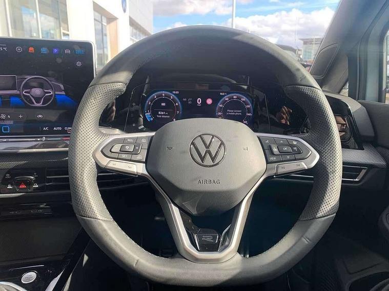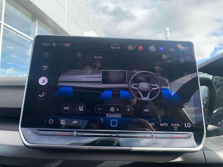 Activated carbon canister, Adaptive cruise control (ACC), Advanced driver attention and drowsiness monitor, Dynamic road sign display, Dynamic steering, E-Sim card for online connectivity, eCall emergency call system, Multi-color Digital cockpit pro, selection of different info profile possible, Multifunction front facing camera for distance control, Navigation system, Oncoming vehicle braking when turning including swerve support, Preparation for light assist system, Speed limiter, Speedo, rev counter, electronic odometer, trip, service interval display, exterior temperature and fuel gauge, Traffic jam assist, Voice enhancer and voice control, Warning signal and warning light for front and rear seatbelts not fastened, We connect plus preparation, We connect preparation, Wireless app connect, Petrol Particulate Filter, Start-stop system with battery regeneration (recuperation - energy recovery during braking), XDS electronic differential lock for improved traction and handling, 2 USB C ports in front, 2 USB charging sockets on the centre console in the rear charging capacity upto 45W, Comfort telephony + wireless charging, without wireless aerial connection, Digital radio reception (DAB), Diversity antenna for FM reception, Gaming platform via car app, Infotainment system with 12.9" display, Mobile phone interface with inductive charging feature, 3rd brake light, Auto headlights, Automatic headlamp activation with Coming home and Leaving home feature, Body colored bumpers in R-Line style, Body colour door handles, Exterior ambient lighting with illuminated door handles, Exterior mirrors convex on the left and aspherical on the right, Front and rear electric windows, Heat insulating windshield made of laminated glass, LED daytime running lights, Rear exhaust tailpipe, Rear fog light on one side and reversing lights on both sides, Rear side wing doors, Rear windscreen washer and wiper with interval delay, Remote electrically foldable door mirrors, puddle lights and reverse activated passenger's door mirror, Welcome light with surround lighting, 12V socket in front centre console, 12V socket in luggage compartment, 3 rear head restraints, 3 seat bench in 2nd row, Ambient lighting with 30 colour including LED light unit in front footwell with selectable light colour, Brushed stainless steel pedals, Carpet mats, front and rear, Chrome plated radiator grille inserts, air vent surrounds and light switch surrounds, Front centre armrest, Integrated front head restraints, ISOFIX anchors for child seats on outer rear bench seats and on front passanger seat compatible for i-Size, Leather gearshift handle, Luggage compartment lighting, Premium sports seats in front, Rear cupholder and loadthough, Single front passenger seat, Soul black instrument panel, Split folding backrest with centre armrest and unsplit rear seat bench, Storm grey roof lining, Sun visors with illuminated vanity mirrors, 3 point height adj front seatbelts + pretensioners, 3 rear three point seatbelts, ABS, Autonomous emergency braking front assist with pedestrian and cyclist monitoring, Child locks on rear doors, Driver and front passenger airbag with front passenger airbag deactivation, Electronic parking brake with auto hold, ESC (Electronic Stability Control), Extended pedestrian protection measures, Rear disc brakes, Two tone horn, Tyre pressure loss indicator, Volkswagen roadside assistance, Anti theft wheel bolts, Preparation for alcohol interlock, Decorative inserts carbon grey for dashboard and front door trim panels,