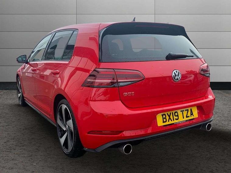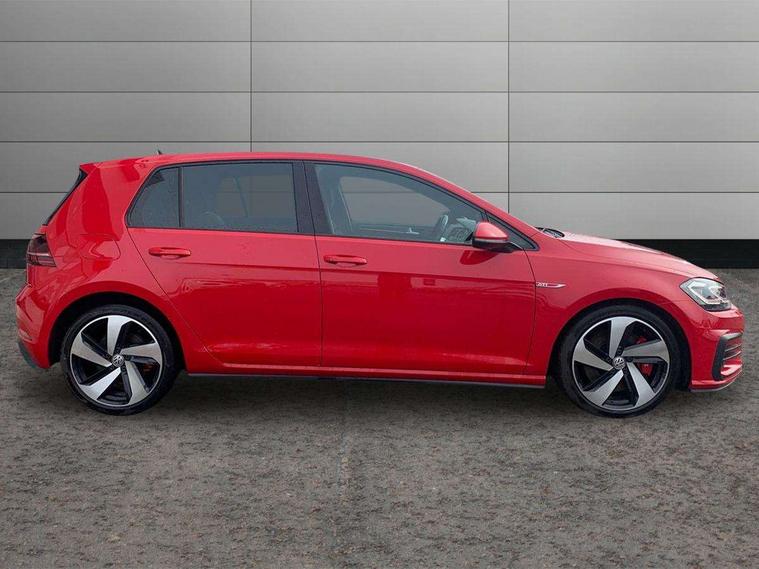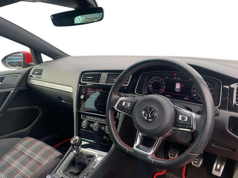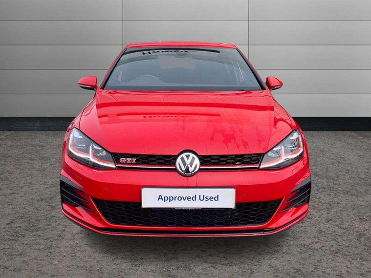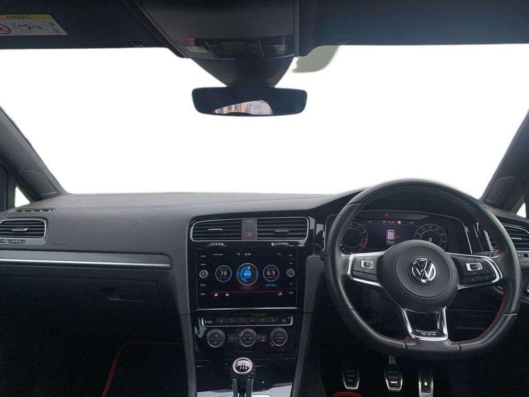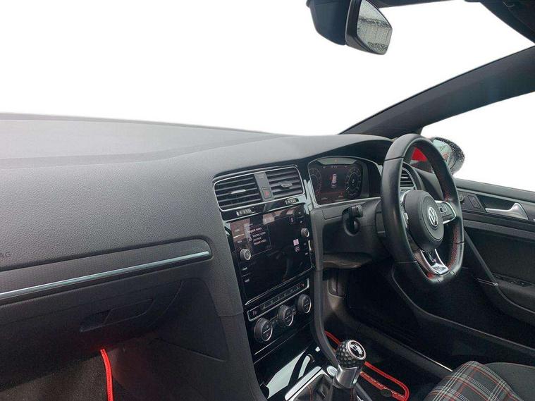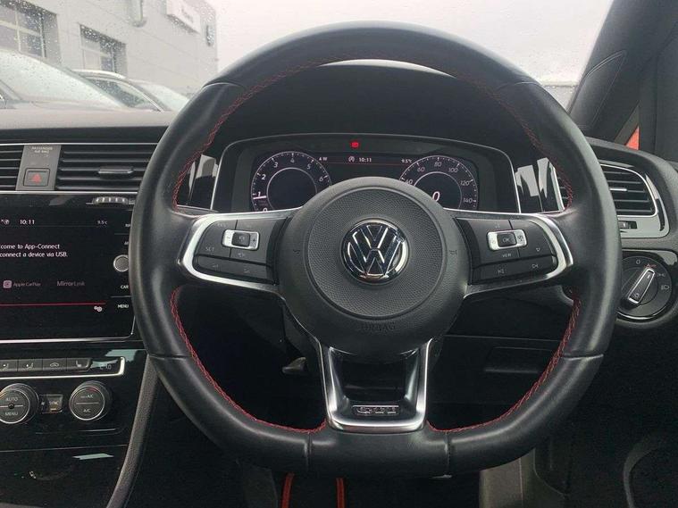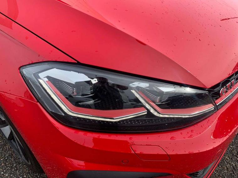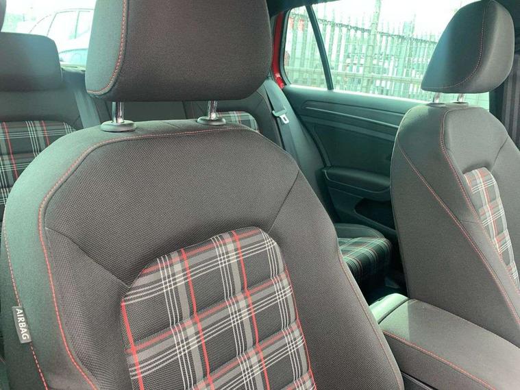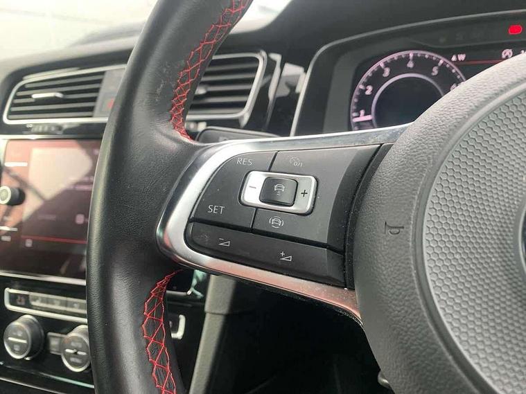 'Lights On' Reminder warning buzzer, ACC - Adaptive cruise control with front assist, forward collision warning, distance monitoring, city emergency brake and speed limiter, Bluetooth telephone and audio connection for compatible devices, Brake pad wear indicator warning light, Driver alert system, Driver profile selection, Driving Mode Selection with four preset modes - Eco, normal, sport or individual modes, Instrument cluster in white, Lane assist with dynamic light assist and traffic sign recognition, Multifunction computer with visual gear change recommendation for fuel consumption, Power assisted speed sensitive electro-mechanical steering, Push tank flap, Rear view camera, Speedo, rev counter, electronic odometer, trip, service interval display, exterior temperature and fuel gauge, Stop/start system, Warning buzzer and light for front seatbelts unfastened, Battery regeneration during braking, Limited slip differential, Lowered sports suspension, XDS electronic differential lock, Composition media system, DAB Digital radio receiver, MP3/WMA compatability, Multi device interface (MDI) with USB connection, Premium USB cable in choice of either Apple or Android smartphone compatibility, SD card slot, SMS Functionality, USB and SD card connectivity, Volkswagen media control, 3D-LED tinted rear light clusters with indicator sweep function, Black rear diffuser, Body colour door handles, Body colour door mirrors with integrated indicators, Body colour rear roof spoiler, Body colour sports bumpers, Dusk sensor + automatic driving lights, Electric front windows, Electric rear windows, Electrically adjustable and heated door mirrors, Fully galvanised body, GTI logo in red on front and back, GTI logo lettering on front wings on right and left, Heated rear windscreen, High level 3rd brake light incorporating LED Technology, Honeycomb radiator grille - black, LED daytime running lights, LED front fog lights with static cornering light function, Rear fog lamp, Rear window aerial, Rear window wash/wipe with intermittent wipe, Reflectors in all doors, Shiny black aerofoil downside, Sill extensions, Twin exhaust tailpipe, Windscreen wipers/ intermittent wipe + 4 position delay, 12V socket in luggage compartment, 3 rear headrests, 4 load lashing points in luggage compartment, 60/40 split folding rear seat backrest, Bag hook in luggage compartment x 2, Black headlining, Climate control - 2 zone electronic air conditioning with automatic air recirculation and allergy filter, Cooled glovebox, Dust/pollen filter, Front + rear carpet mats, Front centre armrest with storage compartment and two rear air vents, Front seat back storage pockets, Grab handles front x 2, rear x 2 with integrated coat hooks, Height and reach adjustable steering wheel, Illuminated door sills, Illuminated vanity mirrors, Instrument lighting white adjustable panel illumination, Interior light delay, Isofix preparation for 2 rear child seats, Leather gear knob and handbrake grip, Load through provision with rear centre armrest and cupholders x2, Luggage compartment lighting, Multifunction leather steering wheel with GTI logo and selector lever boot grip with red stitching, Overhead storage box, Stainless steel pedals, Storage box in luggage compartment, Storage compartment in roof console with cover, Storage compartments in front doors, Storage compartments in rear doors, Stowable luggage compartment cover, Sun visors, Variable boot floor, height adjustable and removable, Ambient lighting pack - Golf, Convenience Pack - Golf, Light and Sight pack - Golf, Mirror pack - Golf, 3 rear three point seatbelts, Airbags - Driver's and front passenger's, curtain airbag, Driver's knee, front side impact and passenger's airbag deactivation switch, Anti-lock Braking System (ABS) with Hydraulic Brake Assist (HBA), Automatic post collision braking system, Child locks on rear doors, Driver/Passenger optimised head restraints, Electronic parking brake with auto hold, Electronic stability control (ESC) including Electronic differential lock (EDL) and ASR (Traction control) with deactivation via infotainment system, Front ventilated disc brakes and rear disc brakes, Pre crash preventive occupant protection, Red brake calipers, Three point height adjustable front seatbelts with tensioners, Tyre pressure loss indicator, Alarm with interior protection and deactivation via infotainment system, Electronic engine immobiliser, Keyless entry with start/stop button on centre console, Remote central locking with 2 remote folding keys, Chrome plated air vent surround, Chrome plated electric mirror adjustment light switch surround, Honeycomb black decorative inserts, Piano black centre console, Steel space saver spare wheel,