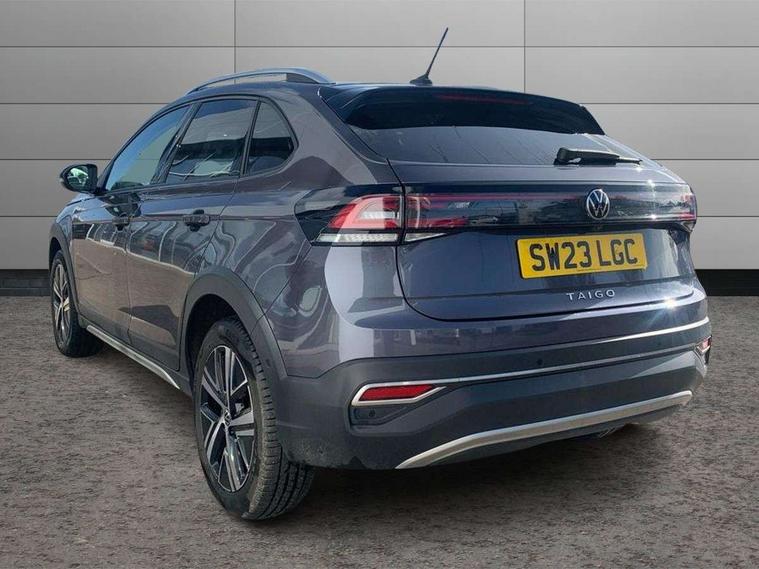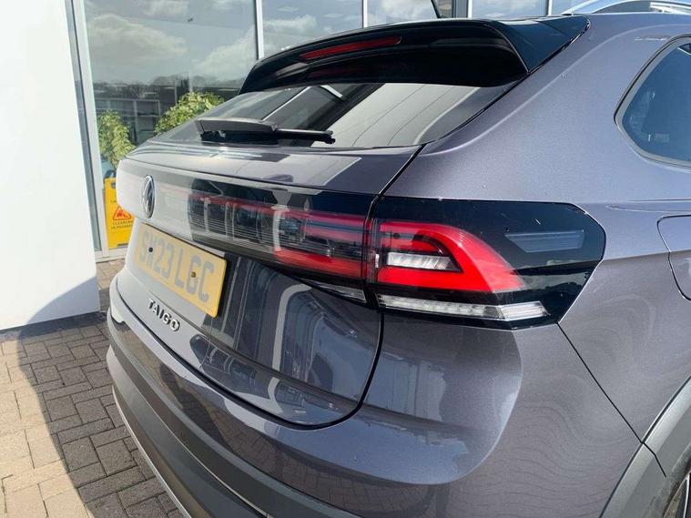 App-Connect including App-Connect Wireless, Digital cockpit pro - 10.25" high resolution TFT dash display screen with customizable menus and information, Driver alert system, e-Call (emergency call), Power Steering, Travel assist including emergency assist, Washer fluid level indicator, Wireless Charging including Bluetooth, Rear shock absorption, Start-stop system with battery regeneration (recuperation - energy recovery during braking), Digital radio reception (DAB+), Diversity antenna for FM reception, WeConnect plus, Aspherical driver's exterior mirror, Body coloured bumpers and radiator grille with chrome trim and front fog lamps with chrome bezel, Body coloured exterior mirror housings and door handles, Dual chrome twin tailpipes on left and right, Electric windows, External USB type C socket and charging sockets, LED rear combination lamp, LED third brake light, Left convex exterior mirror, Power folding adjustable/heated exterior mirrors and front passenger exterior mirror lowering function, Rear fog light on one side, reversing light on both sides, Rear side wing doors, Rear wash/wipe with intermittent wipe setting, 12V socket in centre console, 2 front reading lights, 3 rear head restraints, 3 seat bench in 2nd row, Air care climatronic air conditoning system with active combination filter and 2-zone temperature control, Ambient lighting with logo projection, Black carpets, Child seat anchor for child seat system i-Size, 2x top tether and child seat anchor in front on front passenger side, Chrome bezel for instrument cluster, vents, door handles + gear shift, Driver and front passenger seat height adjustment, Front + rear carpet mats, Front centre armrest, Front footwell illumination, Front sports comfort seats, Height and reach adjustable steering wheel, Interior ambient lighting and surround lighting, Leather trimmed gear knob, Leather wrapped multifunction steering wheel, Luggage compartment floor, Luggage compartment light, Lumbar support for driver's and front passengers seat, Single front passenger seat, Split folding backrest with centre armrest and unsplit rear seat bench, Storage compartment under front seats, Sun visors with illuminated vanity mirrors, Chrome Package - Taigo, Drivers assistance pack - Taigo, IQ.LIGHT - LED matrix headlights pack - Taigo, Light and sight pack - Taigo, 2 x 3-point seatbelts/outer rear seats with ECE label, 3-point seat belts in front with pretensioner and height adjustment, 3-point seatbelt for centre rear seat, Driver and front passenger airbags with front passenger airbag de-activation, front side and curtain airbags, Driver and front passenger safety-optimised head restraints, Electronic stability control, Extended and predictive pedestrian/ cyclist protection, Front and rear disc brakes, Front curtain and side airbags with center airbag, Hill start assist, Manual rear child locks, Single tone horn, Tyre pressure loss indicator, Anti-theft alarm system with interior monitoring, backup horn, and towing protection, Anti-theft wheel bolts, Low rolling resistance tyres,
