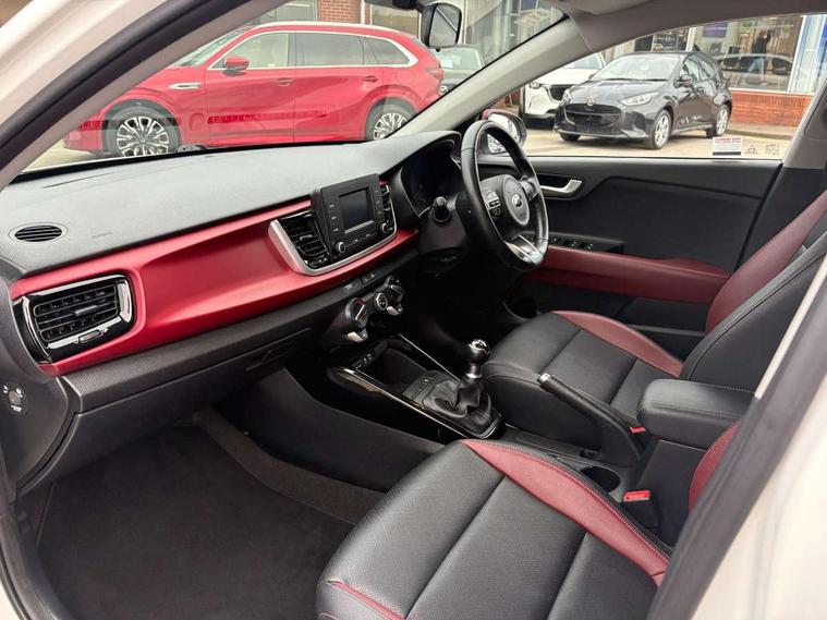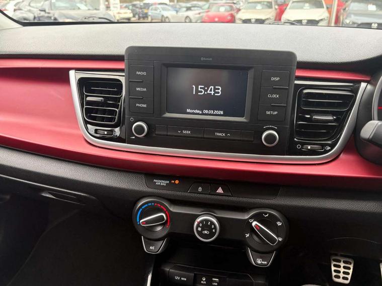5" Colour screen, Digital clock, Electric power steering, Gear selection indicator, Outside temperature display, Rear parking sensor, Reversing camera, Tachometer, Trip computer, Windscreen washer level indicator, Intelligent Stop and Go, 6 speakers, Bluetooth connectivity including audio streaming, DAB Digital radio, Steering wheel mounted audio controls, USB and auxiliary socket, Automatic lighting control, Black grille with chrome surround, Body colour bumpers, Body colour door handles, Daytime running lights, Electric adjustable/heated/folding door mirrors, Electric front windows + drivers one touch, Headlamp levelling, Heated rear window, LED indicators in door mirrors, Privacy glass, Rear electric windows, Rear wash/wipe, Red mirror caps, Red roof, Red side sills, Tinted glass, Variable front intermittent wipers with mist function, Welcome home function, 2x 12V sockets, 3 passenger grab handles, 60/40 split/folding 2nd row of seats, Air conditioning, Centre console storage box/armrest, Door pockets with bottle holder, Driver's seat height adjuster, Driver/passenger front seatback pockets, Driver/passenger sunvisors and illuminated vanity mirrors, Faux leather upholstery, Height adjustable headrests, ISOFIX top tethers and lower anchor points, Leather trimmed gearshift, Leather trimmed steering wheel, Load area light, Overhead console with sunglasses holder, Rear parcel shelf, Rheostat dimmer switch, Silver interior door handles, Stainless steel pedals, Tilt/telescopic adjustable steering wheel, 3-point front seatbelts, 3x3 point rear seatbelts, ABS/EBD, Automatic unlocking of doors in case of impact, Cornering brake control, Curtain airbags, Driver and passenger airbags, ESC + BAS + VSM + HAC, Front seatbelt pretensioners + load limiters, Front side airbags, Height adjustable front seatbelt anchors, Hill start assist control (HAC), Passenger airbag deactivate switch, Rear child proof door locks, Seatbelt warning, Tyre pressure monitoring system, Anti theft alarm, Deadlocking system, Engine immobiliser, Folding key, Locking wheel nuts, Remote central door locking, Speed sensitive auto door locking, Red metallic paint fascia trim, 17" Alloy wheels, Tyre mobility system,