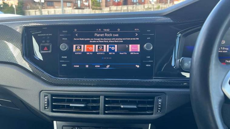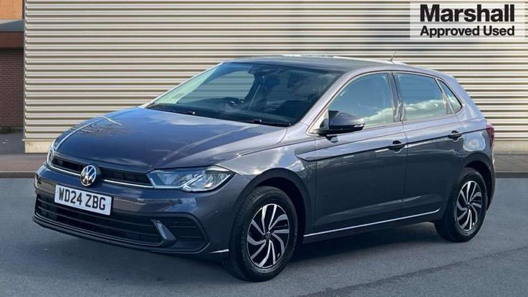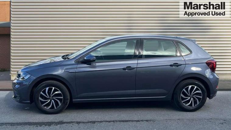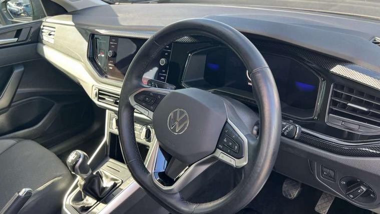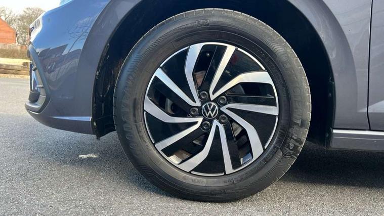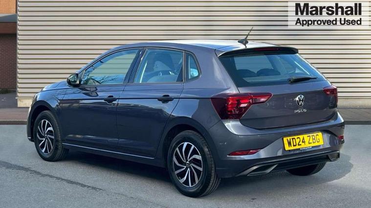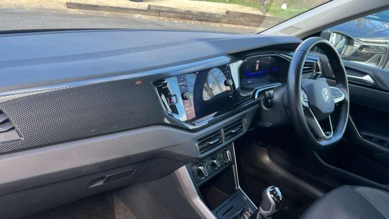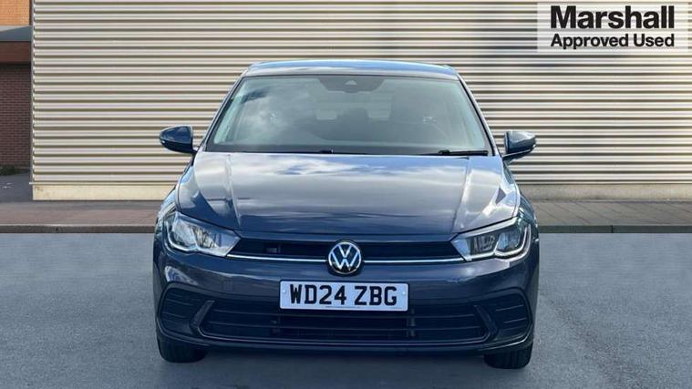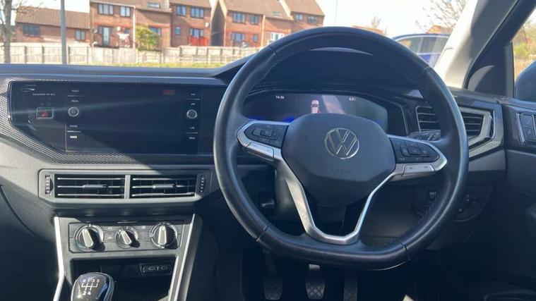 Adaptive cruise control without follow-to-stop and speed limiter, Advanced driver attention and drowsiness monitor, Bluetooth mobile phone interface, Dynamic road sign display, Emergency call service, Power assisted speed sensitive steering, Preparation for navigation system with media and internet package, Preparation for We connect and We connect plus, Speedo and rev counter, electronic odometer, trip, service interval display and exterior temperature gauge, Standard rear axle, Travel Assist - Lane keeping system and traffic jam assist, Travel assist including emergency assist, Trip computer, Warning signal and warning light for front and rear seatbelts not fastened, Washer fluid level indicator, Wireless app connect, Front wheel drive, Rear shock absorpion, Start-stop system with battery regeneration (recuperation - energy recovery during braking), DAB Digital radio, Diversity antenna for FM reception, Front and rear 6 speakers, Automatic dimming interior rear view mirror, Automatic headlight control with LED separate daytime running lights with coming/leaving home function, Body colour bumpers with chrome inserts, Body colour door handles, Body colour door mirrors, Electric front windows, Engine badge deletion, Headlight range adjustment, Heat insulating and laminated safety glass windshield, Heat insulating darkened glass in side and rear windows, Heat insulating glass windscreen, LED Headlights, LED rear combination lamps, Power folding adjustable/heated exterior mirrors and front passenger exterior mirror lowering function, Rain sensor, Rear electric windows, Rear fog light, Rear side wing doors, Rear windscreen washer and wiper with interval delay, Third brake light, 12V power socket in centre console, 2 front and 2 rear reading lights with switch off delay and dimmer, 2 USB-C ports in the front, 2 USB-C charging sockets on the center console in the rear, 3 rear head restraints, 60/40 split folding rear seat and rear seat bench not split, Ceramique roof lining, Chrome plated radiator grille inserts, air vent surrounds and light switch surrounds, Door and side trim panel, Driver and front passenger seat height adjustment, Driver/passenger sunvisors with illuminated vanity mirrors, Front centre armrest, Front seat backrest storage pockets, Front standard seats, Handbrake lever handle in leather, Hartley/Thomas cloth upholstery, Headliner in recycled material, Isofix child seat preparation easy-fit (for two outer rear seats, and front passenger seat) compatible with I-size, Leather trimmed gear knob, Luggage compartment cover, Luggage compartment lighting, Removable luggage compartment floor, Single front passenger seat, Standard climatic zones, Standard pedal cluster, Three spoke leather wrapped multifunction steering wheel, Light and vision pack - Polo, 3 point height adj front seatbelts + pretensioners, 3x3 point rear seatbelts, ABS, Driver and front passenger airbag with front passenger airbag deactivation, Drivers and front passengers safety optimised head restraints, ESC (Electronic stability control) + EDL (Electronic Differntial lock) and ASR (Traction control), Extended and predictive pedestrian/ cyclist protection, Front assist with autonomous emergency braking (for Adaptive Cruise Control ACC up to 130 mph), Front curtain and side airbags with center airbag, Front disc brakes, Hill hold control, Manual child lock in rear doors, Rear drum brakes, Single tone horn, Tyre pressure loss indicator, Alarm with interior protection, Anti-theft alarm system with interior monitoring, backup horn, and towing protection, Anti-theft wheel bolts, Electronic engine immobiliser, Lava stone black gloss/matt decorative inserts in dash and front door panels, Low rolling resistance tyres,