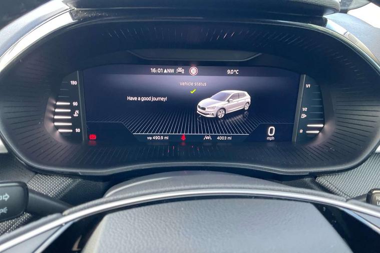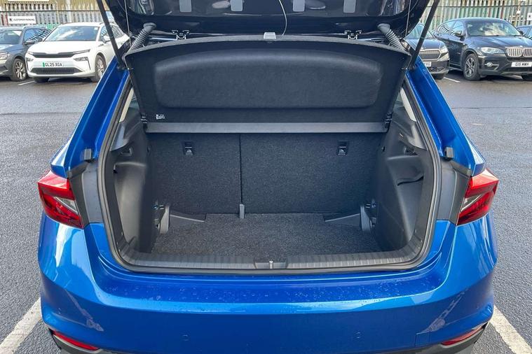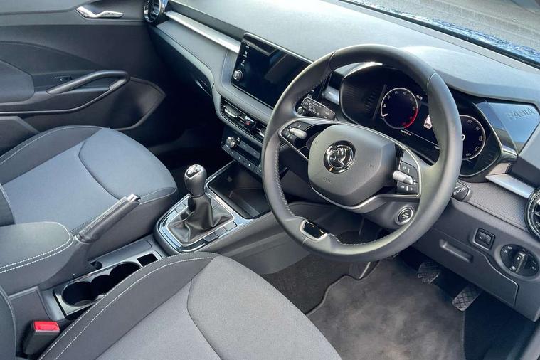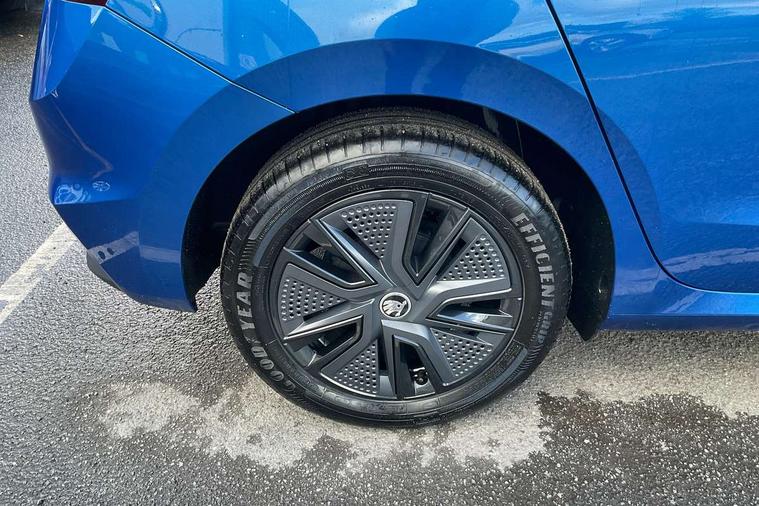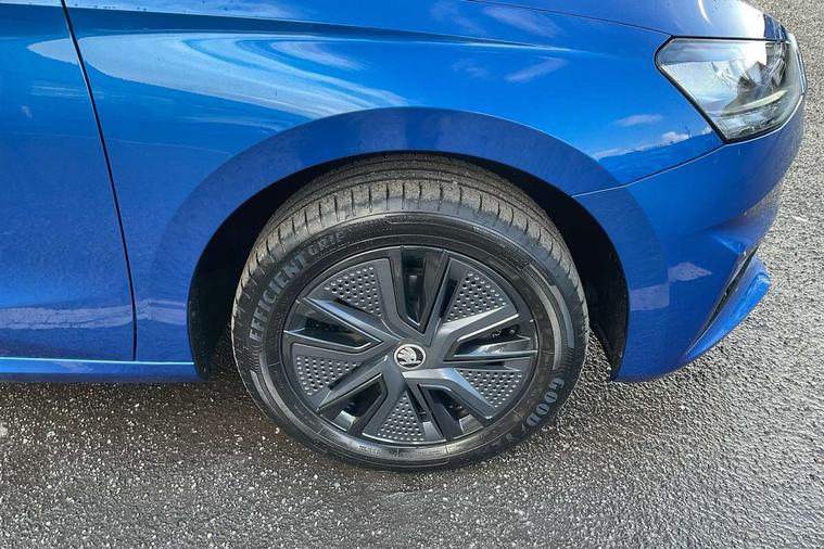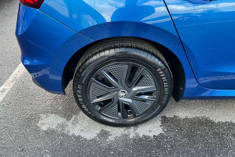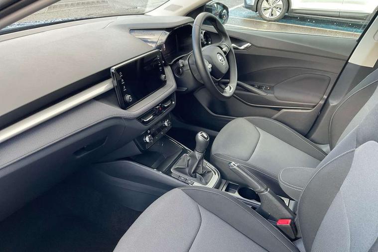 Advanced driver attention and drowsiness monitor, Bluetooth connection, Electromechanical power steering, Exterior temperature gauge, Service interval indicator, Traffic sign recognition, Virtual cockpit with 10.25" colour display, Wireless SmartLink for Apple CarPlay and Android Auto, 6 Speakers (4 in front and 2 in rear), Auxiliary socket for external MP3 player, DAB digital radio reception, Auto dimming rear view mirror, Body coloured bumpers, Door mirror integrated indicators, Front and rear electric windows, Front window wiper intermittent control, Headlight range control - Automatic, Ice scraper in fuel cap, LED 3rd brake light, LED daytime running lights with coming and leaving home feature, LED rear lights, Privacy glass, Rear LED fog light, Rear side wing doors, Rear window wiper with washing nozzles, Roof mounted spoiler, SKODA tailgate lettering in chrome, Unique dark chrome design logo on alloy wheels, 2 reading lights in front and 2 reading lights in rear, 3 rear headrests, Backrest split and folding, Central console with removable cup holder and storage box, Chrome handbrake release button, Dual zone air conditioning with climatronic electronic control, Fabric upholstery, Front centre armrest, Gearshift knob/handle in leather, Grain satin black interior door handles, Hand brake lever handle in leather, Height adjustable front headrests, Height adjustable front seats, Height adjustable steering wheel, ISOFIX and TopTether anchorage points to the outer rear seats, ISOFIX and TopTether on the front passenger seat, Luggage compartment lighting, Manually adjustable lumbar support in front seats, Pollen filter, Rear seat bench unsplit, Single front passenger seat, Skoda lettering on steering wheel, Storm grey headlining, Sun visors with mirror and airbag label on passenger side, Textile floor mats, Ticket holder, Umbrella in drivers door, 3-point height adjustable front seats belts with pretensioner and force limiter, Automatic warning lights in case of crash, Driver and passengers airbag with switch off function, e-Call+, ESC including ABS, MSR, ASR, EDS, HBA and XDS, Front and rear seat belt warning, FRONT ASSIST (AEB City and AEB Inter Urban), Front side airbags, Head airbags, One tone horn, Pedestrian protection, Three rear 3-points safety seat belts with pretensioner and force limiter including stop function for outer rear seat belts, Tyre pressure monitoring system, Anti-theft alarm system including immobiliser, interior monitoring, backup horn, and towing protection, Central locking with radio remote control, interior controls, SAFE function and 2 foldable keys, Black painted air vents, Grain satin black central console cover, Metallic grey upper decorative trim, Satin black door and side trim panel in front, Textile Kota grey lower decorative inserts, Anti-theft wheel bolts protection, Super-low rolling resistance tyres,