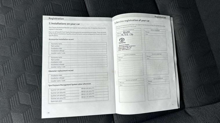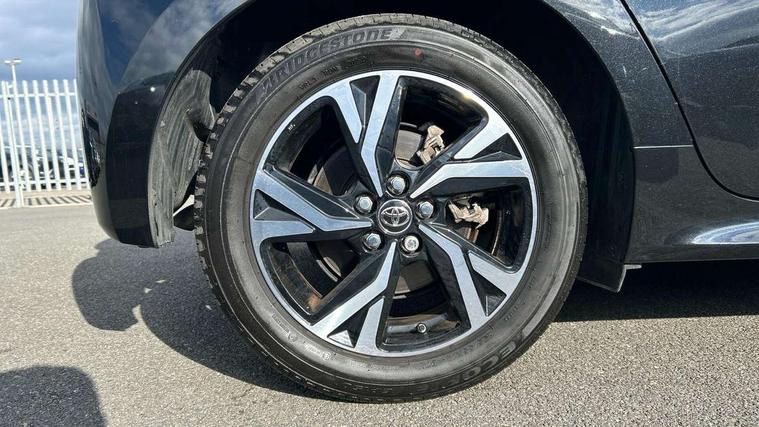 7" Digital Combimeter, Adaptive cruise control, Adjustable speed limit with speed warning, Bluetooth connectivity, Colour binocular inspired displays with digital speedometer, E-call, Electric power steering, Hybrid energy display, Lane trace assist, Multi information display switches on steering wheel, Pre-collision system (PCS), Reversing camera, Smartphone integration with Apple CarPlay and Android auto, Tailgate, Voice recognition, Vehicle Stability Control (VSC), 4 speakers, 9" Multimedia touch display, Toyota Touch 3 system with DAB radio, USB connection, Acoustic windscreen glass, Auto high beam assist, Auto windscreen wipers, Automatic headlights, Body coloured door mirrors, Electric adjustable heated door mirrors, Follow me home headlights, Front auto power windows with anti jam protection, LED daytime running lights, LED front fog lights, LED front light guide, LED Headlights, LED High mounted stop lamp, LED Indicators, LED rear light guide, Manual headlight levelling, Painted chequered front grille, Rain sensor, Rear auto power windows with anti jam protection, Rear privacy glass, Rear roof spoiler, Rear side wing doors, Rear wiper, Shark fin antenna, Turning signal integrated indicators in door mirrors, Variable front intermittent wipers, 3 adjustable rear headrests, 3 seat bench in 2nd row, 3 spoke leather steering wheel, 60/40 split folding rear seat, Active headrests, Adjustable boot height, Auto air conditioning, Coat hooks in rear grab handles, Cup holders (2 front & door), Data Communication Module (DCM) connected services, Fabric upholstery, Front armrest, Glovebox, Grey roof lining, Height adjustable driver's seat, Isofix seat fixing, Leather gearshift, Pollen filter, Shopping bag hooks, Single front passenger seat, Tilt/telescopic steering column, 3 point seatbelts on all rear seats, ABS+EBD+Brake assist, Electronic parking brake, Emergency brake light system (EBS), Front passenger airbag on/off switch, Front seatbelt reminder, Hill start assist control (HAC), Rear child proof door locks, Rear seat belt reminder, Supplemental Restraint System (SRS) 8 airbags: Driver & passenger's airbags, dual side curtain airbags, side impact airbags, front centre airbag, Toyota Safety Sense 3 with over the air updates, Tyre pressure warning system, 2x Master key, Alarm/immobiliser, Remote powered central double locking doors, Soft touch instrument panel, Space saver spare wheel,
