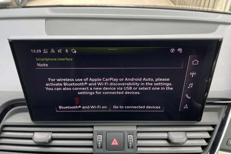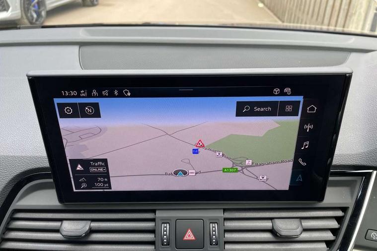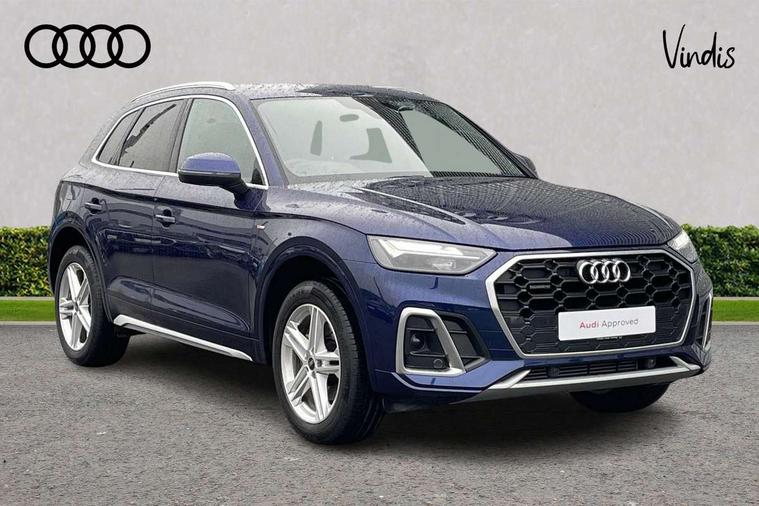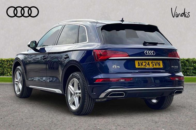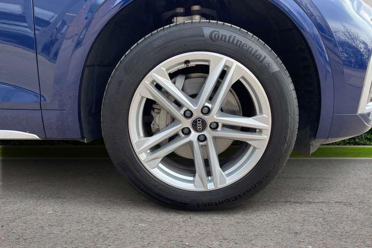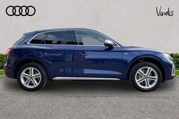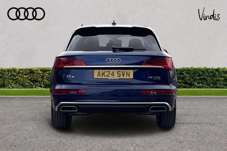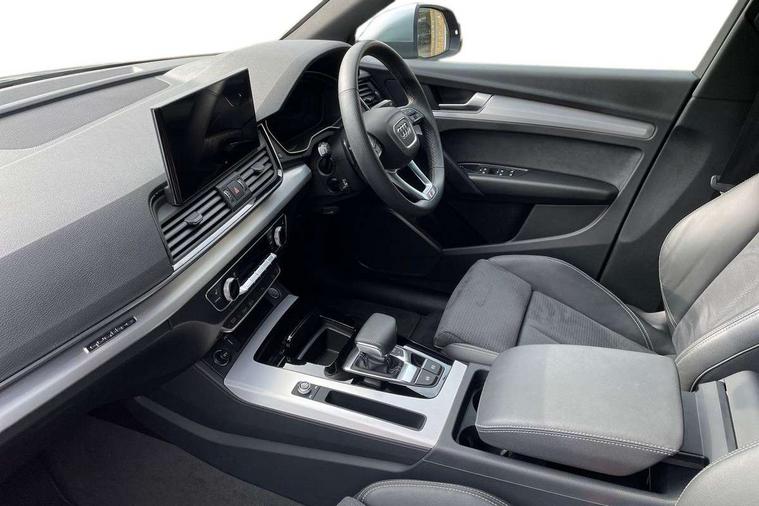 Acoustic front and rear parking sensor, Audi connect safety and service (e-call), Audi drive select, Audi virtual cockpit plus with 12.3" screen and three different layout designs, Audi wireless smartphone interface, Automatic start-stop system with coasting functionality and efficiency programme, Bluetooth interface, Camera based traffic sign recognition, Electro - mechanical power assisted steering, Lane departure warning, MMI navigation plus with 10.1" touch screen, Power tailgate, Reversing camera, Service interval indicator, Voice control system with Audi hotword activation "Hey Audi", Quattro on demand, S line sports suspension, 8 loudspeakers, DAB Digital radio, Acoustic windscreen, Aluminium roof rails, Auto dimming door mirrors, Auto dimming frameless rear view mirror, Automatic headlight adjustment, Automatic headlights and windscreen wipers, Body colour bumpers, Body colour door mirrors, Body colour rear diffuser with matt aluminium silver surrounds, Body colour underbody protection, Chrome plated exhaust trims, Daytime running lights, Door sills in Selenite silver, Electric adjustable/heated/folding door mirrors, Front air inlet surrounds in aluminium, Front and rear electric windows, Front radiator grille in honeycomb design, LED 3rd brake light, LED headlights and LED tail lights, Loading edge protection in stainless steel, Lower bumpers painted in contrast Manhattan grey, Rear chrome trim strip below lights, Rear privacy glass and rear side windows, Rear side wing doors, Rear wiper, Roof bars, S Line badges on the front wing panels, S Line front and rear bumpers, S Line rear spoiler, S Line side skirts, 2 x USB charging port with aux input socket, 3 rear headrests, 3 spoke leather multifunction steering wheel with S badging perforated leather grips, Black cloth headlining, Comfort front centre armrest, Contrast stitching on seats, steering wheel and gear lever gaiter, Deluxe 3 zone electronic climate control, Front head restraints, Front sport seats with S embossed logo, Front/rear floor mats, Gear lever in black leather, Heated front seats, Height/reach adjustable steering column, Illuminated door sill trims with S logo, Luggage compartment cover, Manual seat adjustment with 4-way electric lumbar support, Single front passenger seat, Stainless steel pedals, Sunvisors with vanity mirrors, Top surface of the rear centre armrest in artificial leather, High gloss pack - Q5, LED interior light pack - Q5, 3 point seatbelts on all seats, 6 airbags - Driver, front passenger, curtain and side airbags, Attention and drowsiness assist, Electrically operated child locks on rear doors, Electromechanical parking brake, Electronic stabilisation control including ABS, ASR and EDL, First aid kit with warning triangle and vests, Front passenger airbag deactivation, Hill descent control, Hill hold assist, ISOFIX child seat mounting for front passenger seat and ISOFIX child seat mounting with Top Tether for outer rear seats, Multi collision brake assist, Pop-up bonnet for pedestrian protection, Pre sense city, Seatbelt monitoring, Tyre pressure warning, Anti theft alarm, Anti-theft wheel bolts, Remote central locking, Remote control key with SAFELOCK and keyless go, Air vents inserts and centre console in gloss black, Matt brushed aluminium inlays, Tool kit, Tyre repair kit,
