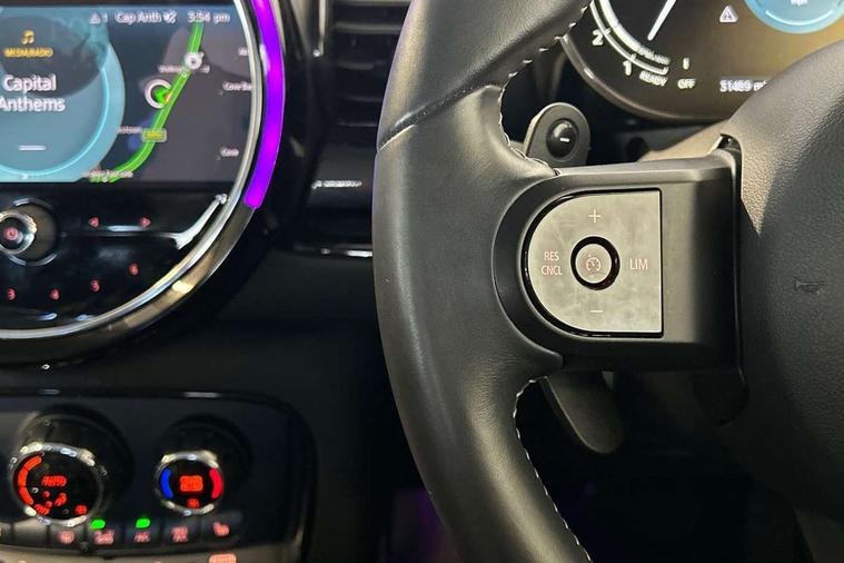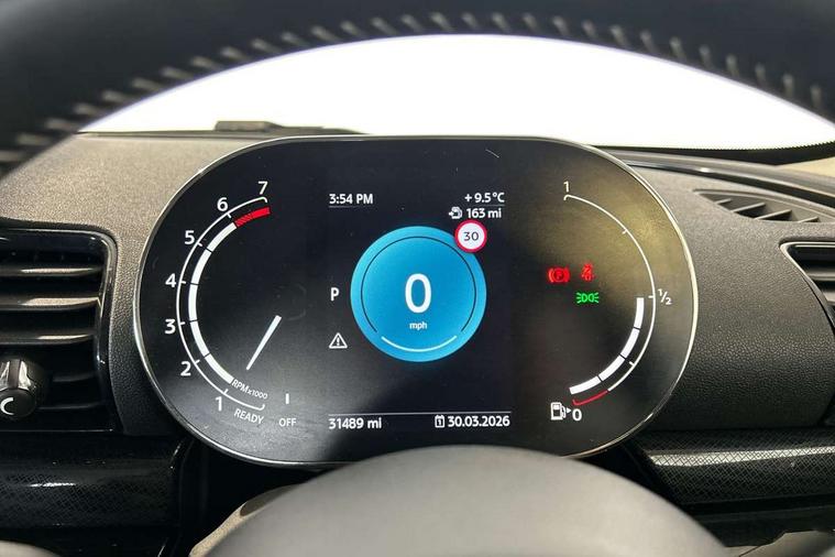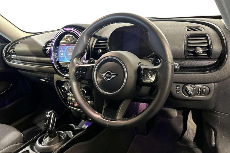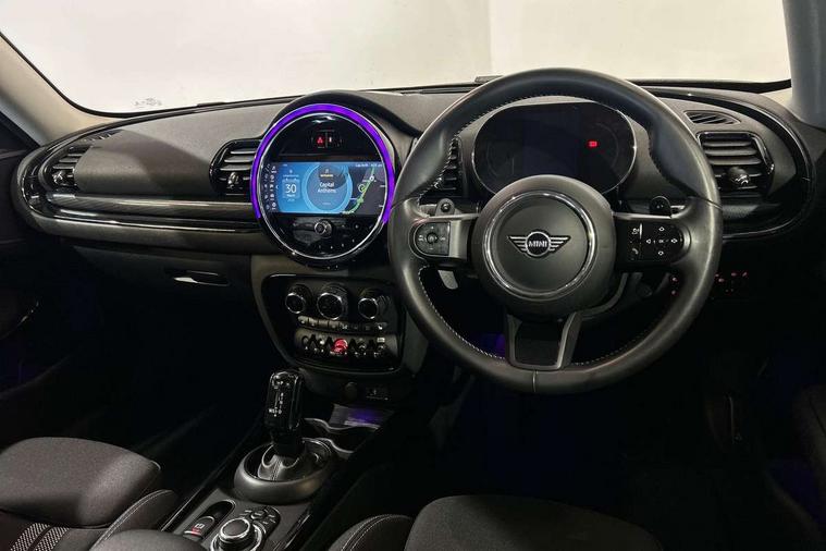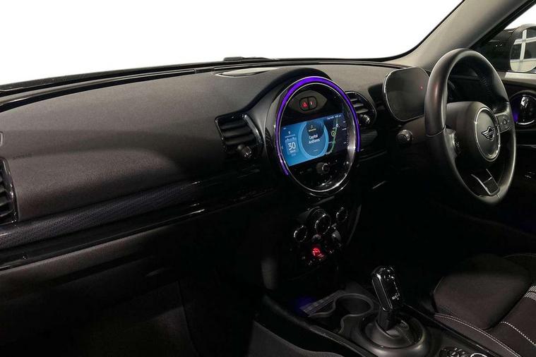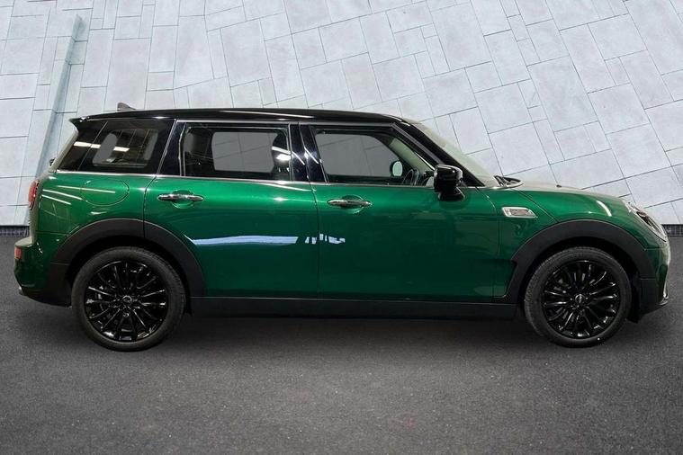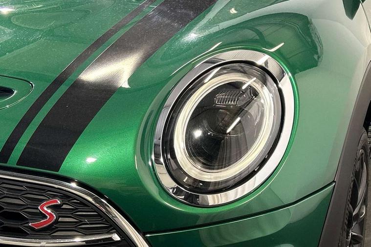 Active Guard incl speed limiting and lane departure functions with auto steering, and front collision warning with brake intervention, Automatic start/stop function with brake energy recuperation, Compatible mobile phone bluetooth with audio streaming, Digital cockpit, Electro-mechanical speed dependant steering assistance, Instrument cluster, Mini E-call, MINI TeleServices, On board computer, Double Vanos system, Fully variable valve control, High precision injection, Performance Control, Steptronic transmission with double clutch, FM tuner and DAB digital radio, Bonnet scoop, Chrome border honeycomb structure radiator grille with S badge, Chrome fuel filler cap, Dynamic brake lights, Electric windows, Heated rear window, Heated windscreen washer jets, LED headlights with closed ring as daytime driving lights, LED rear light with union jack design, Metal door sill strips with Cooper S imprint, Model logo, Model logo on rear doors, Rain sensor with auto headlights, Rear fog lights, Rear window wiper, Side scuttle panel with integrated indicator, Split rear doors, Sun/heat protection glass, Twin exhaust tailpipe, White indicator lenses, 12V Accessory socket in centre console, 3 spoke sport leather steering wheel + limiter function and audio controls, 360L luggage compartment capacity, 4 lashing eyes in luggage compartment, 60/40 split folding rear seat, Chrome interior highlights, Cupholders, English handbook, Front and rear head restraints, Glove compartment, Headliner with grab handles and clothes hooks, Height and length steering column adjustment, Interior lighting with 12 basic colours selectable via toggle switch in roof, Isofix rear child seat preparation, Leather gearshift lever and handbrake gaiters, LED reading lights, vanity mirror lights, front foot well light and spotlight on front seats, Manual air conditioning, Mechanical seat adjustment, driver seat height adjust, forward/back and front seats backrest, Multifunction steering wheel, Storage compartments in doors, Sunvisors with vanity mirrors, Toolkit, Excitement pack - Clubman, Navigation pack - Clubman, 2 tone horn, 3 point seatbelts on all seats, 6 Airbags - front, side, head and seat belt tensioners, Anti-lock braking system (ABS), DSC - Dynamic Stability Control, Electronic handbrake, Front and rear disc brakes, Tyre pressure monitoring system, Alarm system with tilt sensor, monitoring doors, bonnet interior and tailgate, Auto drive away locking, Deadlocking function, Electronic vehicle immobiliser, Locking wheel bolts, Start/stop toggle with keyless go, Tyre repair kit,