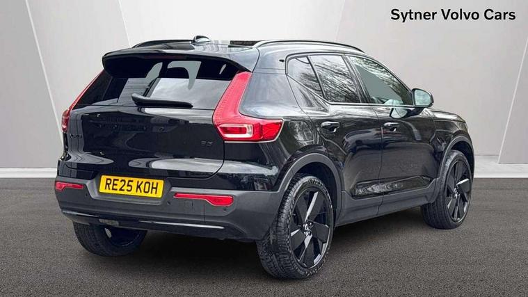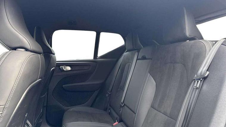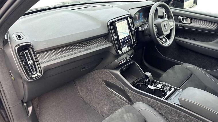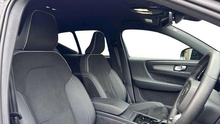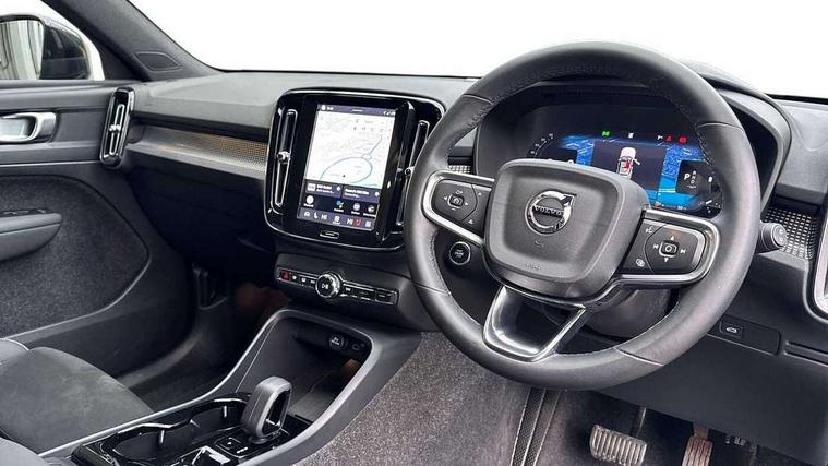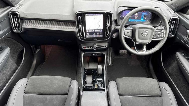 12.3" Progressive Driver Display, 9" centre console portrait touch screen, Adjustable steering wheel force, Android auto (Wired), Apple carplay (wired), Bluetooth handsfree system, Driver alert control, Driver assistance (pilot assist and adaptive cruise control), Driver awareness - Blind spot information system with steer assist, cross traffic alert with autobrake and rear collision warning and mitigation, E-call, Front park assist, Google automotive services - Enabled entertainment apps, navigation with google maps, voice recognition with google assistant, Hands free power tailgate, Intelligent speed assistance, Lane keeping aid, Oncoming Lane Mitigation, Rear park assist, Speed sensitive steering, Volvo cars services with app - Driving journal, emergency and breakdown call, engine remote start, remote door locking/unlocking and vehicle dashboard, Wireless/Inductive Mobile Phone Charging, Automatic transmission with start/stop and manual change functions, Dynamic chassis, DAB Digital radio, Steering wheel mounted remote controls, Adaptive brake lights with high level LED brake lights, Auto dimming feature for exterior door mirrors, Auto dimming interior mirror, Automatic headlamp levelling, Automatic LED Headlights + Active high beam incorporating daytime running lights, Colour coordinated auto folding and heated power door mirrors, Dark tinted windows - rear side windows and rear screen, Front aluminium tread plates, Front and rear electric windows, High gloss black front and rear skid plate, High gloss black front bumper deco, High gloss black front grille strikethrough and ironmark, High gloss black rear model, engine and volvo logo badges, High gloss black window trim, Home safe and approach lighting, Integrated roof rails in high gloss black, LED front fog lights, Puddle lights, Rain sensor with automatic windscreen wiper activation, Rear side wing doors, Rear wiper, Roof antenna, Roof spoiler, Visible VIN plate, 12V socket in front tunnel console and luggage compartment, 2-Zone electronic climate control with CleanZone air quality system and pollen filter, 3 seat bench in 2nd row, 3 Spoke tailored steering wheel with chrome trim, 60/40 versatile split folding rear seat, Centre console cupholders and storage, Charcoal headlining, Connect textile/microtech upholstery, Flexible load floor and grocery bag holder, Floor mats, Front cabin courtesy lights, Front door pocket, front cupholder, ambient front door, rear reading, rear courtesy, instrument panel and tailgate lighting, Front footwell illumination, Front headrests, Front reading lights, Front seat cushion extensions, Front side step illumination (under door), Glovebox bag hook, Heated front seats, Height adjustable passenger seat, Height/reach adjustable steering column, High gloss centre tunnel deco, Illuminated glovebox, Illuminated luggage compartment, Illuminated vanity mirrors + ticket holder, Integrated waste bin, Isofix attachments on outer rear seats, Load cover, Load protection net, Multi directional lumbar support for driver and passenger seat, Power driver seat with memory + exterior mirrors memory, Rear armrest with cupholders, Rear headrests, Single front passenger seat, Underfloor cargo storage, Climate pack without heated front seats - XC40, 3x3 point rear seatbelts, City safety with steering support with Pedestrian + cyclist + front collision warning with full auto brake and rear auto brake, Driver and passenger airbags, Drivers knee airbag, Electronic parking brake with auto hold, First aid kit, Front and outer rear seatbelt reminder and pretensioners, Front seats SIPS airbags, Hill descent control, Hill start assist, Inflatable curtain, Passenger airbag cut-off device, Power child locks on rear doors, Road sign information display, Run off Road Protection, SIPS (Side Impact Protection System), Slippery road and hazard light alert, Stability and Traction Control with Spin control, Engine Drag Control and Corner Traction Control, Tyre pressure monitoring system, Vehicle deceleration control with Anti-lock Brake System, Electronic Brake Distribution and Emergency Brake Assist, Warning triangle, WHIPS whiplash protection system - front, 2 x Key integrated remote control central locking including with deadlocking system and auto open/close windows, Anti-theft alarm including immobiliser/volume sensor + level sensor, Keyless drive includes keyless entry and keyless start, Locking wheel nuts, 20" 5 spoke high gloss black alloy wheels,
