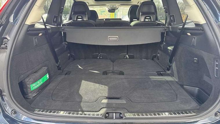 11.2" centre console touch screen, 12.3" Progressive Driver Display, 360 degree surround view parking camera with side proximity sensors, Adjustable steering wheel force, Apple carplay (wired), Bluetooth handsfree system, Driver alert control with lane keeping aid, Driver assistance (pilot assist and adaptive cruise control), Driver awareness - Blind spot information system with steer assist, cross traffic alert with autobrake and rear collision warning and mitigation, Driver monitoring system, Emergency call service, Front and rear park assist, Google Automotive Services - Navigation with Voice recoginition and google assistant, Handsfree power tailgate opening and closing, Intelligent speed assistance, Oncoming Lane Mitigation, PAS, Power operated tailgate, Service interval indicator, Speed sensitive steering, Trip computer, Volvo on call, Wireless/Inductive Mobile Phone Charging, 8 speed automatic transmission with start/stop + manual change functions, Active four C chassis - four corner adaptive dampers with electronic air suspension, DAB Radio (Digital Audio Broadcasting), Premium Sound by Harman Kardon, dirac unison, dolby pro logic II surround sound, 13 speakers/600W output and fresh air subwoofer, Steering wheel remote infotainment controls, Adaptive brake lights with high level LED brake lights, Auto dimming interior + exterior mirrors, Auto folding and heated power door mirrors, Automatic headlight levelling system, Automatic matrix LED headlights with Adaptive shadow technology and Active high beam, incorporating Day running lights, Body colour bumpers, Front and rear power windows, Headlight cleaning system, Heated front windscreen, High gloss black door mirrors and window surround, High gloss black front and rear bumper deco, High gloss black front grille and deco, Home safe and approach lighting, Integrated roof rails in high gloss black, Power glass tilt and slide panoramic sunroof with sun curtain, Puddle lights, Rain sensor with automatic windscreen wiper activation, Rear side wing doors, Rear wash/wipe with intermittent wipe setting, Roof antenna, Roof spoiler, Visible VIN plate, 12V socket in luggage compartment, 2nd Row centre armrest with and cupholders, 3 Spoke tailored sport steering wheel with chrome trim, 4 zone electronic climate control with Clean zone air quality system + pollen filter, A-pillar parking ticket holder, Air conditioning for 3rd row of seats, Air purifier PM2.5, Ambient door and instrument panel lighting, B Pillar ventilation, Bright metal luggage scuff plate, Centre console cupholders and storage, Floor mats, Front and rear courtesy lights, Front and rear door pocket illumination, Front footwell and side step illumination, Front headrests, Front reading lights, Front seat cushion extensions, Front tunnel storage illumination, Glovebox compartment light, Heated front seats, Heated rear seats, Heated steering wheel, Height/reach adjustable steering column, Illuminated front and rear aluminium tread plates, Illuminated luggage compartment, Illuminated tailgate, Illuminated vanity mirrors + ticket holder, Inner door release handle illumination, Isofix outer rear child seat preparation in 2nd row, Load cover, Load protection net, Lockable glovebox compartment, Luggage compartment divider with grocery bag holder, Outboard armrest with cupholder and storage for third row passengers, Power driver seat with multi directional lumbar support and memory for seat and exterior mirrors, Power folding 2nd row headrests, Power passenger seat with multi directional lumbar support and memory, Rear footwell and side step illumination, Rear headrests, Rear reading lights, Second row integrated child seat for centre seat, Single front passenger seat, Textile headlining, Three 2nd row individual folding passenger seats with fore/aft adjustment, Two 3rd row individual folding passenger seats, Underfloor luggage compartment storage, 7 three point seatbelts, City safety with steering support includes pedestrian, cyclist detection, front collision warning with full auto brake and rear auto brake, Driver and passenger airbags, Drivers knee airbag, First aid kit, Front seats SIPS airbags, Hill descent control - off drive mode, Hill start assist, IC (Inflatable Curtains) - Full Length, Passenger airbag cut-off switch, Power child locks on rear doors, Power parking brake with auto hold function, Road sign information display, Run off Road Protection, Seatbelt reminder and pretensioners for all seats, SIPS (Side Impact Protection System), Slippery road and hazard light alert, Stability and Traction Control with Spin control, Engine Drag Control and Corner Traction Control, Tyre pressure monitoring system, Vehicle deceleration control with Anti-lock Brake System, Electronic Brake Distribution and Emergency Brake Assist, Warning triangle, WHIPS whiplash protection system - front, 2x Key integrated remote control central locking + deadlocking system and auto open/close windows, Anti-theft alarm including immobiliser/volume sensor + level sensor, Keyless drive includes keyless entry and keyless start, Locking wheel nuts, Tailored instrument panel and door tops, Tempa spare wheel and jack,
