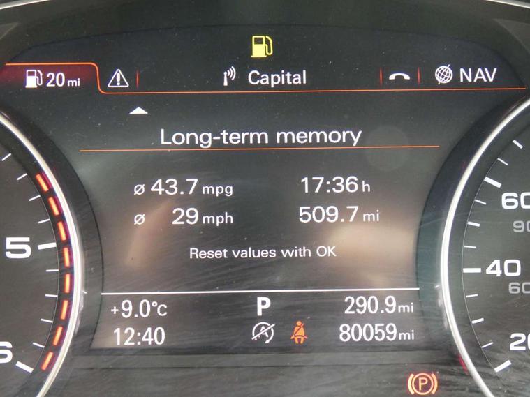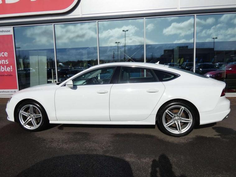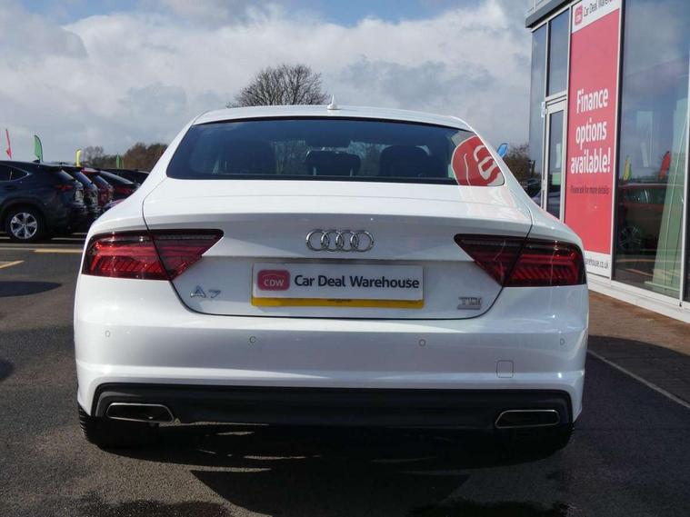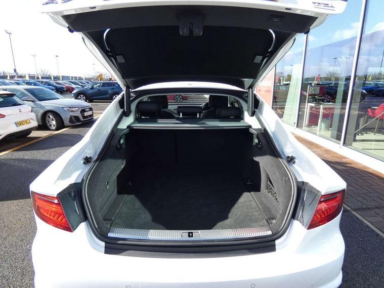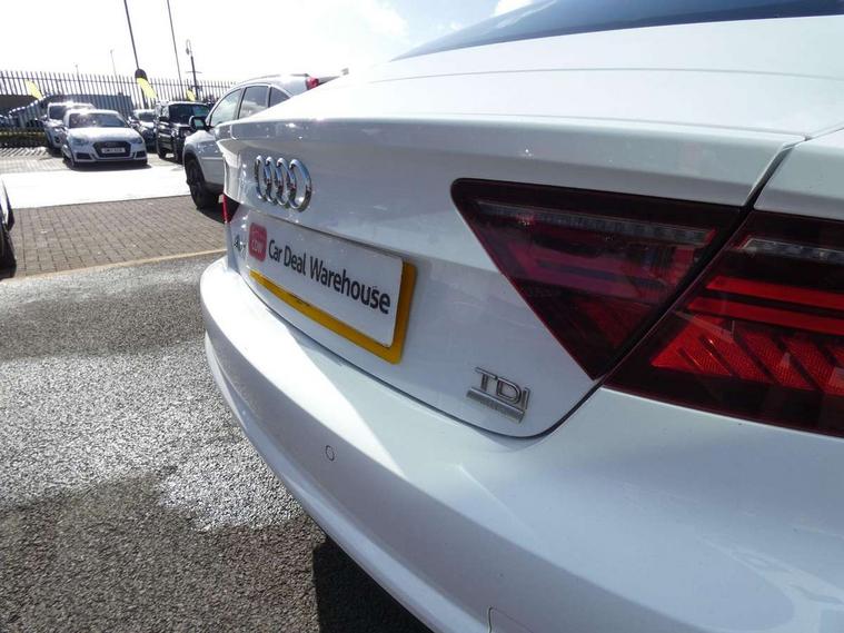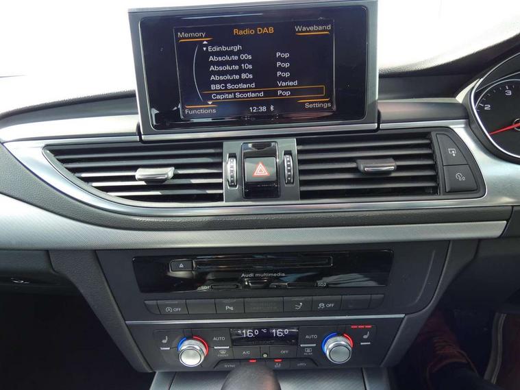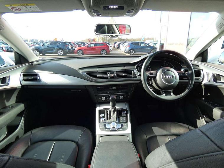 Audi drive select, Audi parking system plus with front and rear sensors, Colour driver's information system display, PAS, Power boot opening and closing, Service indicator, Diesel particulate filter, Audi music interface, Auxiliary input socket, DAB digital radio module, MMI radio plus with CD player, USB/iPod connection, Acoustic glass, Auto dimming rear view mirror, Body coloured bumpers, Body coloured door mirrors, Front and rear electric windows, Headlight washers, LED daytime running lights, LED tail lights, Rain and light sensors, Retractable rear boot spoiler, 12V power points in front + rear centre consoles, 4 zone control automatic air conditioning, 4-way electric lumbar support, Door sills trims with aluminium inlays, Electrically adjustable front seats - driver seat with memory, Front and rear headrests, Front centre armrest, Front/rear floor mats, Isofix front passenger and rear seat preparation, Jack and tool kit, Rear centre armrest, Split folding rear seat, High gloss pack - A7, 3x3 point rear seatbelts, ABS, ASR traction control, Curtain airbags, Driver and passenger airbags, Driver/front passenger side airbags, EDL, Electromechanical parking brake, Electronic stability control, ESP, Front passenger airbag deactivation, Front seat belts warning, Hill hold assist, Tyre pressure warning, Warning triangle, Anti theft alarm, Anti-theft wheel bolts, Immobiliser, Keyless start, Preparation for tracking system, Remote central locking, Space saver spare wheel,