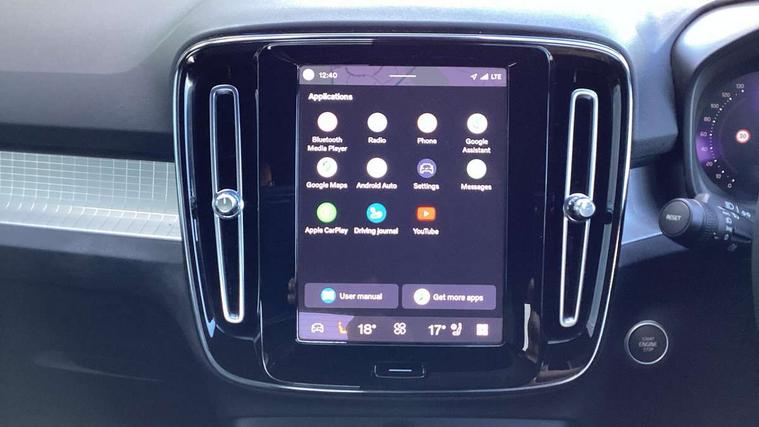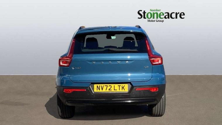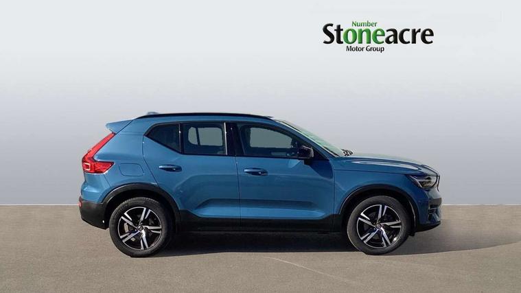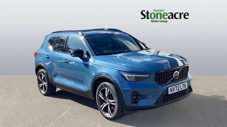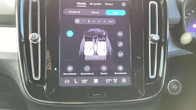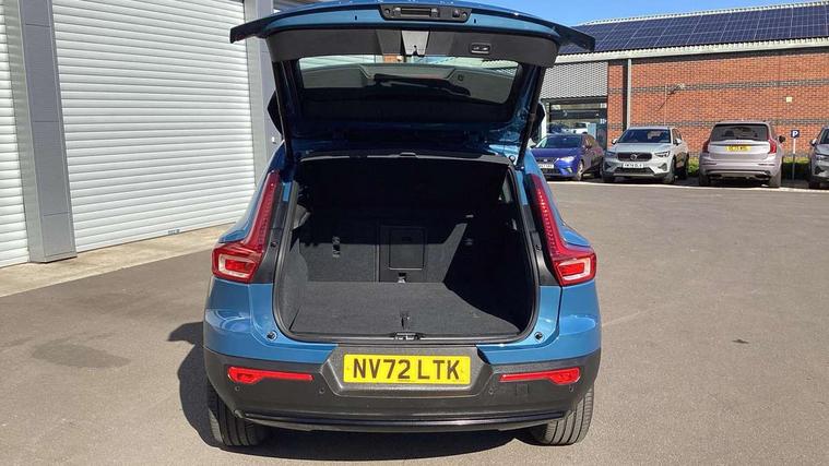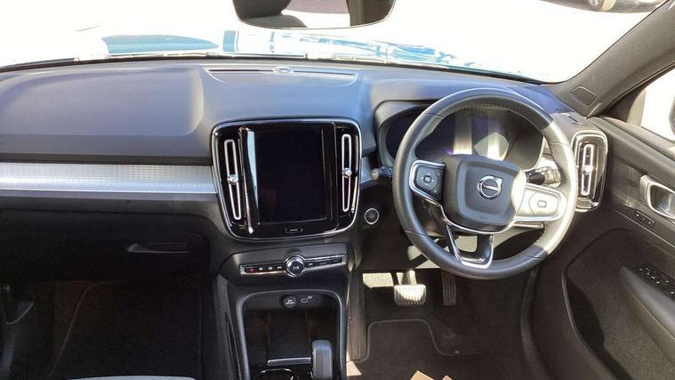 12.3" Progressive Driver Display, 9" centre console portrait touch screen, Adjustable steering wheel force, Bluetooth hands free telephone kit, Cruise control, Driver awareness - blind spot information system with steer assist, cross traffic alert with autobrake, rear collision warning and migitation, E-call, Front park assist, Google automatic services - Nav with google maps, apple carplay/android auto, voice recognition with google assistant, Hands free power tailgate, Lane keep assist with driver alert control, Oncoming Lane Mitigation, Rear park assist, Rear park assist camera, Speed limiter, Speed sensitive steering, Wireless/Inductive Mobile Phone Charging, Dynamic chassis, DAB Digital radio, High performance sound, 8 speakers/250W, front USB and 2 rear type C USB, Steering wheel mounted remote controls, Adaptive brake lights with high level LED brake lights, Auto dimming feature for exterior door mirrors, Auto dimming interior mirror, Automatic headlamp levelling, Automatic LED Headlights + Active high beam incorporating daytime running lights, Front aluminium tread plates, Front and rear electric windows, High gloss black front and rear skid plate, High gloss black mesh front grille with high gloss black surround, High gloss black window trim, Home safe and approach lighting, Integrated roof rails in high gloss black, LED front fog lights, Puddle lights, Rain sensor with automatic windscreen wiper activation, Rear side wing doors, Rear wiper, Roof antenna, Roof spoiler, Visible VIN plate, 12V socket in front tunnel console and luggage compartment, 2-Zone electronic climate control with CleanZone air quality system and pollen filter, 3 seat bench in 2nd row, 3 Spoke tailored steering wheel with chrome trim, 60/40 versatile split folding rear seat, A-pillar parking ticket holder, Ambient front door and instrumental panel lighting, Centre console cupholders and storage, Flexible load floor and grocery bag holder, Floor mats, Front door pocket and front cupholder illumination, Front footwell illumination, Front headrests, Front reading light and theatre lighting, Front seat cushion extensions, Front tunnel pocket, Glovebox bag hook, Heated front seats, Height adjustable passenger seat, Height/reach adjustable steering column, High gloss centre tunnel deco, Illuminated glovebox, Illuminated luggage compartment, Illuminated tailgate, Illuminated vanity mirrors, Integrated waste bin, Isofix attachments on outer rear seats, Load protection net, Multi directional lumbar support, Power driver seat with memory + exterior mirrors memory, Rear armrest / integral cup holders / storage tray, Rear headrests, Rear reading and courtesy lights, Single front passenger seat, Underfloor cargo storage, Climate pack without heated front seats - XC40, 3x3 point rear seatbelts, City safety with steering support with Pedestrian + cyclist + front collision warning with full auto brake and rear auto brake, Drivers knee airbag, Dual stage driver/passenger airbags, Electronic parking brake with auto hold, First aid kit, Front and outer rear seatbelt reminder and pretensioners, Front seats SIPS airbags, Hill descent control, Hill start assist, Inflatable curtain, Passenger airbag cut-off device, Power child locks on rear doors, Road sign information display, Run off Road Mitigation, Run off Road Protection, SIPS (Side Impact Protection System), Slippery road and hazard light alert, Stability and Traction Control with Spin control, Engine Drag Control and Corner Traction Control, Tyre pressure monitoring system, Vehicle deceleration control with Anti-lock Brake System, Electronic Brake Distribution and Emergency Brake Assist, Warning triangle, WHIPS whiplash protection system - front, Anti-theft alarm including immobiliser/volume sensor + level sensor, Key integrated remote control central locking + fuel flap with deadlocking system and auto open/close power windows, Keyless drive includes keyless entry and keyless start, Locking wheel nuts,