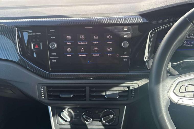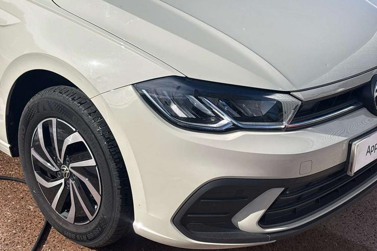 Bluetooth mobile phone interface, Cruise control + speed limiter, Driver alert system, Emergency call service, Lane keeping system Lane Assist, Power assisted speed sensitive steering, Preparation for We connect and We connect plus, Speedo and rev counter, electronic odometer, trip, service interval display and fuel gauge, Standard rear axle, Trip computer, Warning signal and warning light for front and rear seatbelts not fastened, Washer fluid level indicator, Wireless app connect, Front wheel drive, Rear shock absorpion, Start-stop system with battery regeneration (recuperation - energy recovery during braking), DAB Digital radio, Diversity antenna for FM reception, Front and rear 6 speakers, Automatic dimming interior rear view mirror, Body colour bumpers, Body colour door handles, Body colour door mirrors, Electric front windows, Heat insulating darkened glass in side and rear windows, Heat insulating glass windscreen, Power folding adjustable/heated exterior mirrors and front passenger exterior mirror lowering function, Rain sensor, Rear electric windows, Rear fog light, Rear side wing doors, Rear windscreen washer and wiper with interval delay, Third brake light, 12V power socket in centre console, 2 front and 2 rear reading lights, 2 USB-C ports in the front, 2 USB-C charging sockets on the center console in the rear, 3 rear head restraints, 60/40 split folding rear seat and rear seat bench not split, Chrome plated radiator grille inserts, air vent surrounds and light switch surrounds, Door and side trim panel, Driver and front passenger seat height adjustment, Driver/passenger sunvisors with illuminated vanity mirrors, Front centre armrest, Front seat backrest storage pockets, Front standard seats, Handbrake lever handle in leather, Hartley/Thomas cloth upholstery, Headliner in recycled material, Isofix child seat preparation easy-fit (for two outer rear seats, and front passenger seat) compatible with I-size, Leather trimmed gear knob, Luggage compartment cover, Luggage compartment floor, Luggage compartment lighting, Multifunction steering wheel, Single front passenger seat, Standard pedal cluster, Light and vision pack - Polo, 3 point height adj front seatbelts + pretensioners, 3x3 point rear seatbelts, ABS, Driver and front passenger airbag with front passenger airbag deactivation, Drivers and front passengers safety optimised head restraints, ESC (Electronic stability control) + EDL (Electronic Differntial lock) and ASR (Traction control), Extended and predictive pedestrian/ cyclist protection, Front assist including city emergency braking, Front curtain and side airbags with center airbag, Front disc brakes, Hill hold control, Manual child lock in rear doors, Rear drum brakes, Single tone horn, Tyre pressure loss indicator, Alarm with interior protection, Anti-theft alarm system with interior monitoring, backup horn, and towing protection, Anti-theft wheel bolts, Electronic engine immobiliser, Lava stone black gloss/matt decorative inserts in dash and front door panels, Low rolling resistance tyres,
